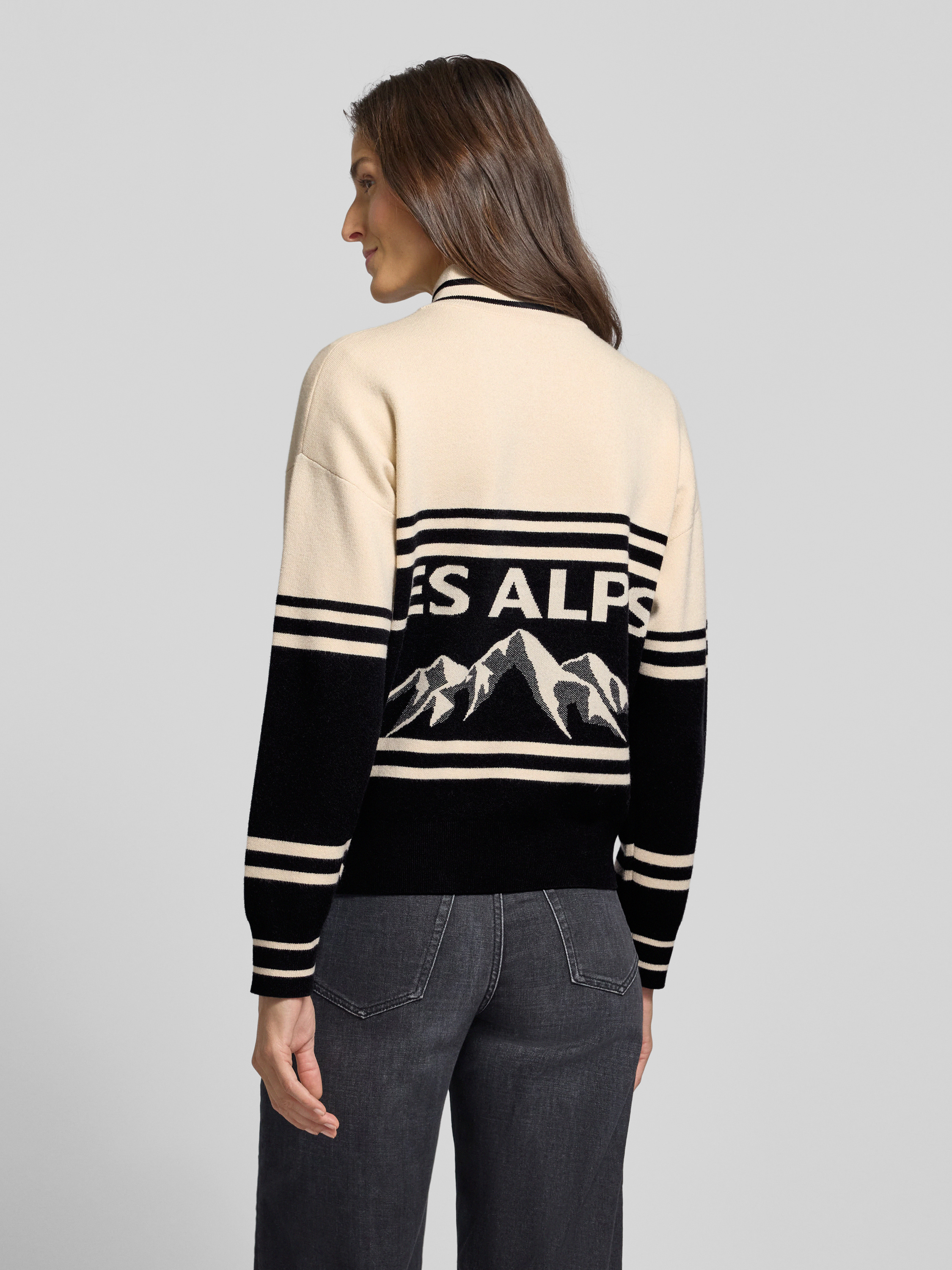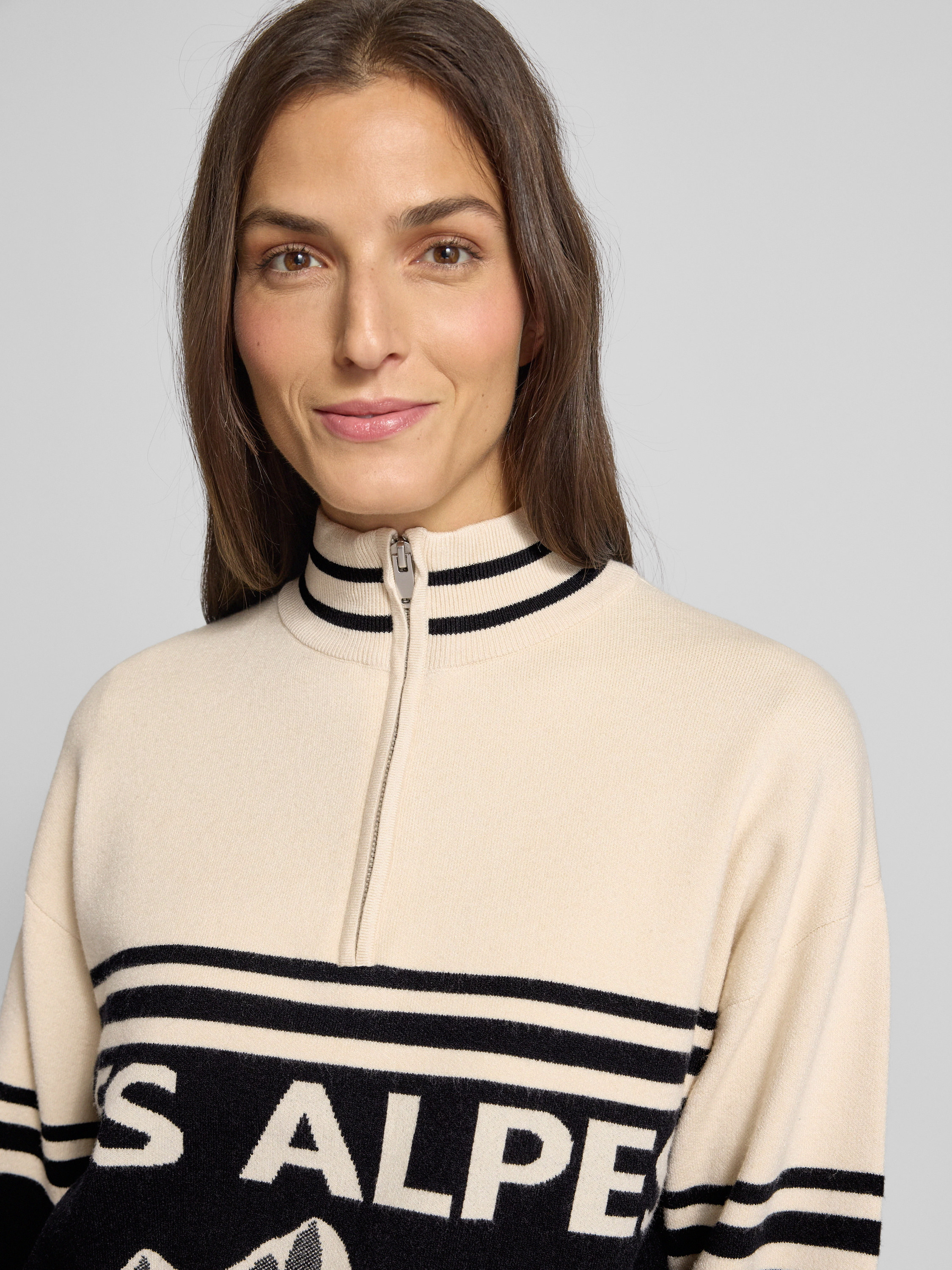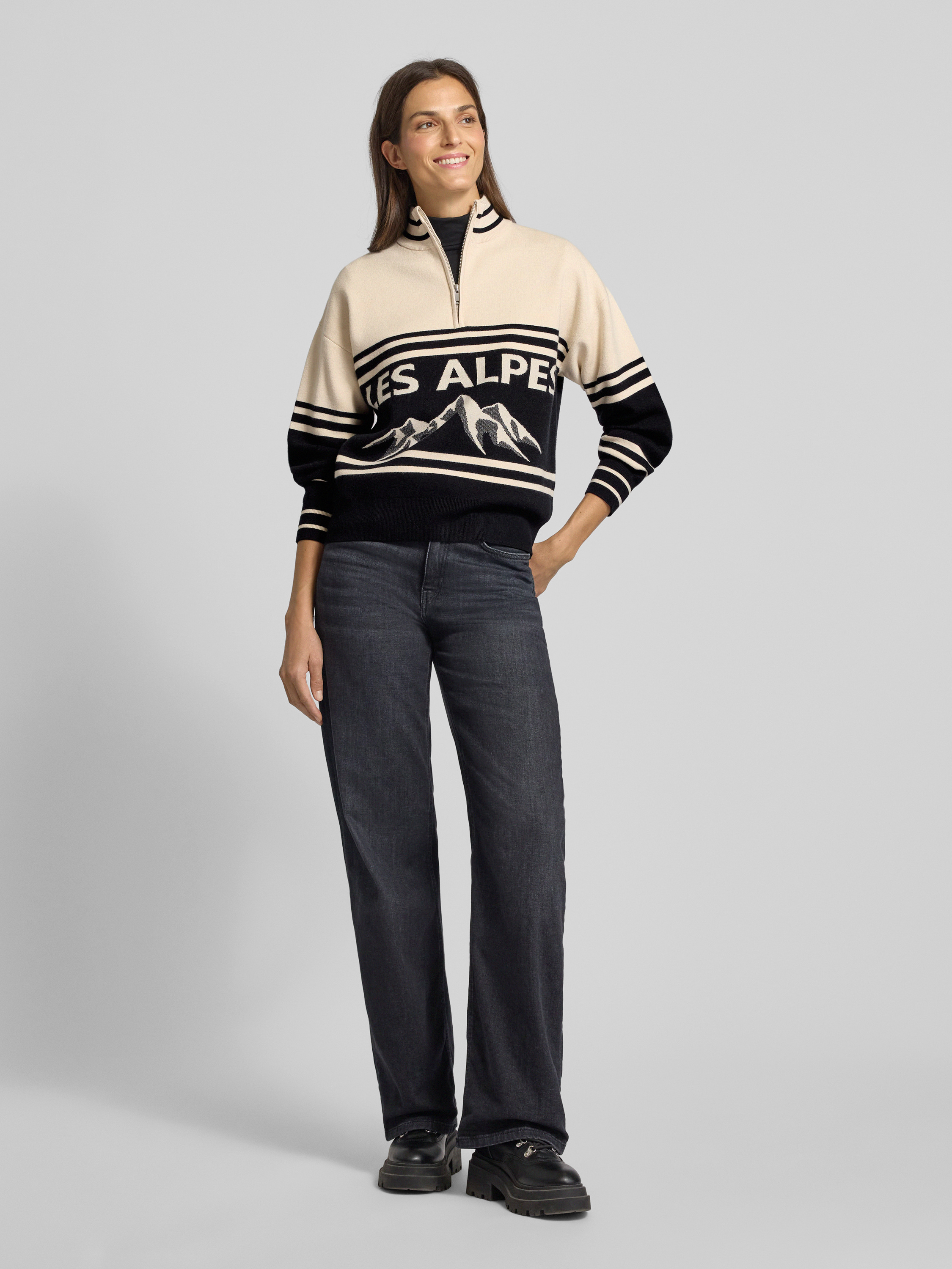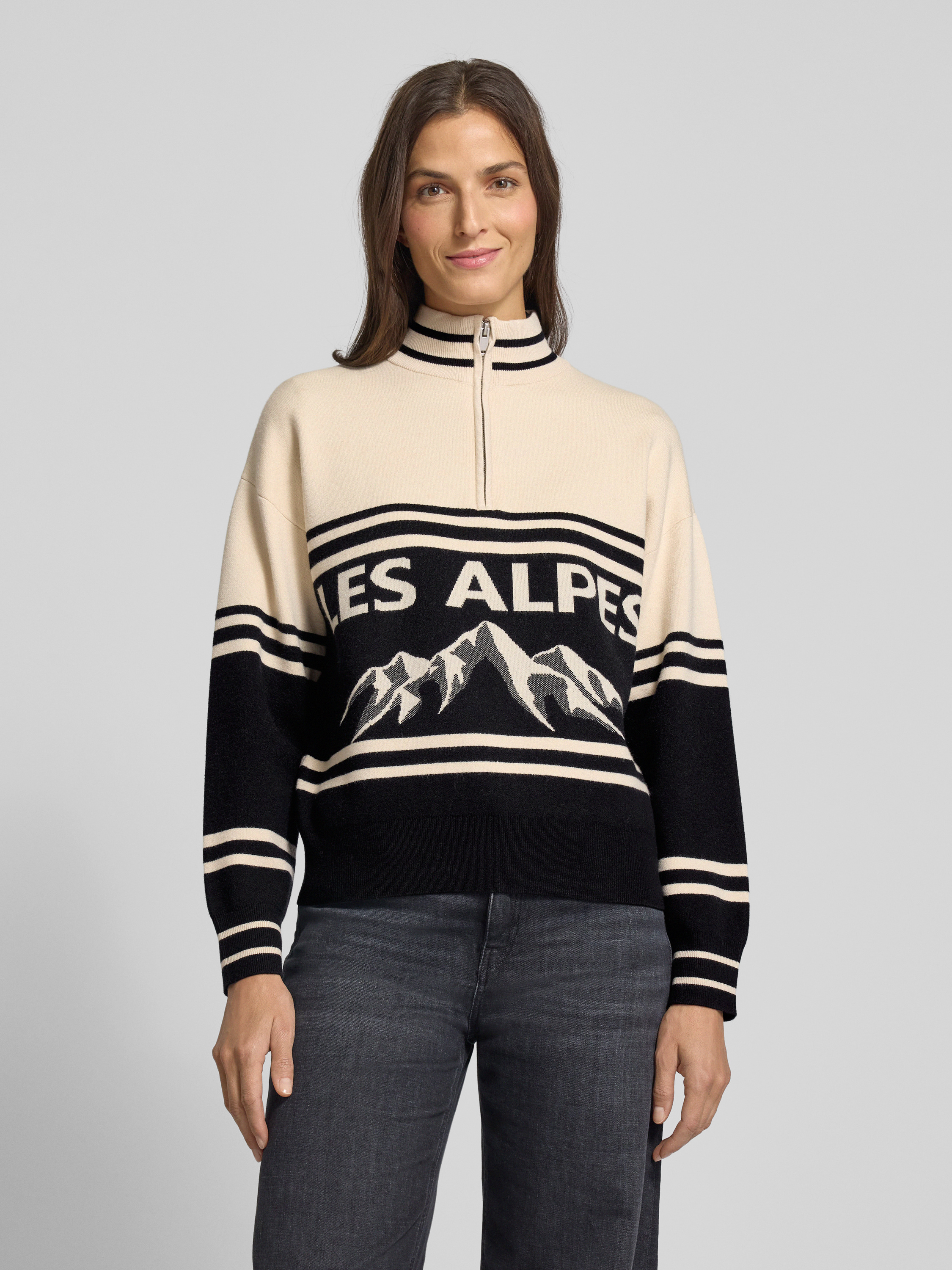 Jake*s CasualStrickpullover aus Viskose-Mix mit Stehkragen und Reißverschluss in ecru