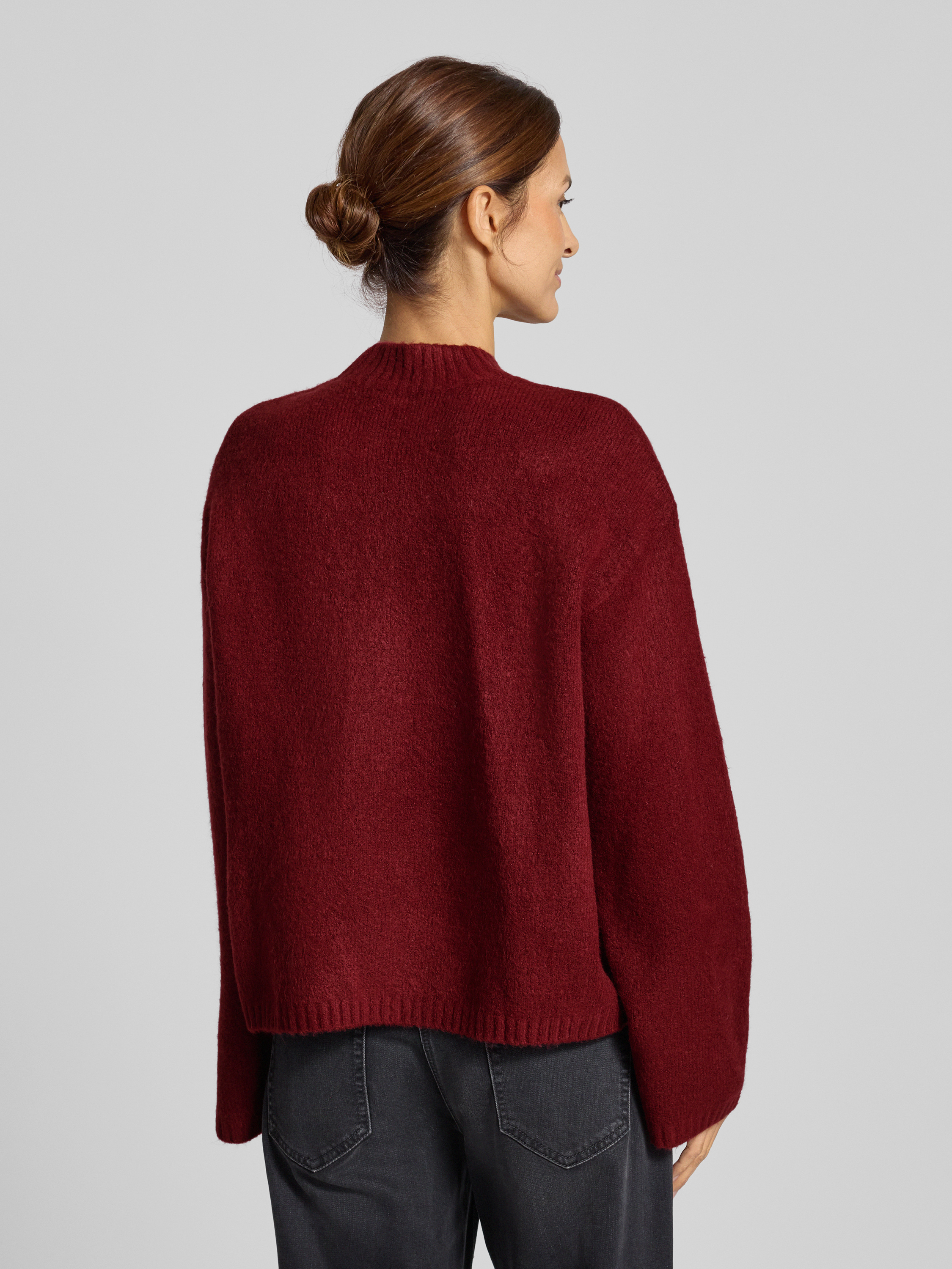 Jake*s CasualStrickpullover mit Stehkragen und überschnittenen Schultern in bordeaux