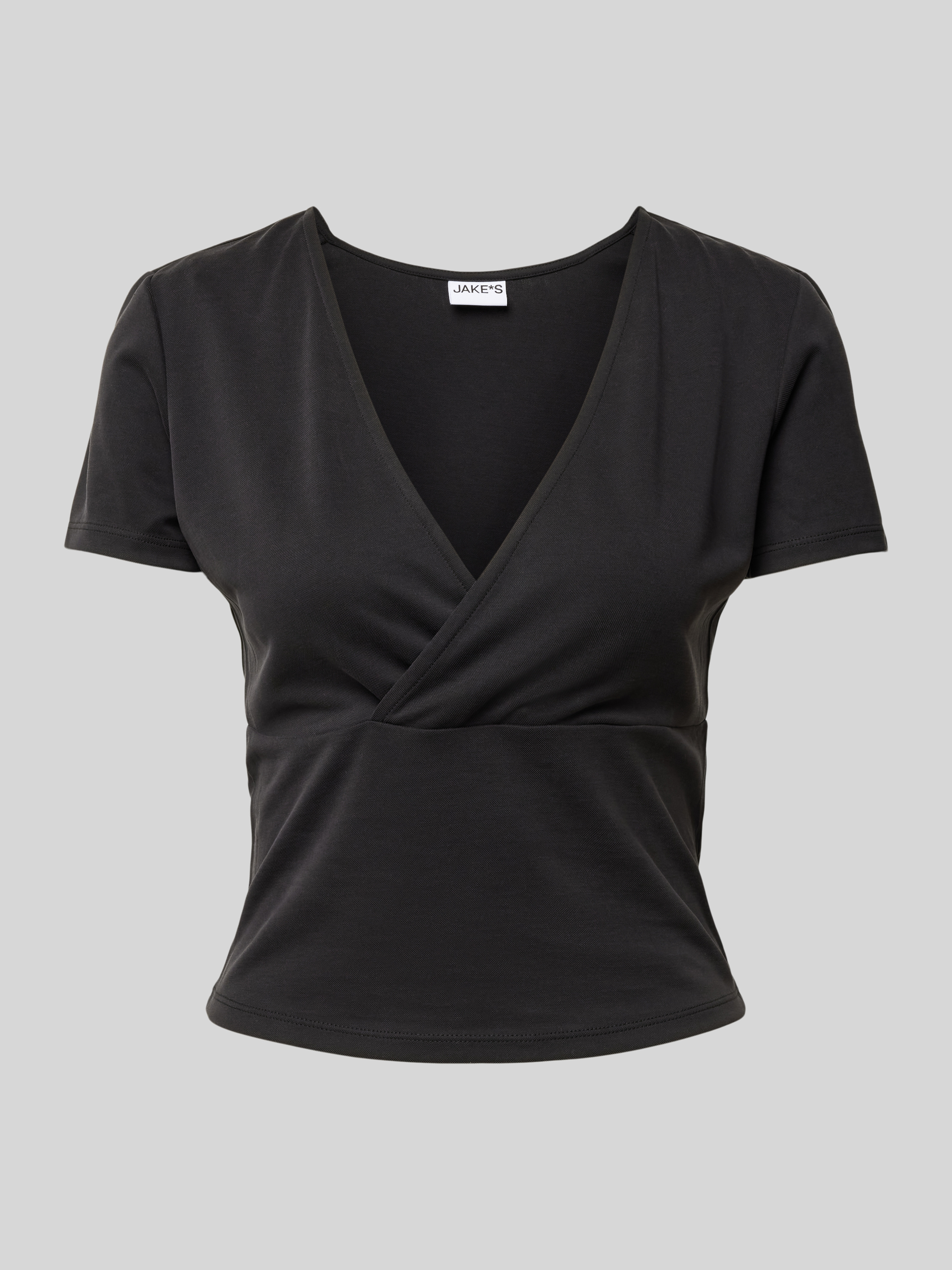 Jake*s CasualT-Shirt in Wickel-Optik in black