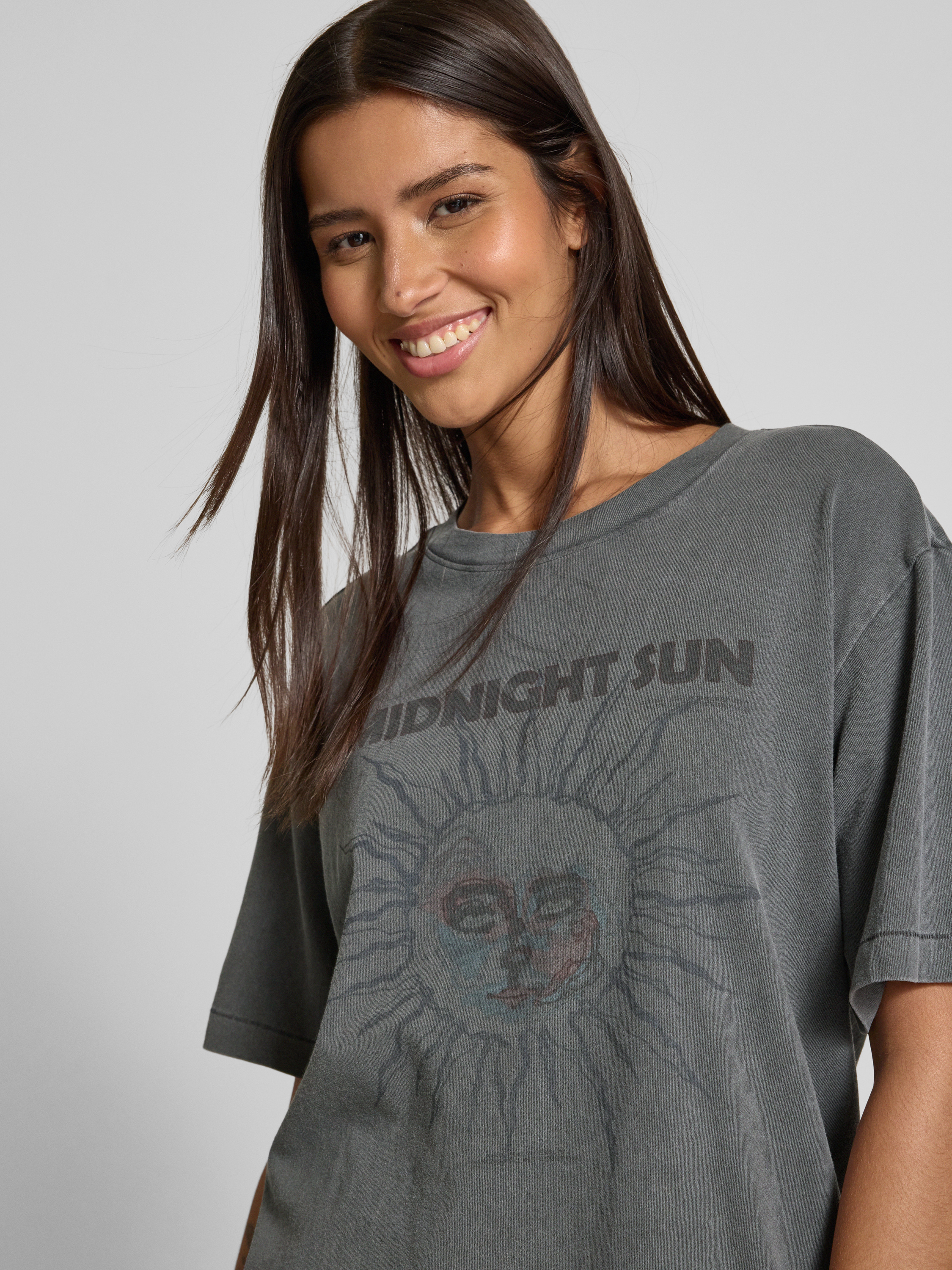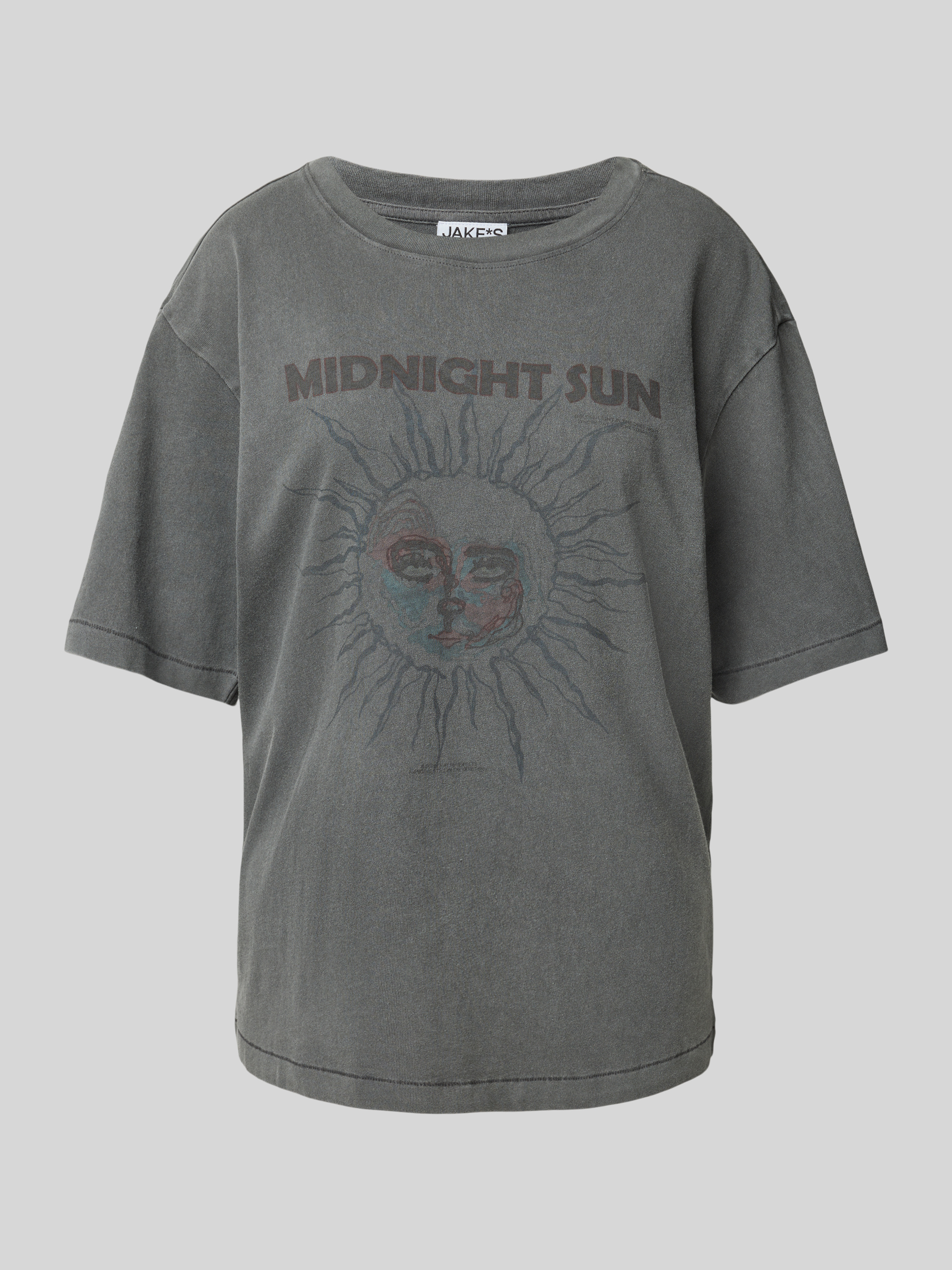 Das Damen T-Shirt von Jake*s Casual, gefertigt aus reiner Baumwolle, bietet mit seinem lockeren Schnitt und dem gerippten Rundhalsausschnitt hohen Tragekomfort. Der auffällige Motiv-Print verleiht jedem Outfit eine besondere Note, während die angenehme Passform Bewegungsfreiheit ermöglicht. Ideal für entspannte Alltagslooks.
