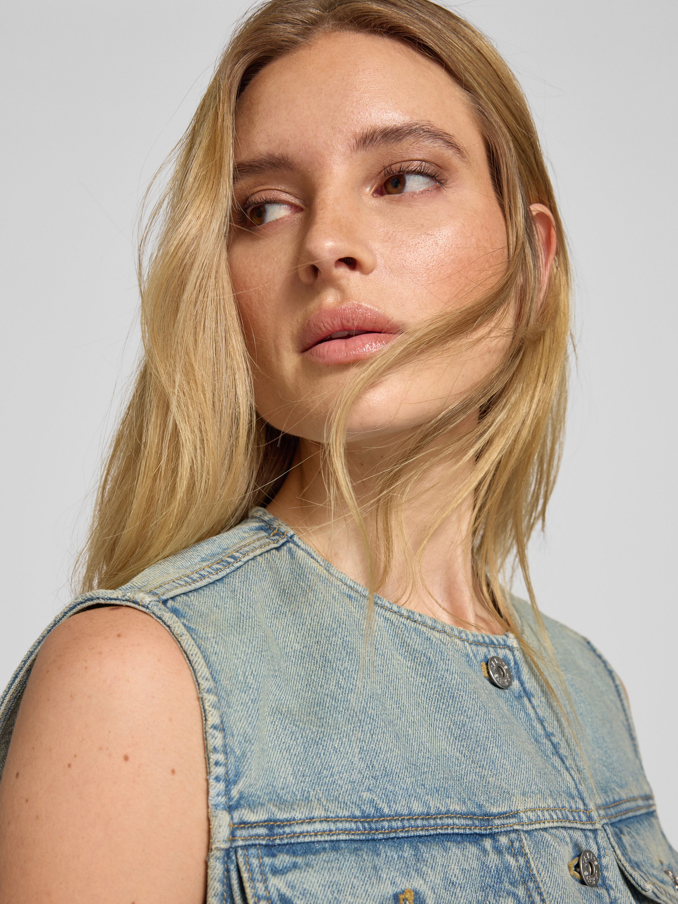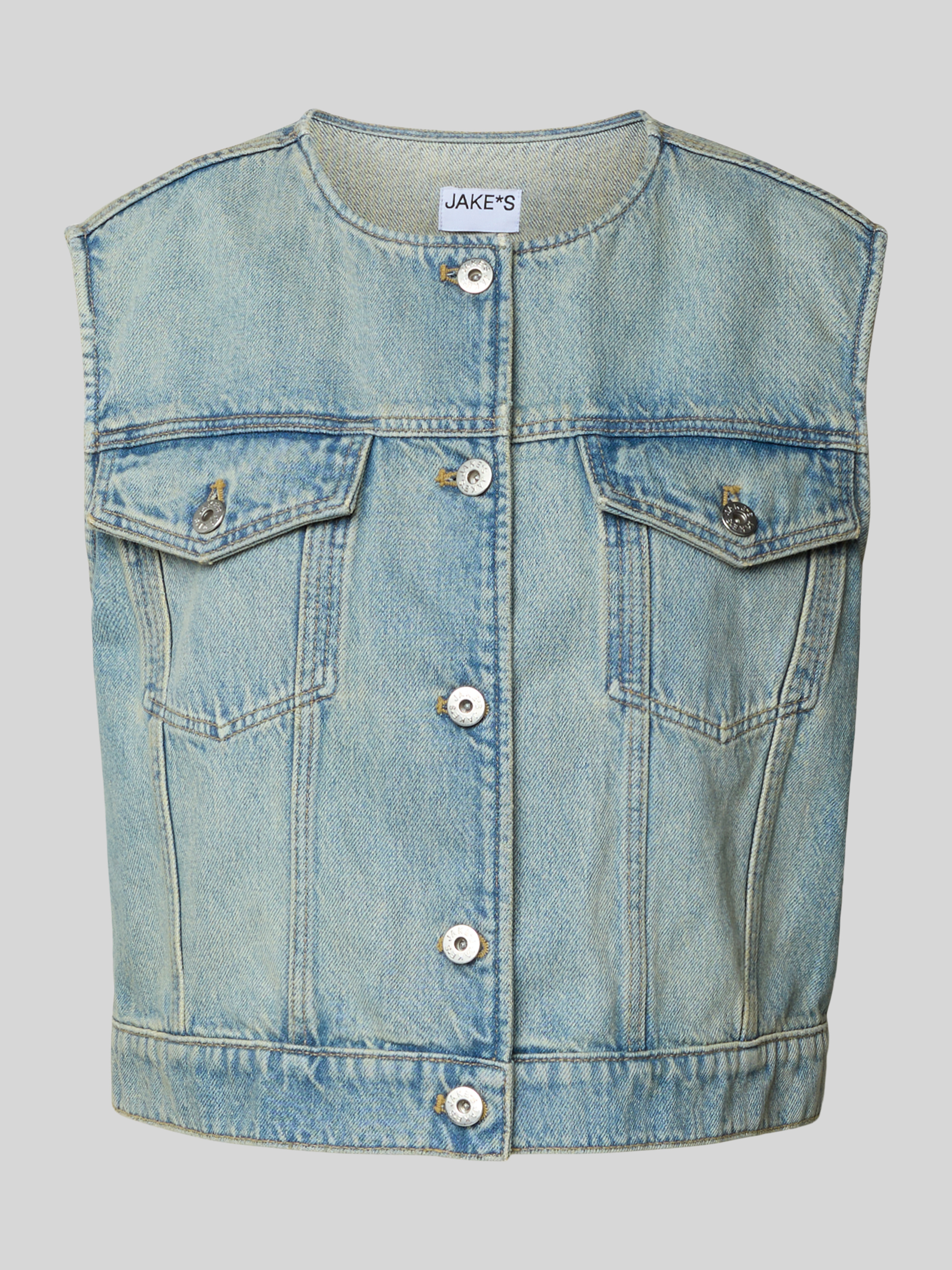 Die Damen Weste von Jake*s Casual kombiniert einen Baumwoll-Mix mit einem Anteil an Bio-Baumwolle, der für angenehmen Tragekomfort sorgt. Die Denim-Optik verleiht ihr eine lässige Ausstrahlung, während der Regular Fit eine bequeme Passform ermöglicht. Praktische Brusttaschen ergänzen das Design funktional.