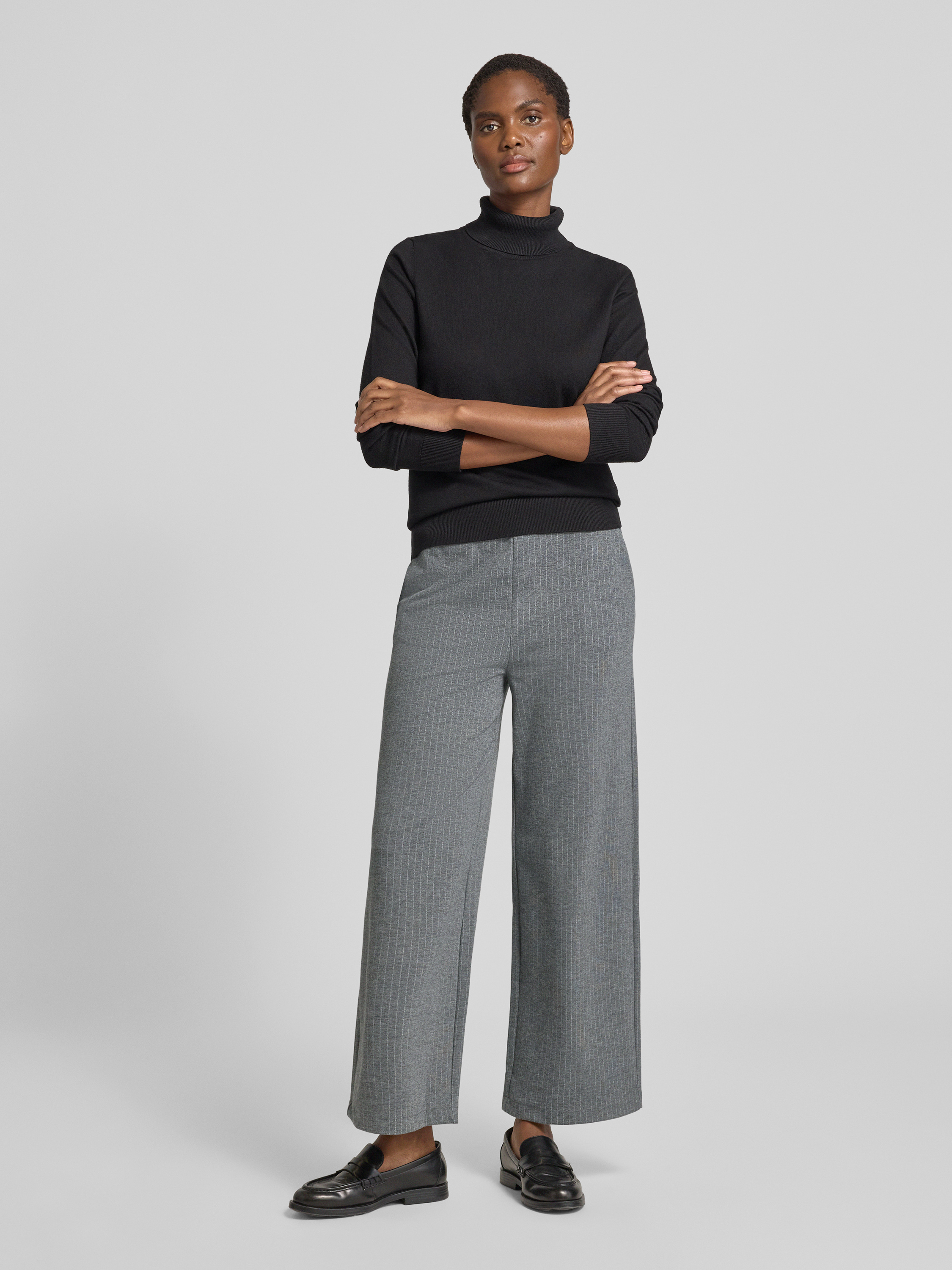 Die Damenhose von Jake*s Casual präsentiert sich mit weitem Bein und sorgt für ein angenehmes Tragegefühl. Durch den Material-Mix mit Viskose-Anteil fällt sie locker und bleibt auch an langen Tagen bequem. Der elastische Bund passt sich unkompliziert an, sodass man sich flexibel bewegt.