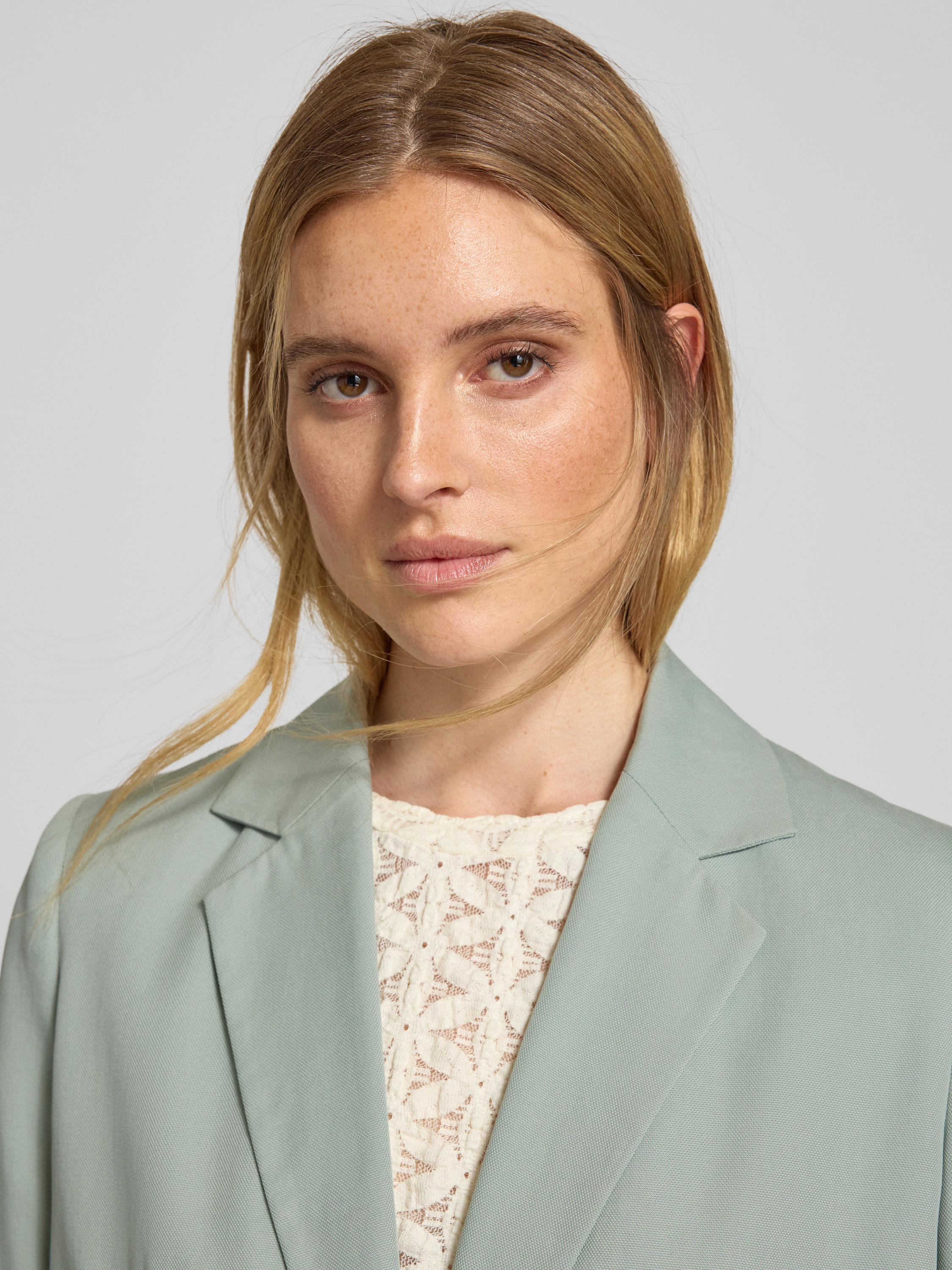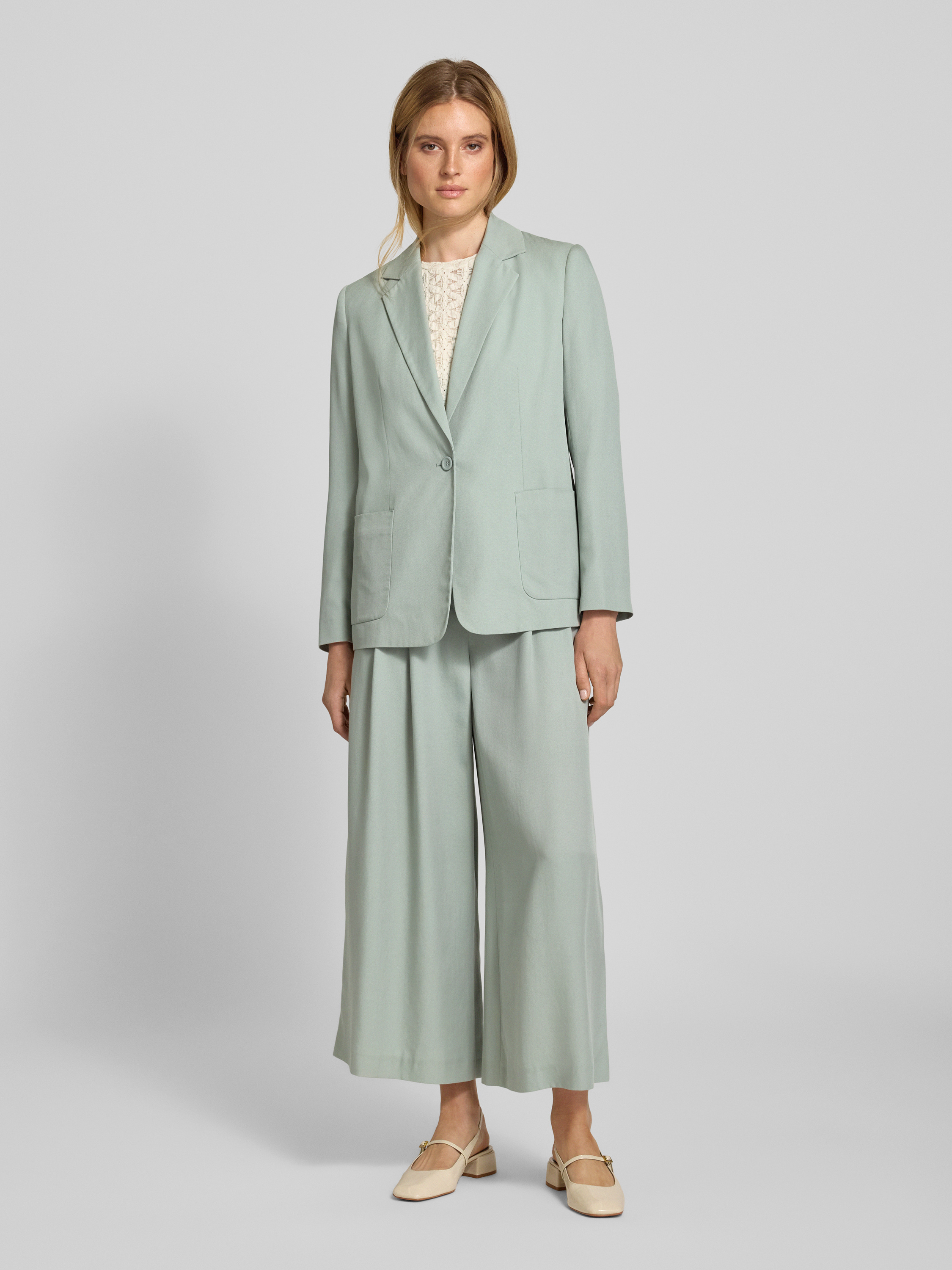 Der Blazer mit Reverskragen von Jake*s Collection aus reinem Lyocell kombiniert zeitlose Eleganz mit einem angenehmen Tragegefühl. Der Regular Fit sorgt für eine komfortable Passform, während die dezenten Eingrifftaschen praktische Details bieten. Ideal für formelle Anlässe oder den Büroalltag.