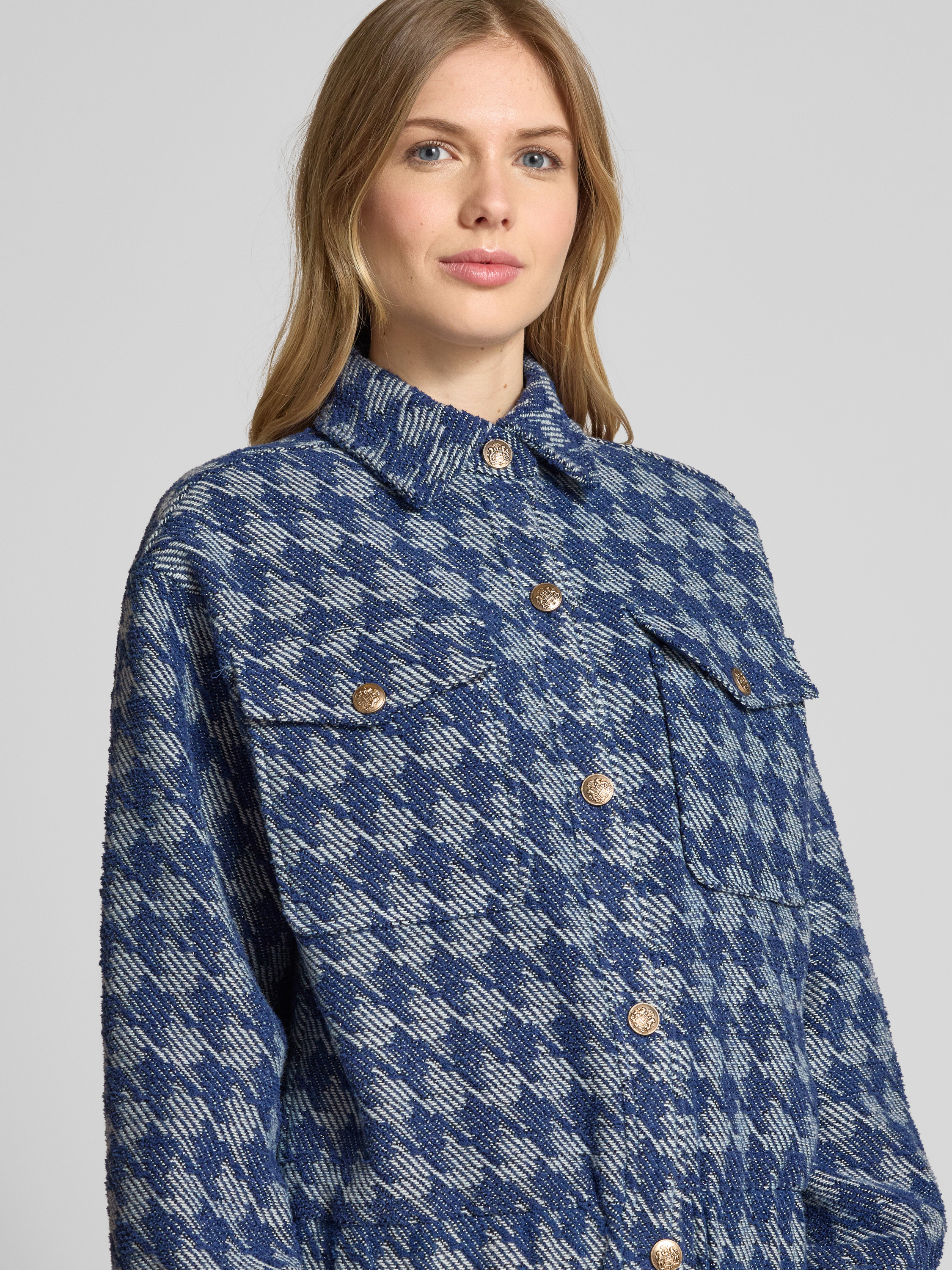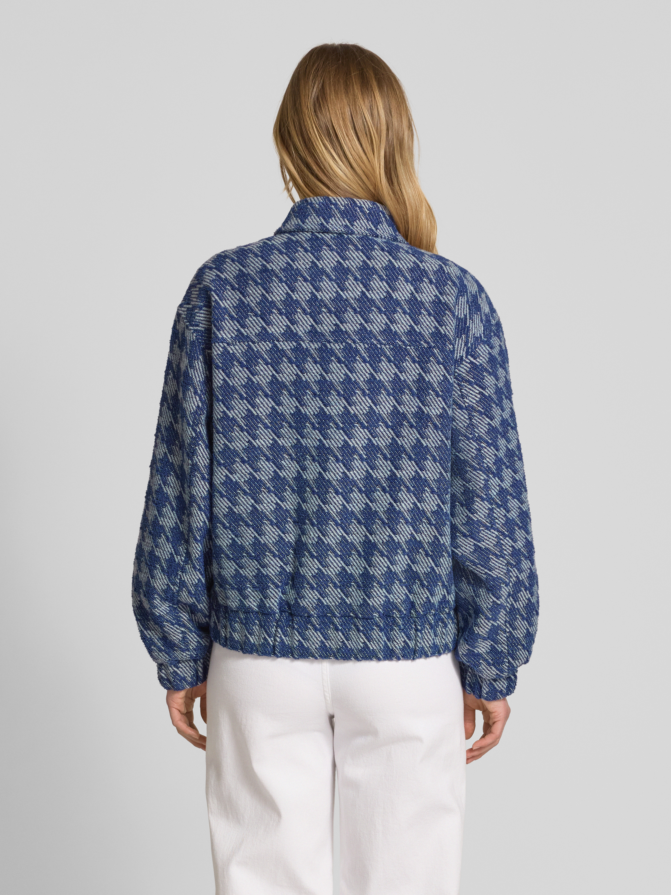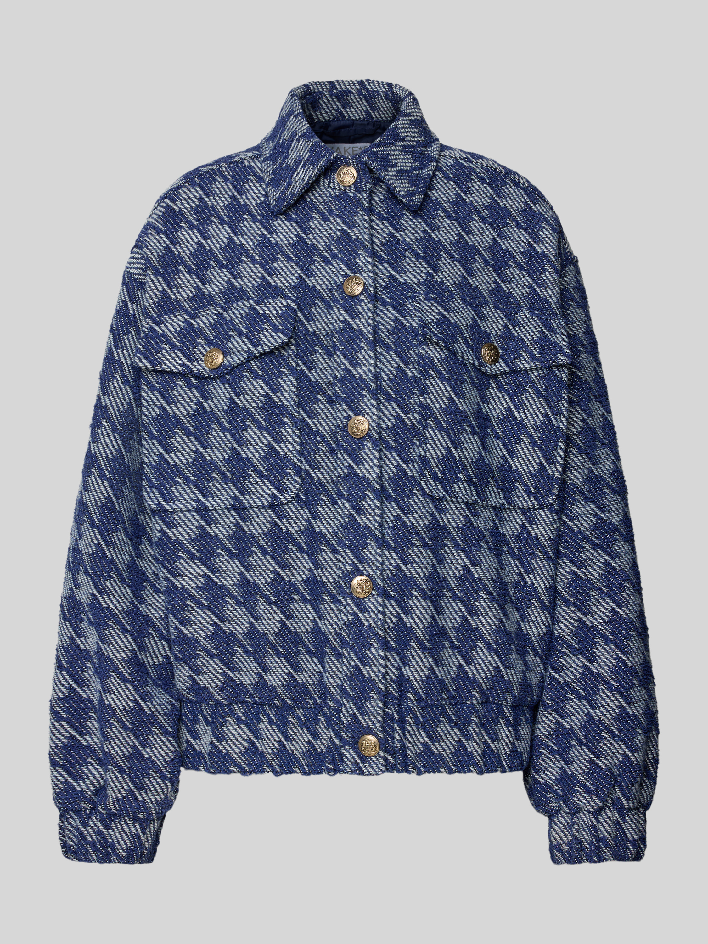 Jake*s CollectionBoucle Denim Jacke mit Hahnentritt-Muster in dunkelblau
