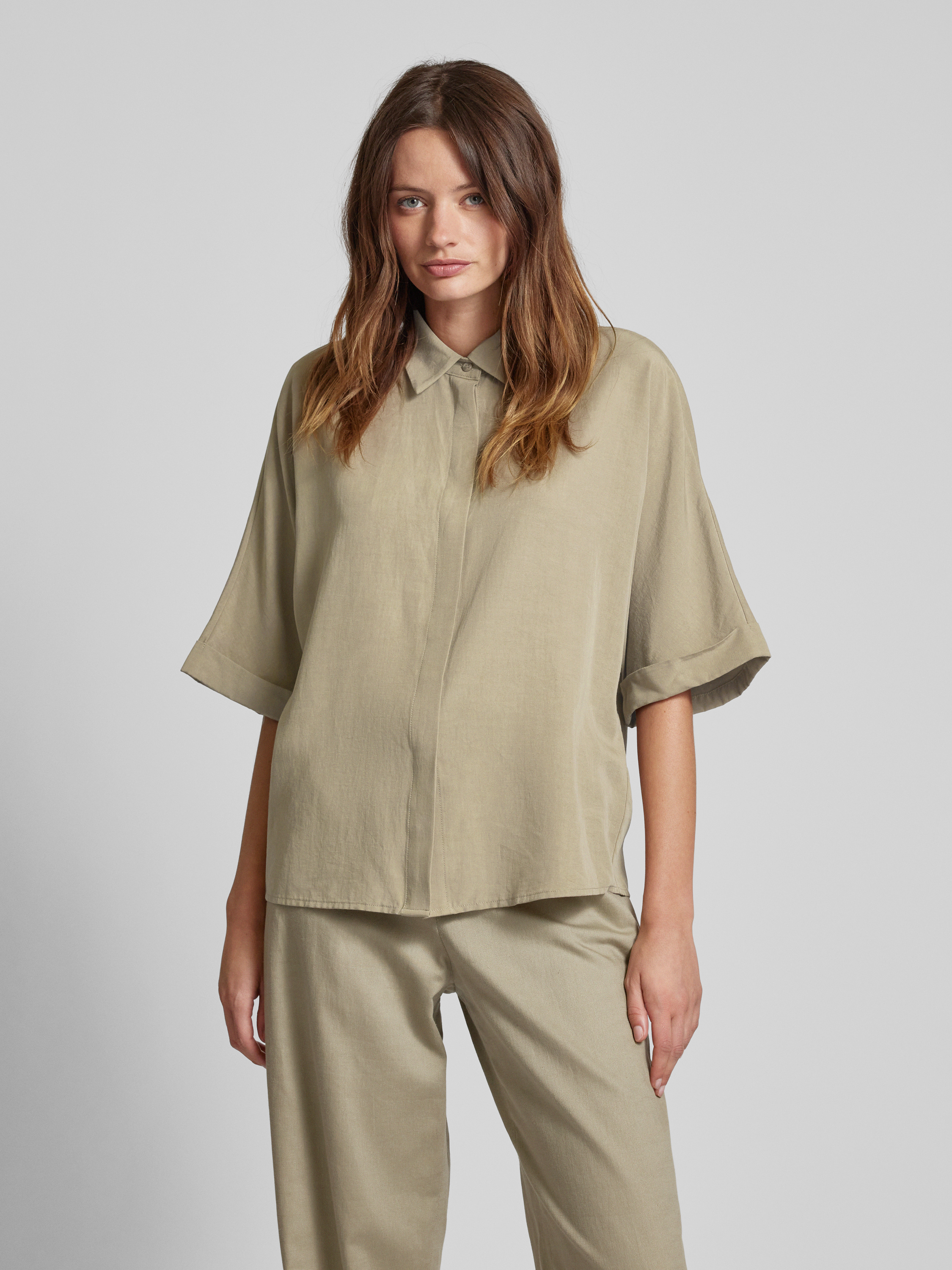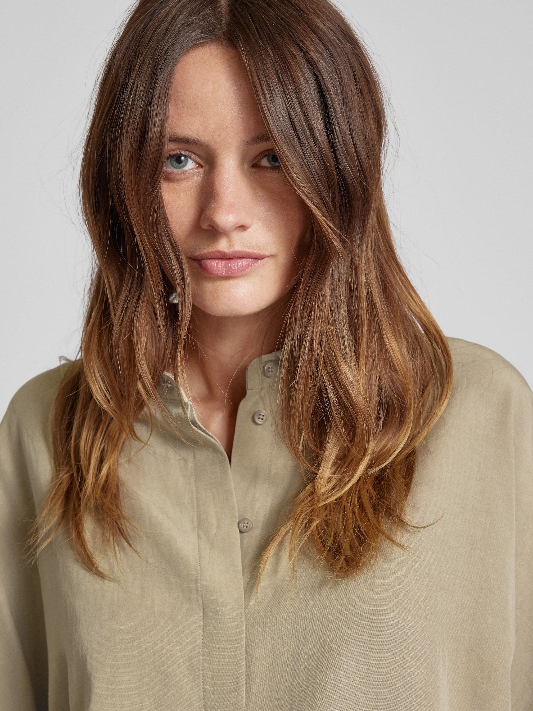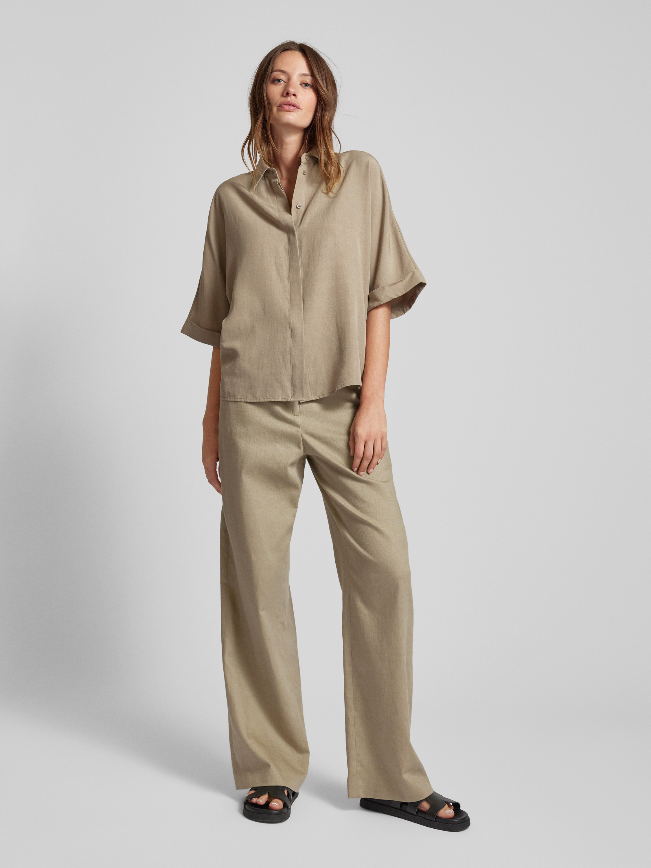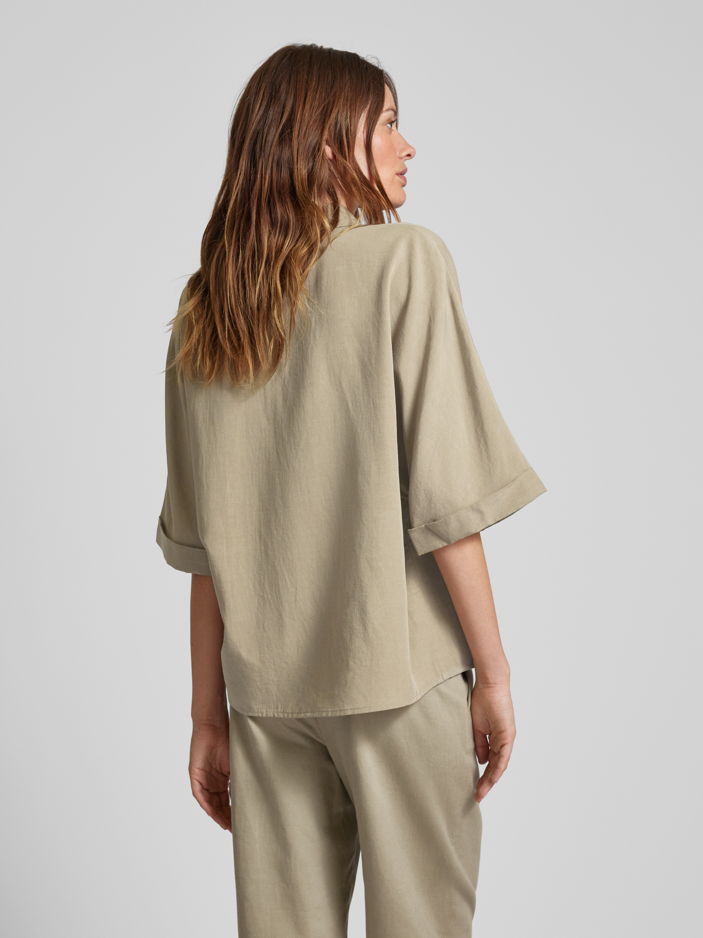 Loose Fit Bluse aus Lyocell-Mix mit Leinen-Anteil in mud
