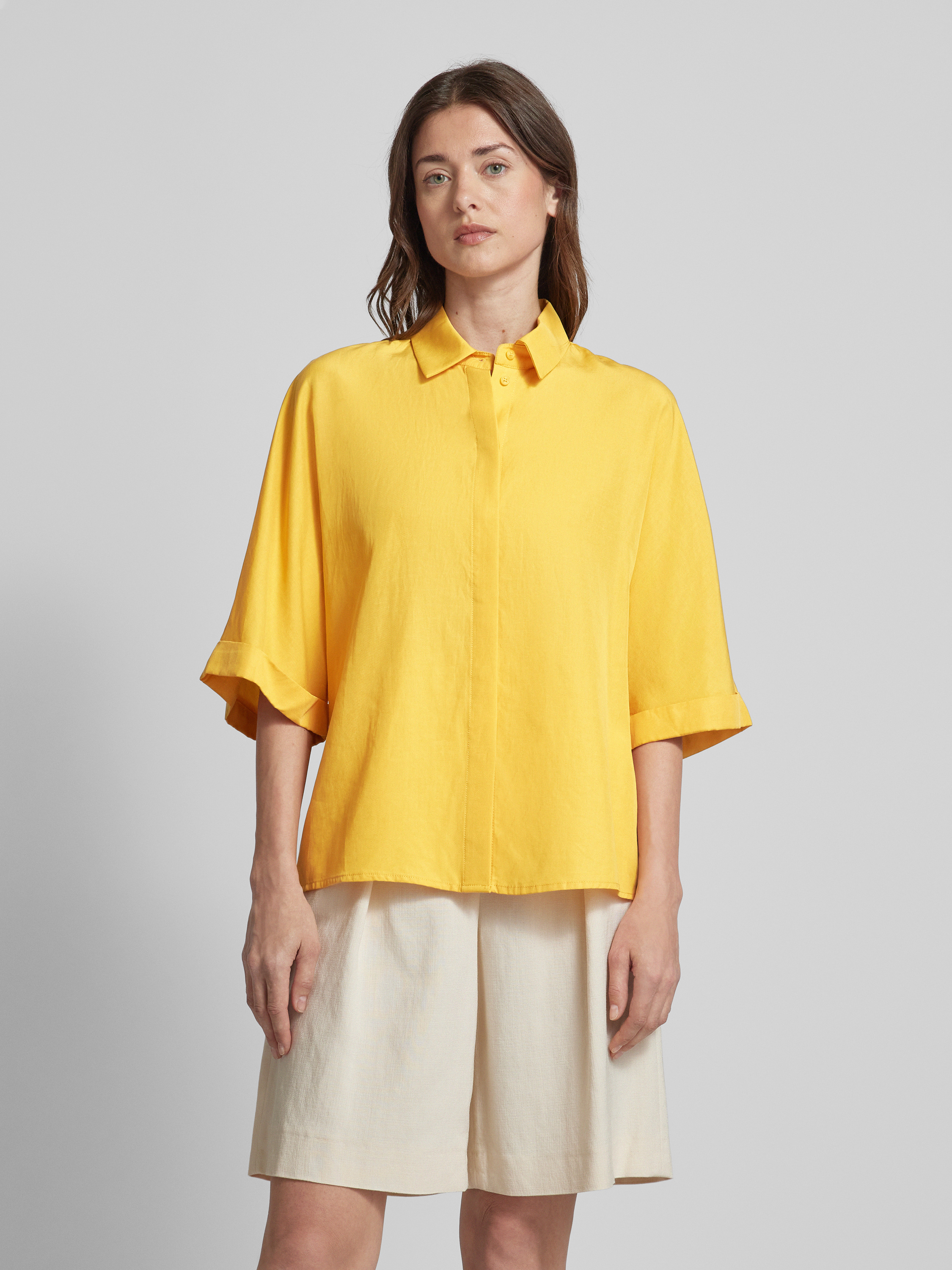 Jake*s CollectionLoose Fit Bluse aus Lyocell-Mix mit Leinen-Anteil in senf