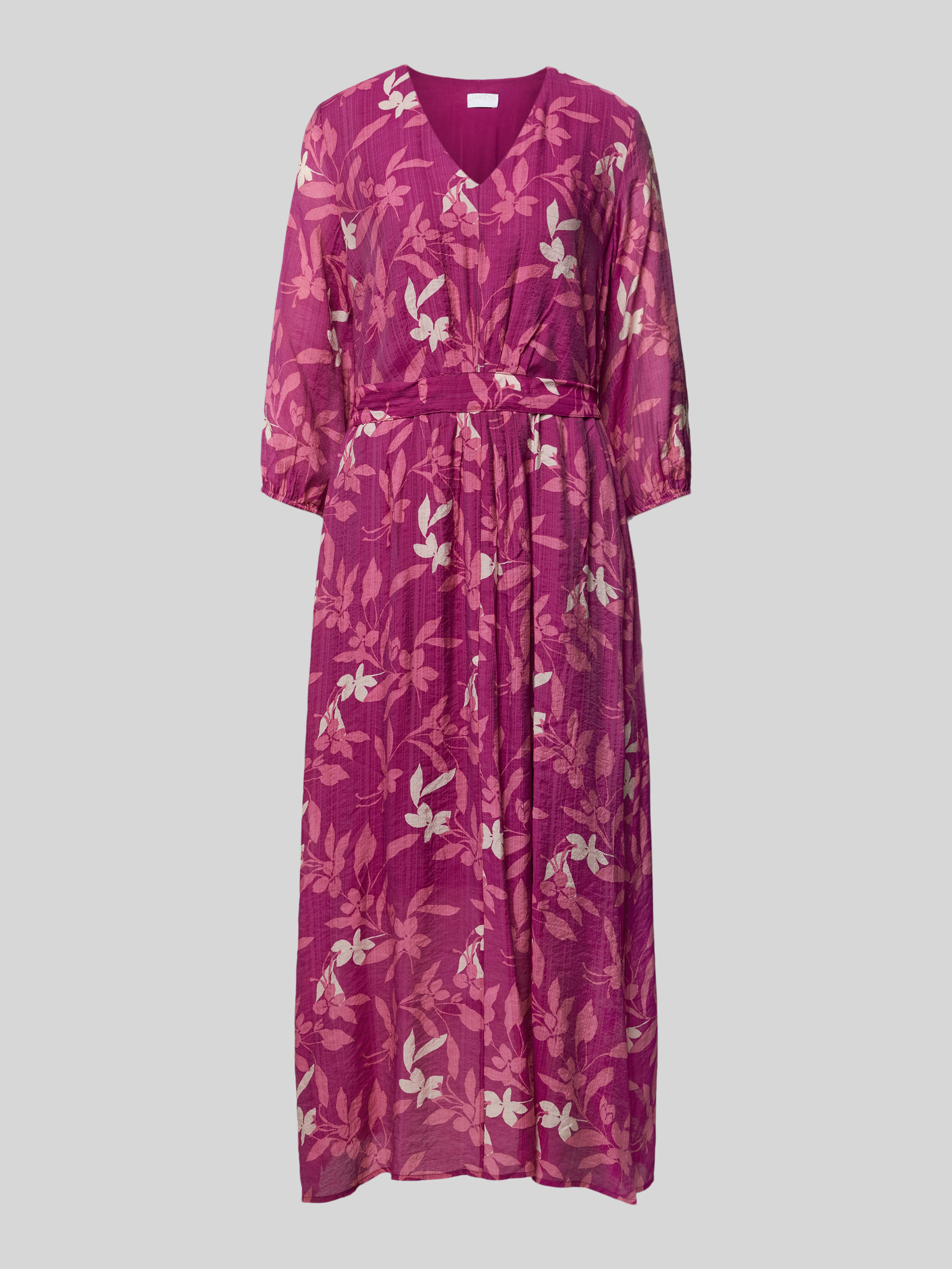 Das Damen Midikleid von Jake*s Collection fällt durch seinen lockeren Schnitt angenehm leicht und sorgt für ein entspanntes Tragegefühl. Dank des V-Ausschnitts wirkt die Silhouette dezent feminin, während der Allover-Print dem Outfit eine frische, lebendige Note verleiht. Im Alltag eignet sich das Modell vielseitig und unkompliziert.