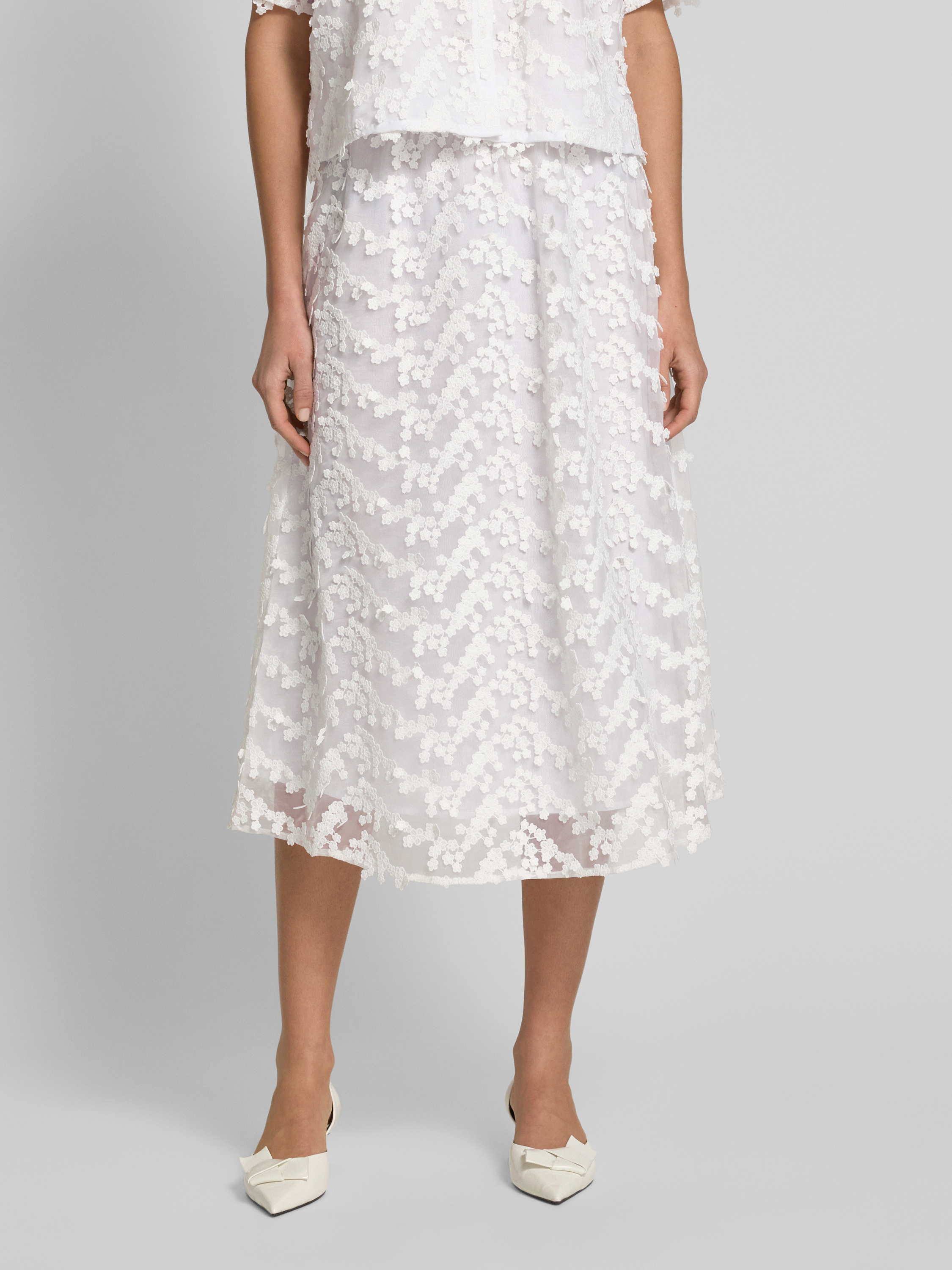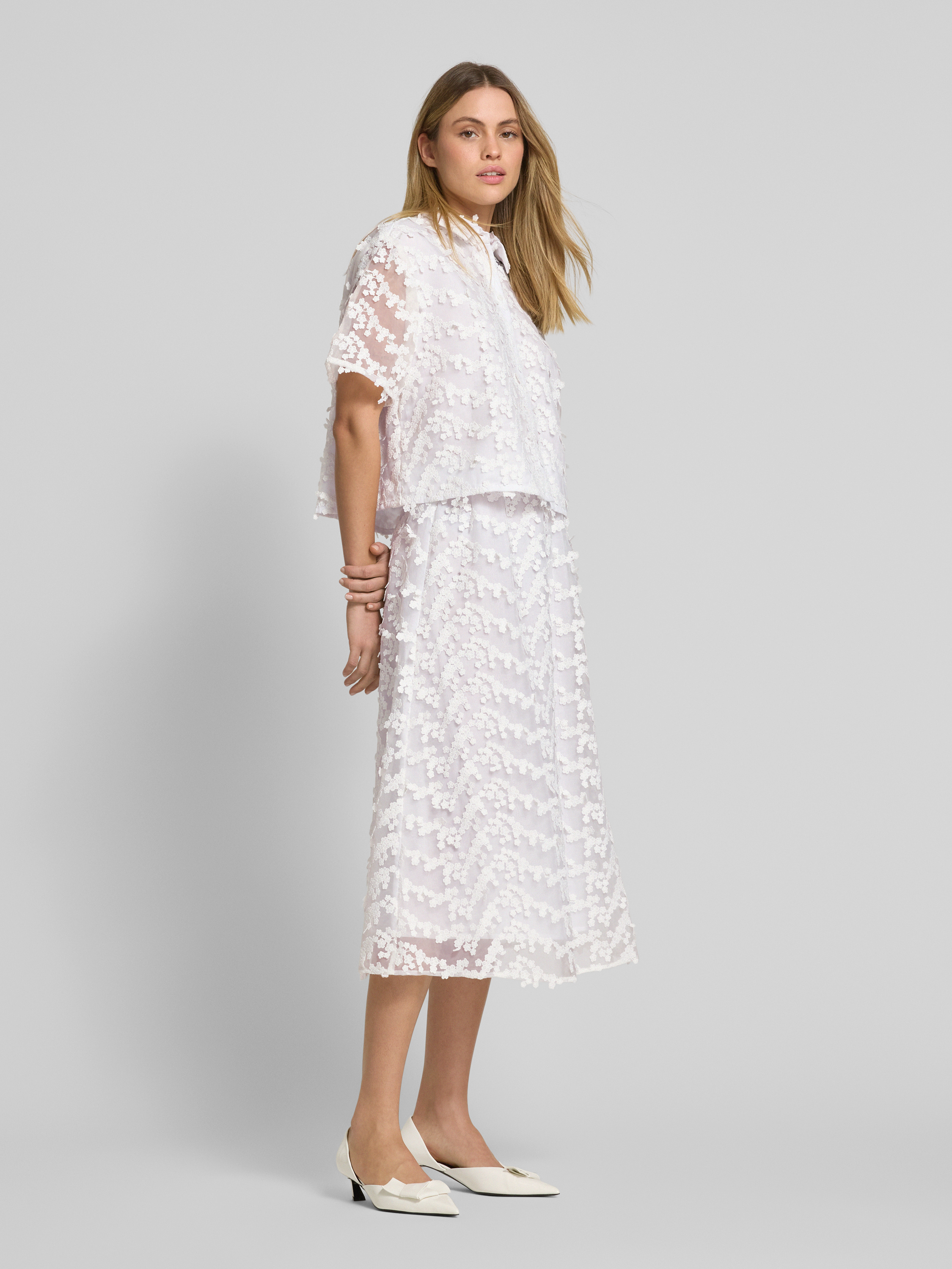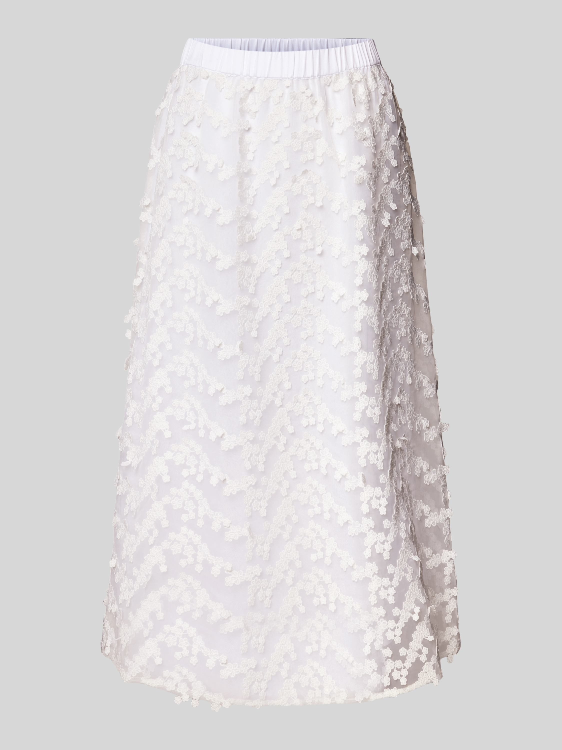 Der Midirock von Jake*s Collection präsentiert sich in einer schmeichelhaften A-Linie und vereint stilvolle Eleganz mit bequemer Passform durch seinen elastischen Bund. Der raffinierte Spitzenbesatz verleiht dem semitransparenten Design eine subtile Leichtigkeit, während der blickdichte Unterrock für angenehme Diskretion sorgt.