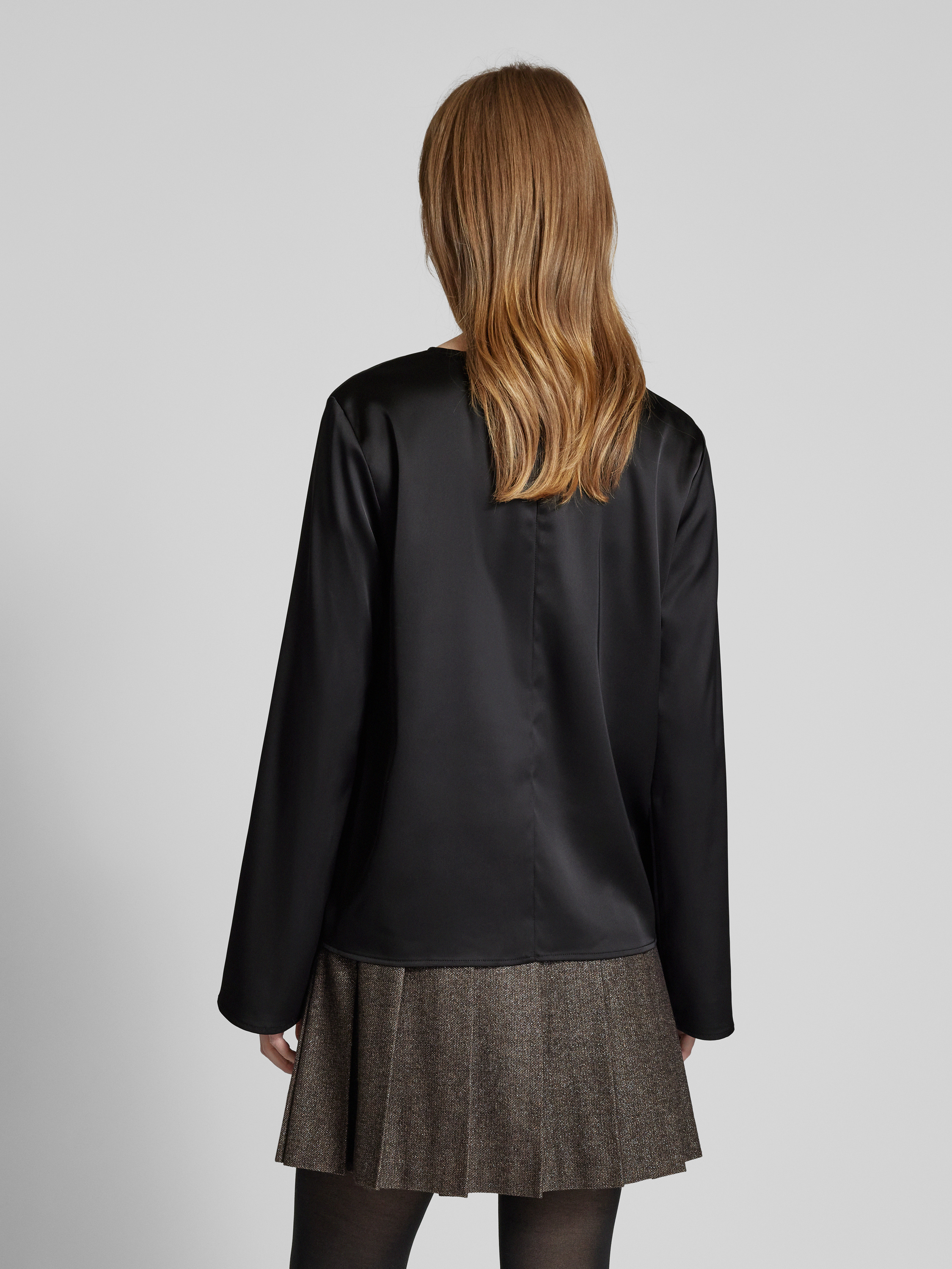 Die Oversized Bluse von Jake*s Collection verbindet den fließenden Charme von Satin mit einem lockeren Schnitt, der Bewegungsfreiheit und Komfort bietet. Der Rundhalsausschnitt und die langen Ärmel sorgen für ein lässiges Tragegefühl, ideal für vielseitige Alltagskombinationen. Perfekt für einen stilvollen Auftritt.