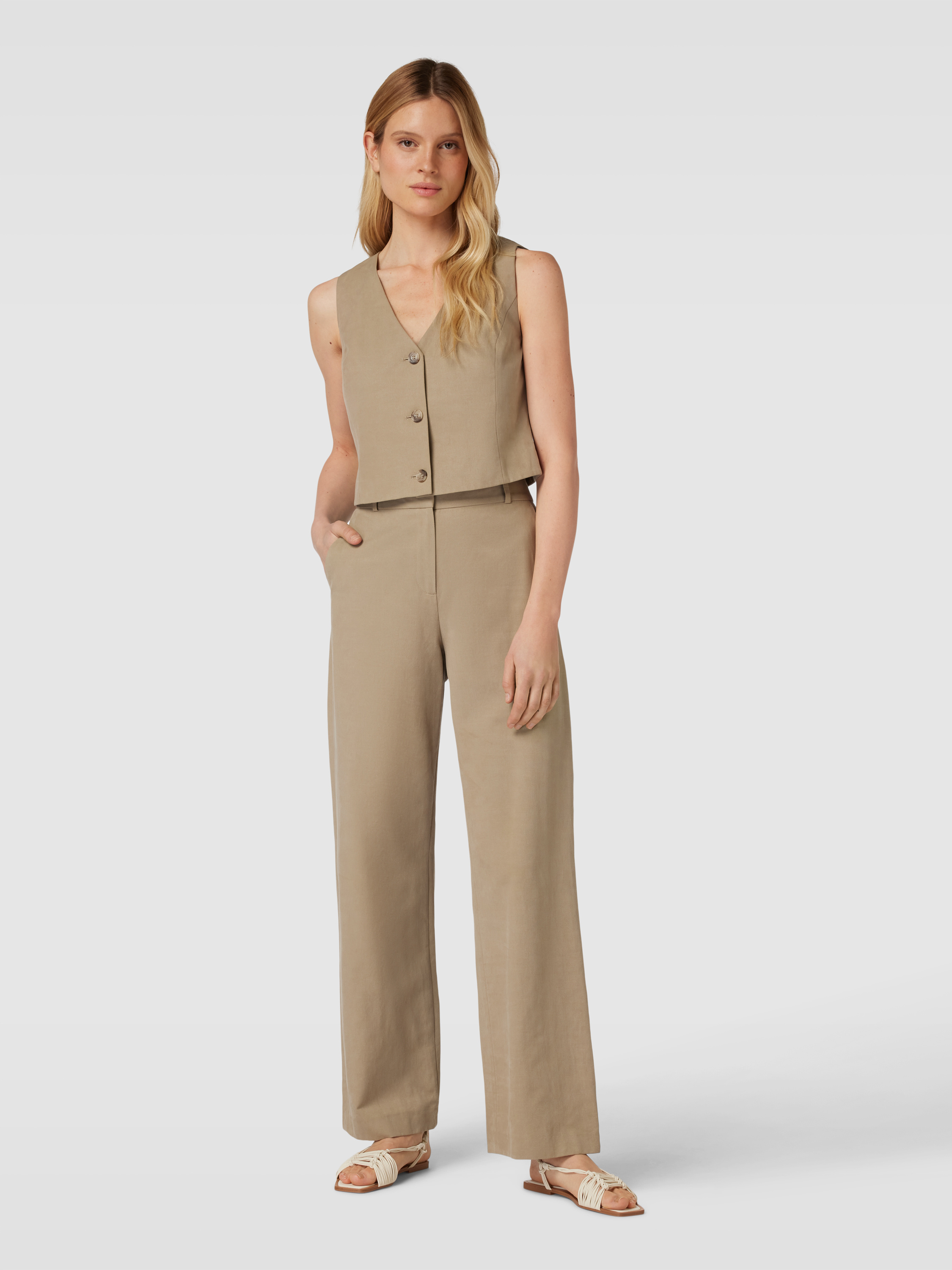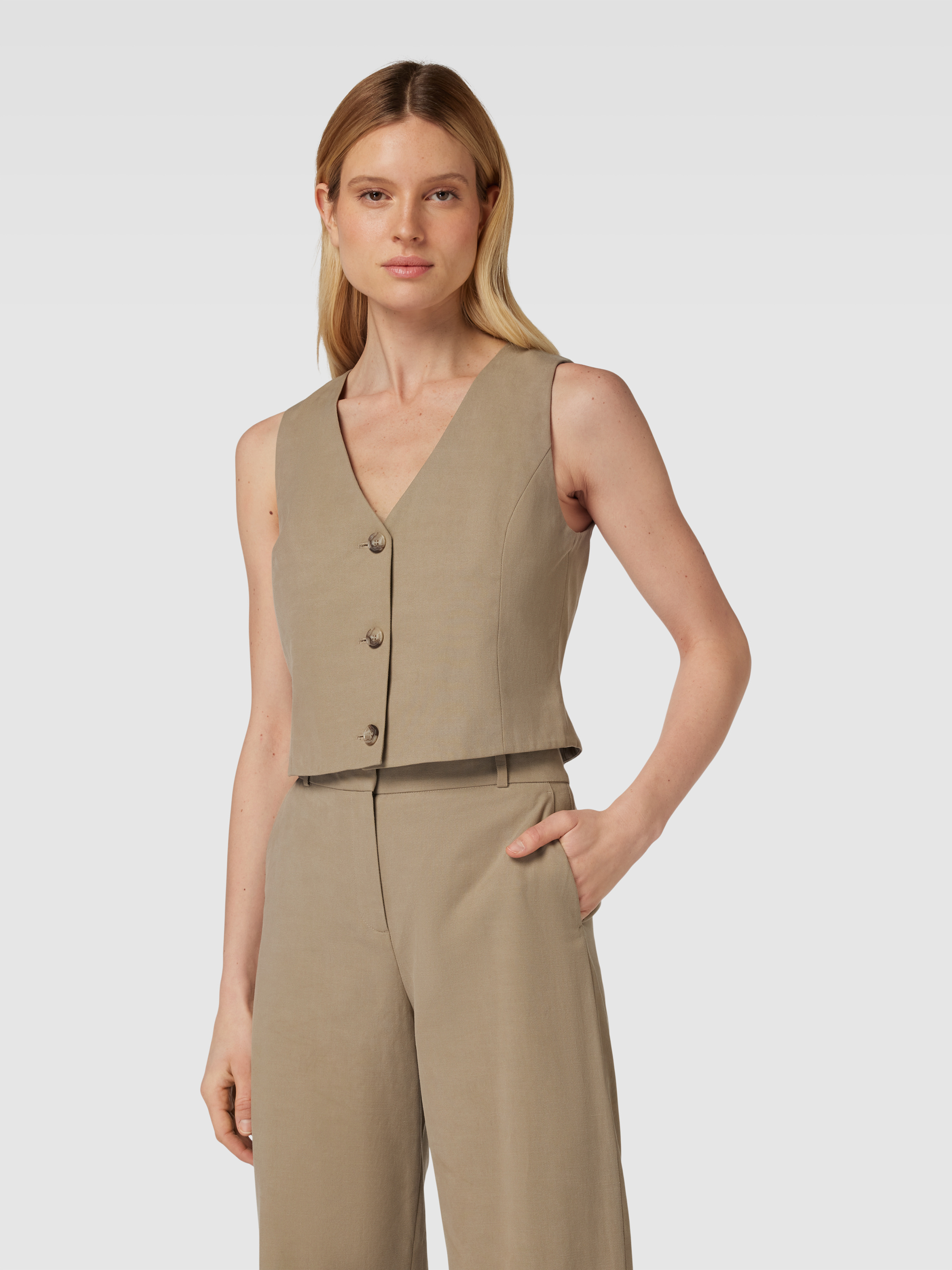 Jake*s CollectionRegular Fit Weste aus Baumwoll-Leinen-Mix in mud