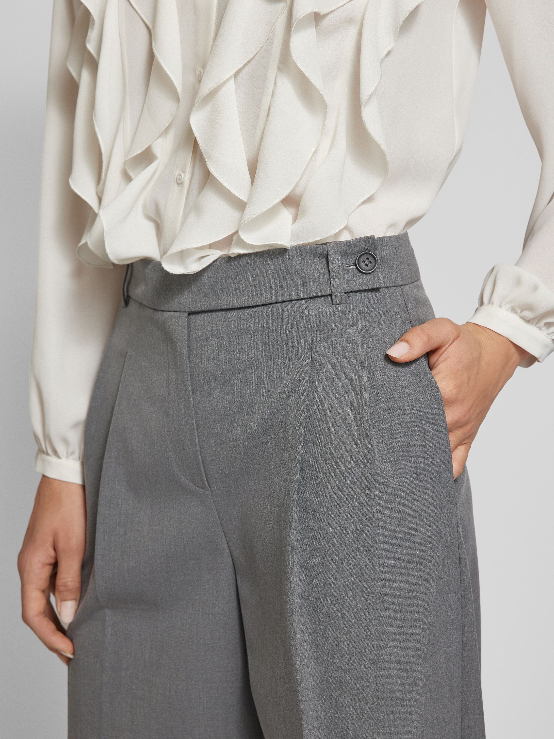 Die Stoffhose von Jake*s Casual überzeugt durch ihren lockeren Schnitt und die eleganten Bundfalten, die eine stilvolle Silhouette schaffen. Französische Eingrifftaschen und Gesäßtaschen sorgen für praktischen Stauraum. Diese Hose eignet sich ideal für vielseitige Kombinationen im Alltag oder Büro.