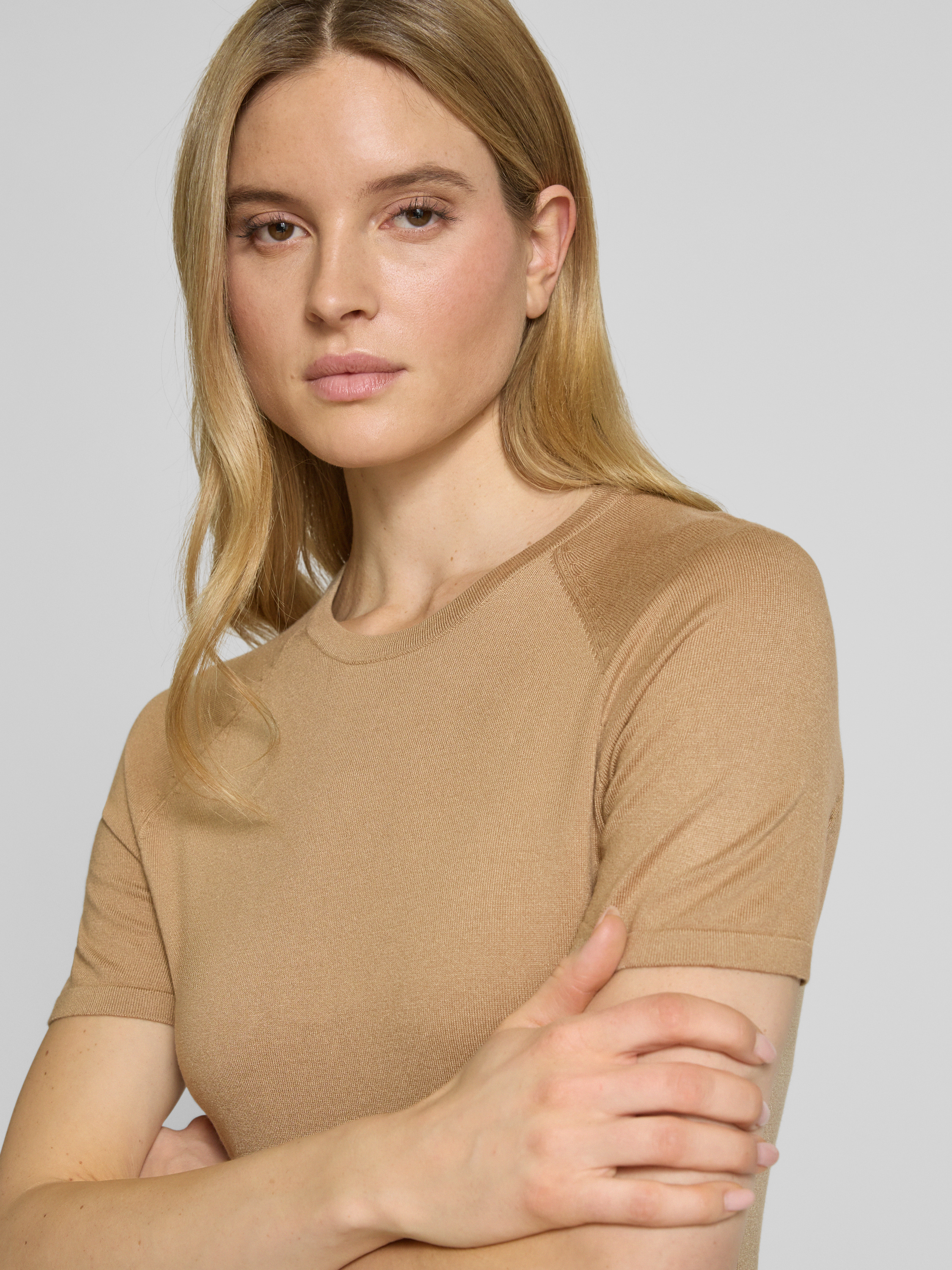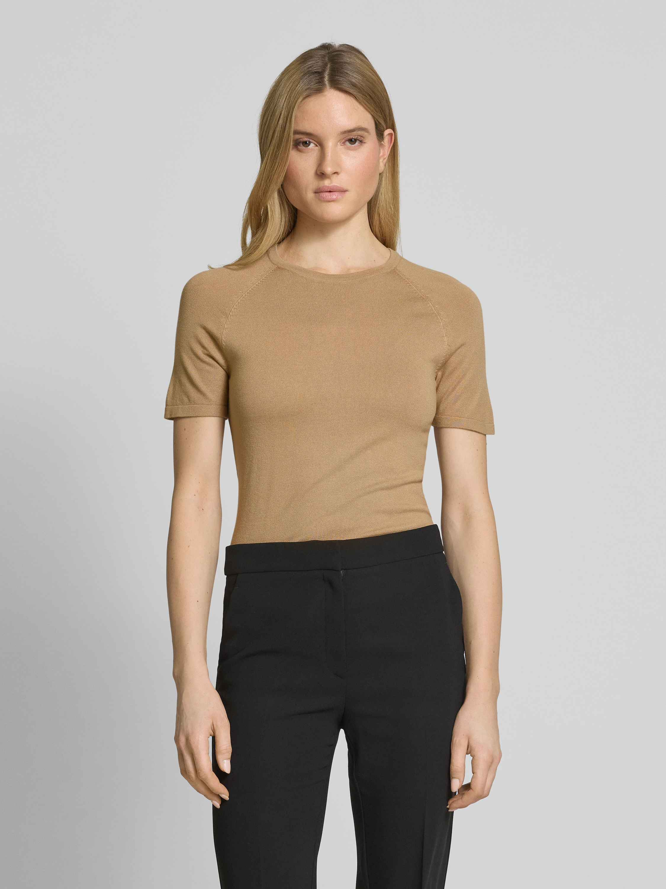 Jake*s CollectionStrickshirt mit gerippten Abschlüssen in sand