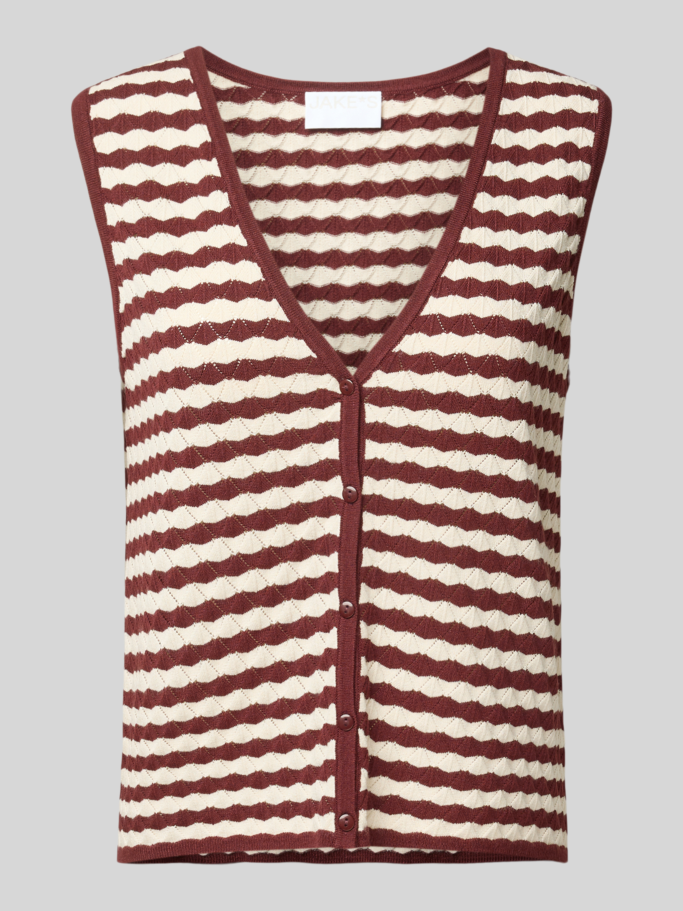 Die Strickweste von Jake*s Collection vereint einen geraden Schnitt mit einem charmanten V-Ausschnitt, wodurch sie sich ideal für lässige und formelle Anlässe eignet. Der weiche Viskose-Mix bietet hohen Tragekomfort, während die Knopfleiste dem Design eine klassische Note verleiht.