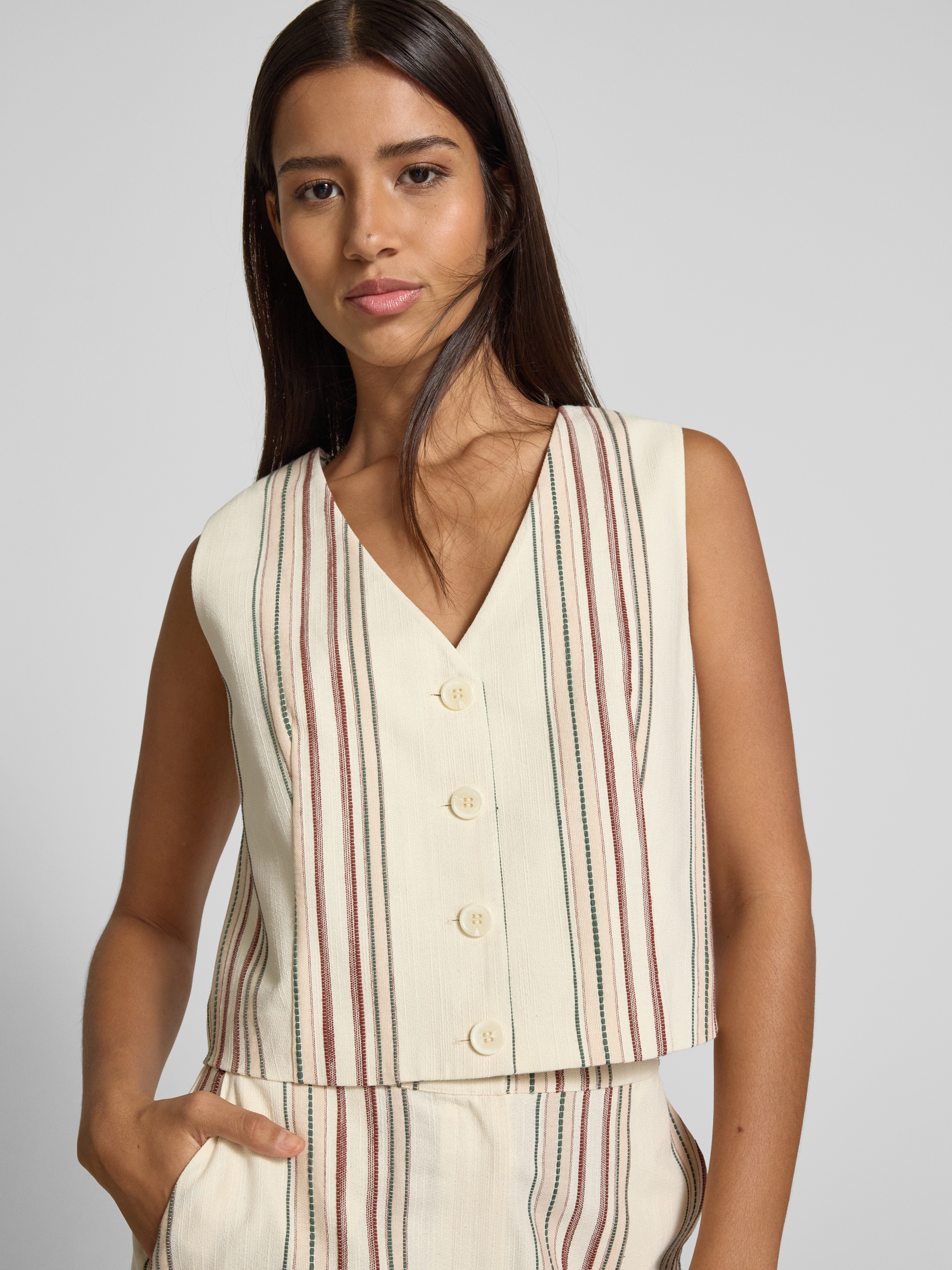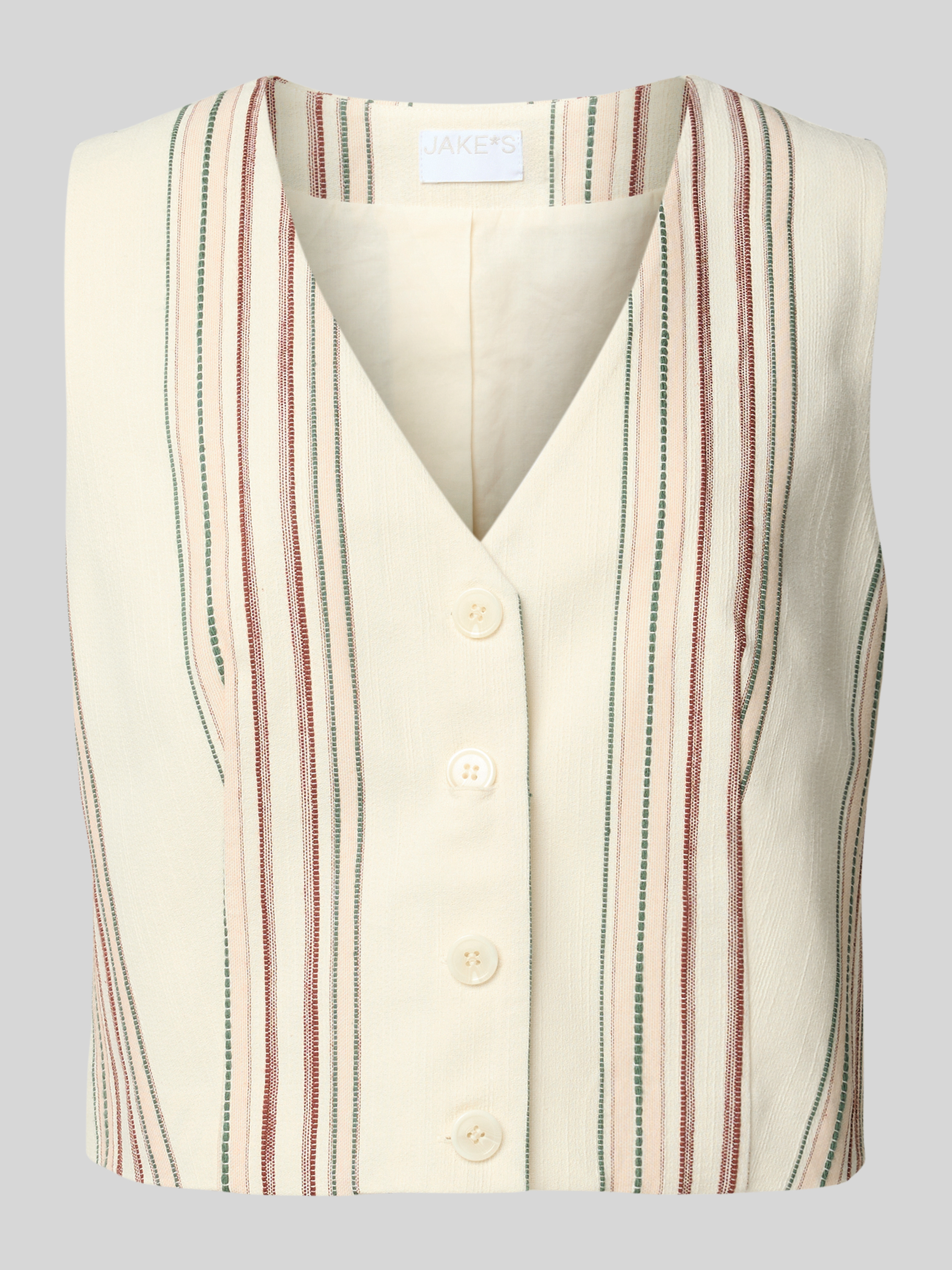 Die Damen Weste von Jake*s Collection beeindruckt durch ihren geraden Schnitt und den eleganten V-Ausschnitt. Gefertigt aus reiner Baumwolle, bietet sie angenehmen Tragekomfort. Diese Weste eignet sich ideal, um sowohl lässige als auch formelle Outfits harmonisch zu ergänzen.