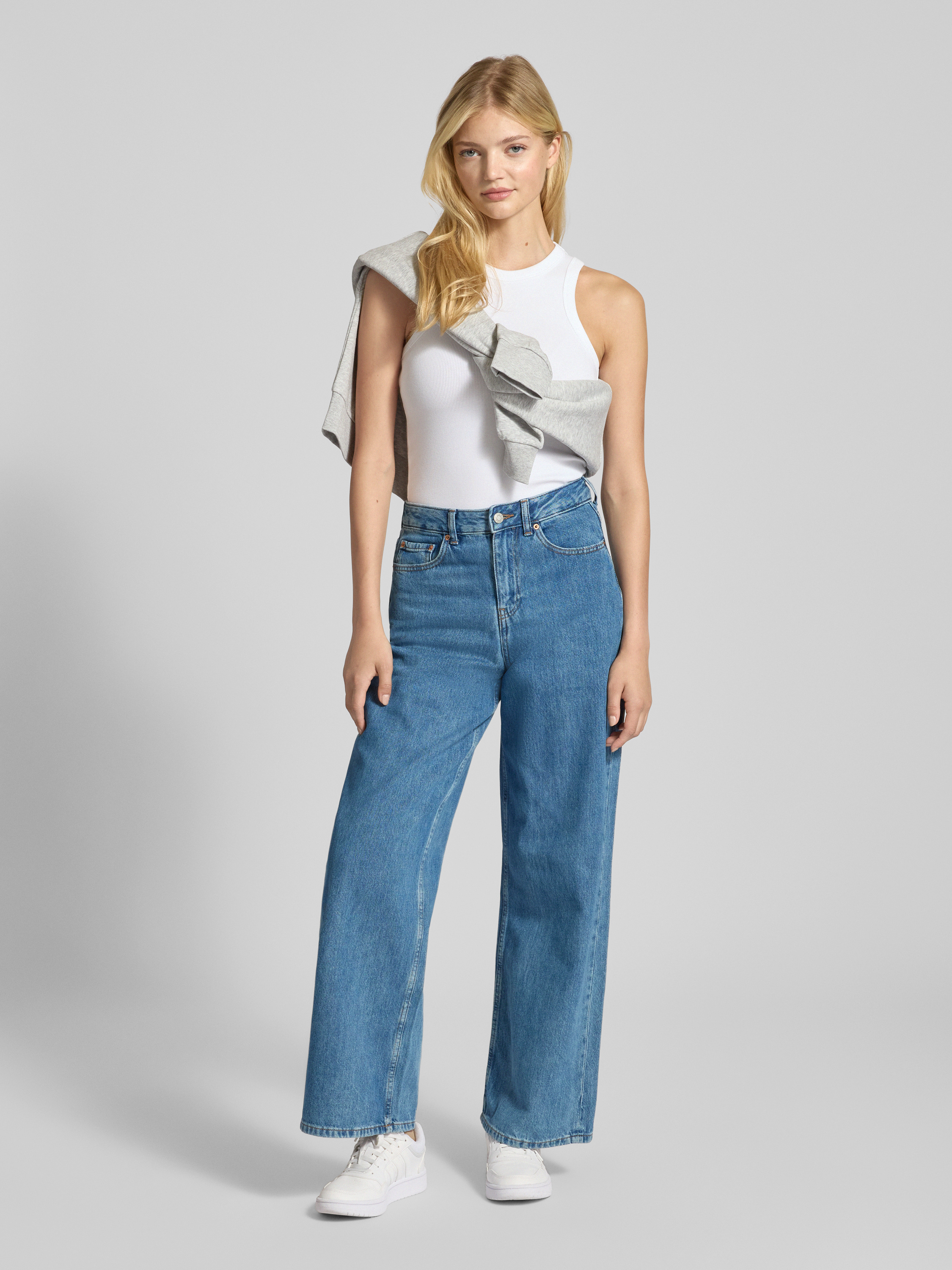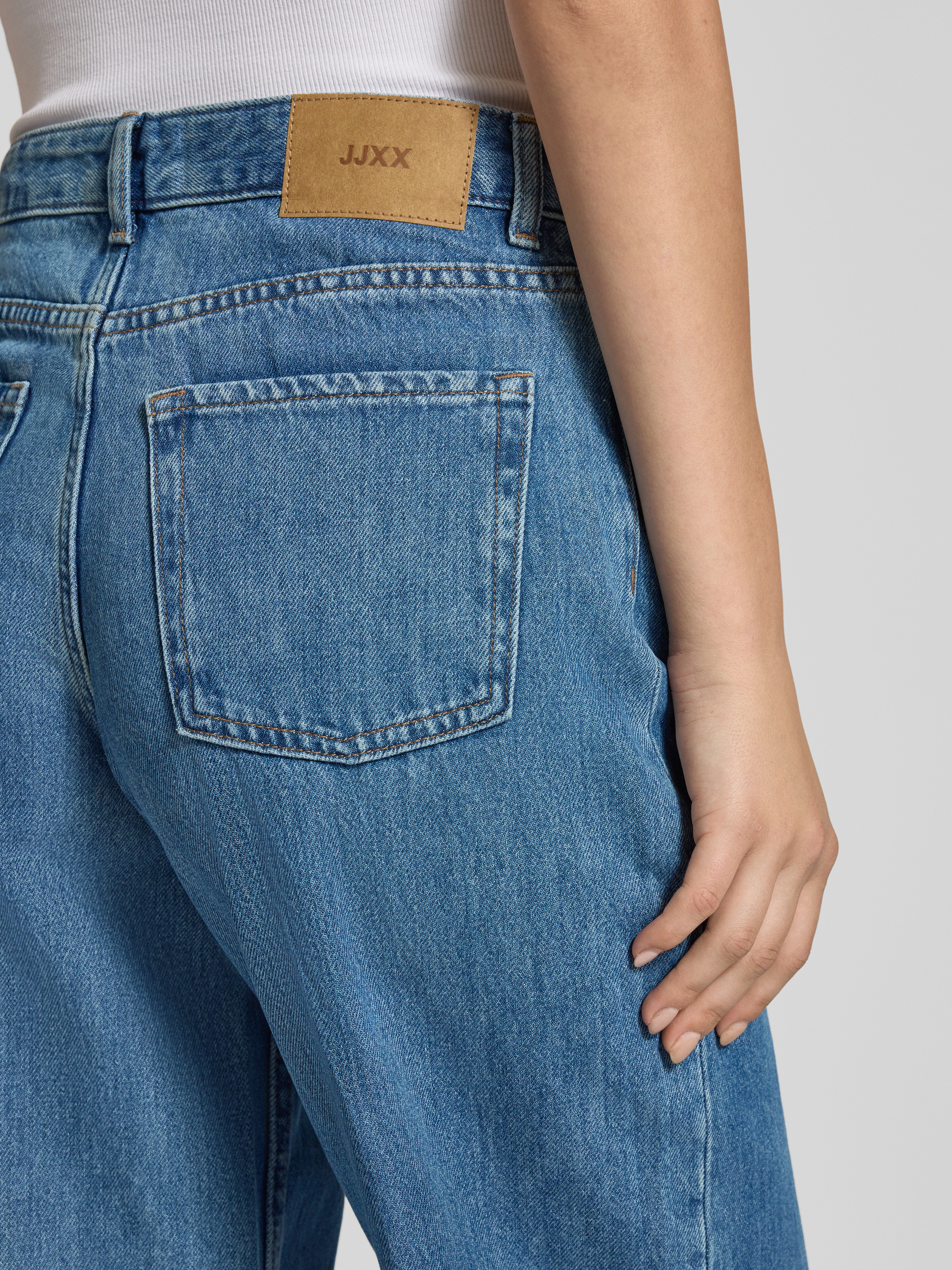 Die Damen Jeans von JJXX, Modell 'TOKYO', fällt durch ihren weiten Schnitt und das klassische 5-Pocket-Design auf. Ein Baumwoll-Elasthan-Mix sorgt für angenehmen Tragekomfort, während die entspannte Passform Bewegungsfreiheit im Alltag ermöglicht. Besonders vielseitig lässt sich diese Wide Leg Jeans kombinieren.