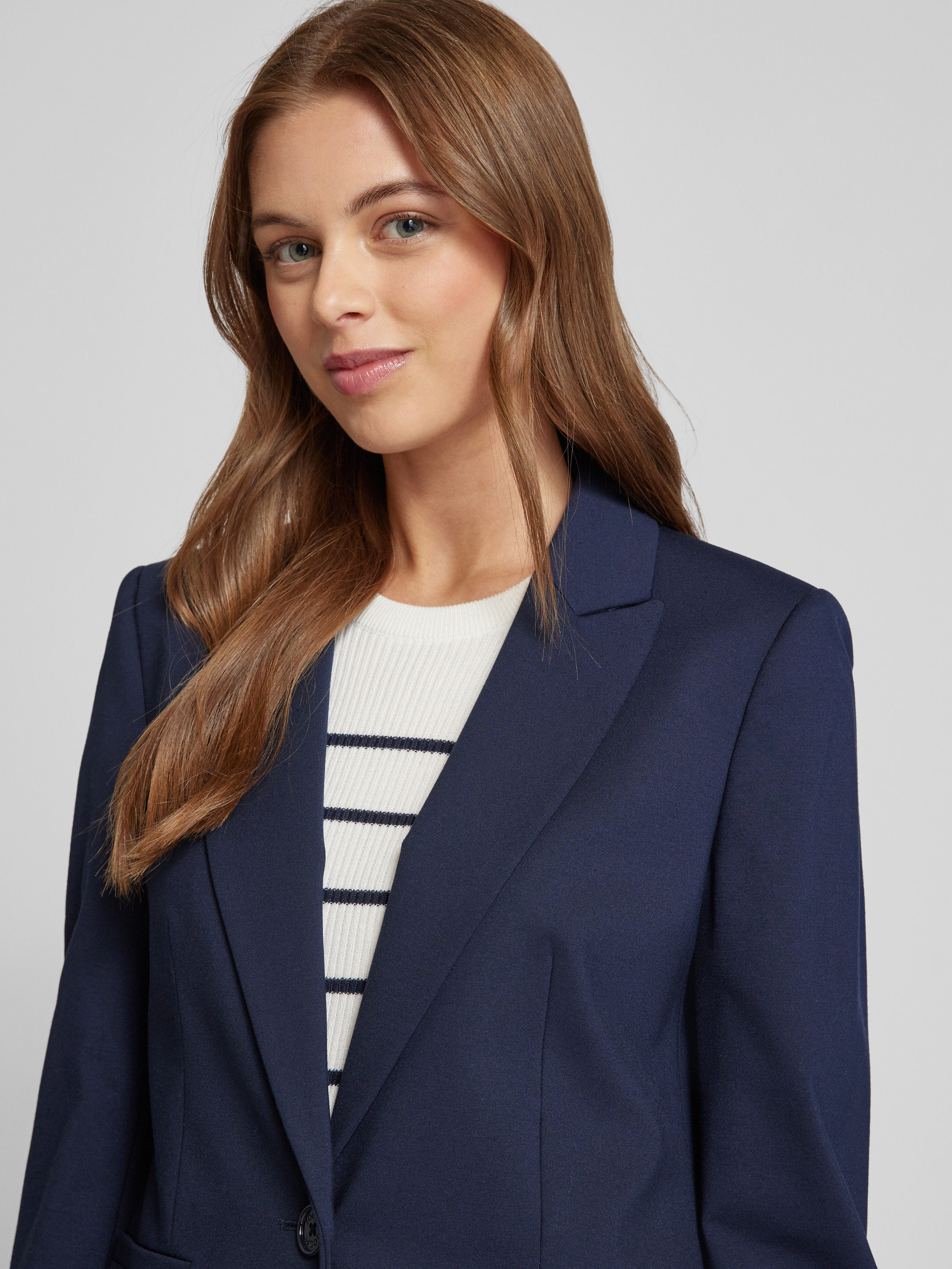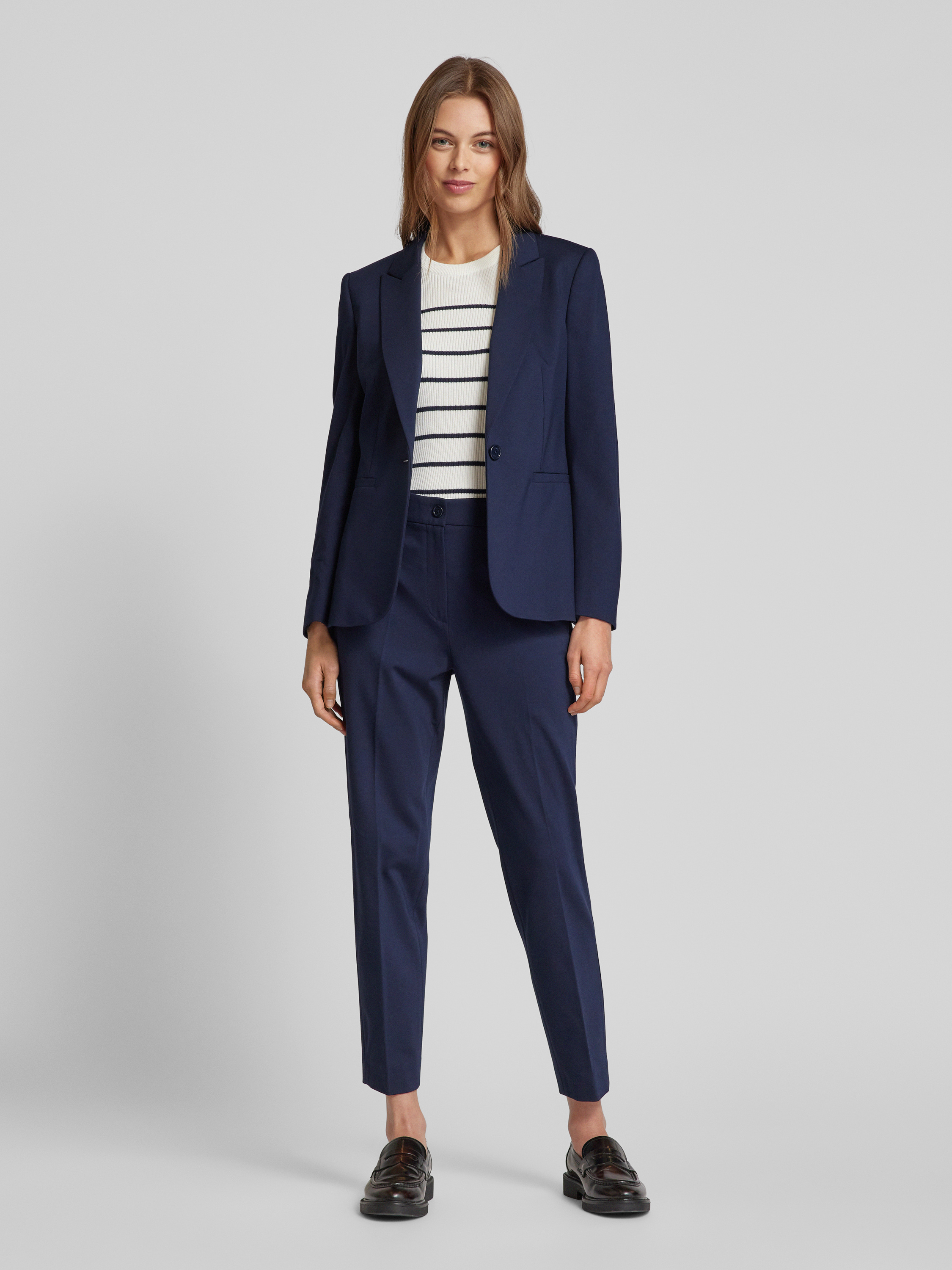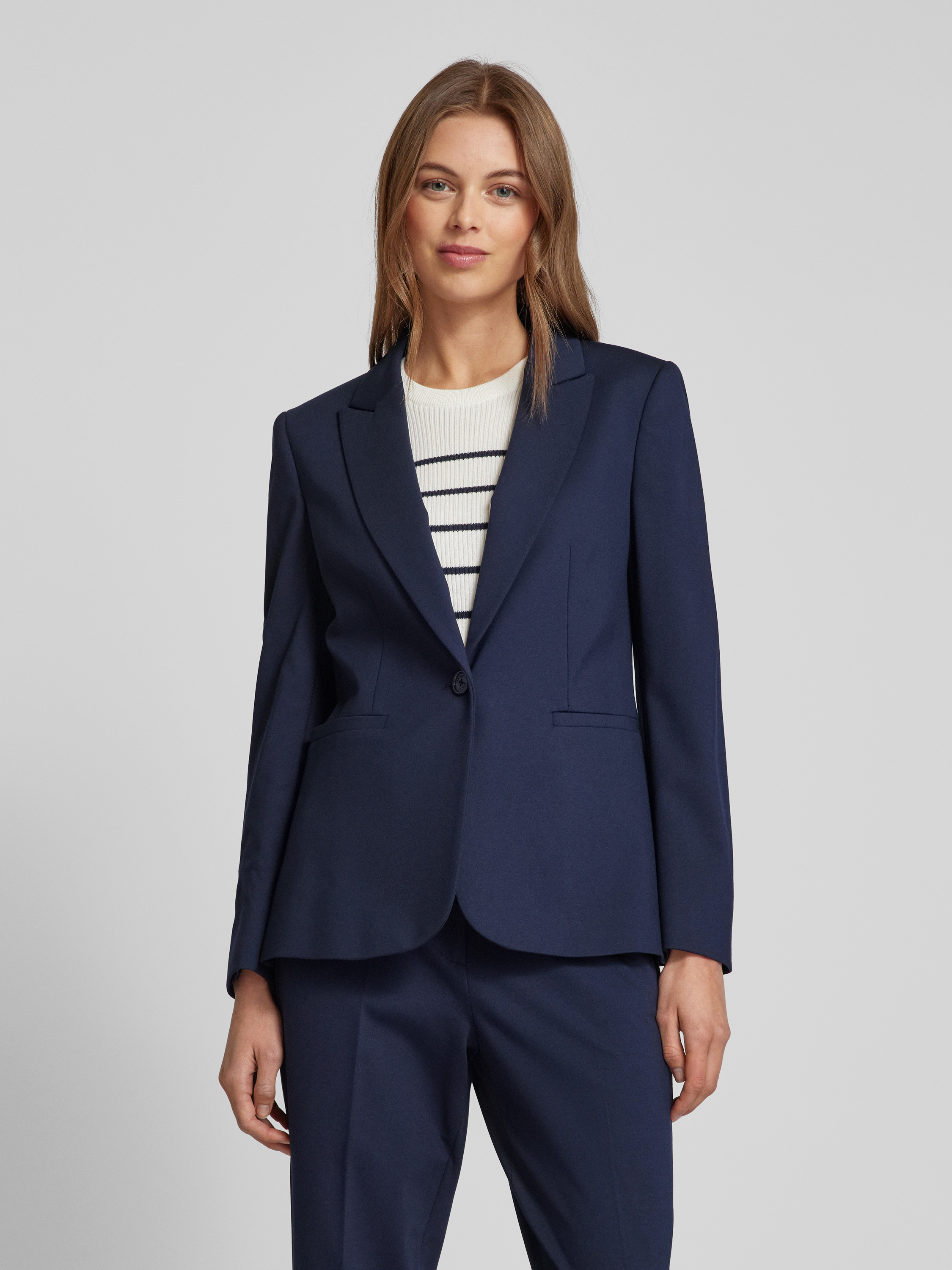 Der Damen Blazer von JOOP! aus einem Viskose-Mix mit Stretch-Anteil kombiniert eine körpernahe Passform mit einem klassischen Reverskragen, der vielseitig einsetzbar ist. Der Stoff schmiegt sich angenehm an den Körper an und sorgt für Bewegungsfreiheit. Ideal für formelle Anlässe oder Bürozeiten.