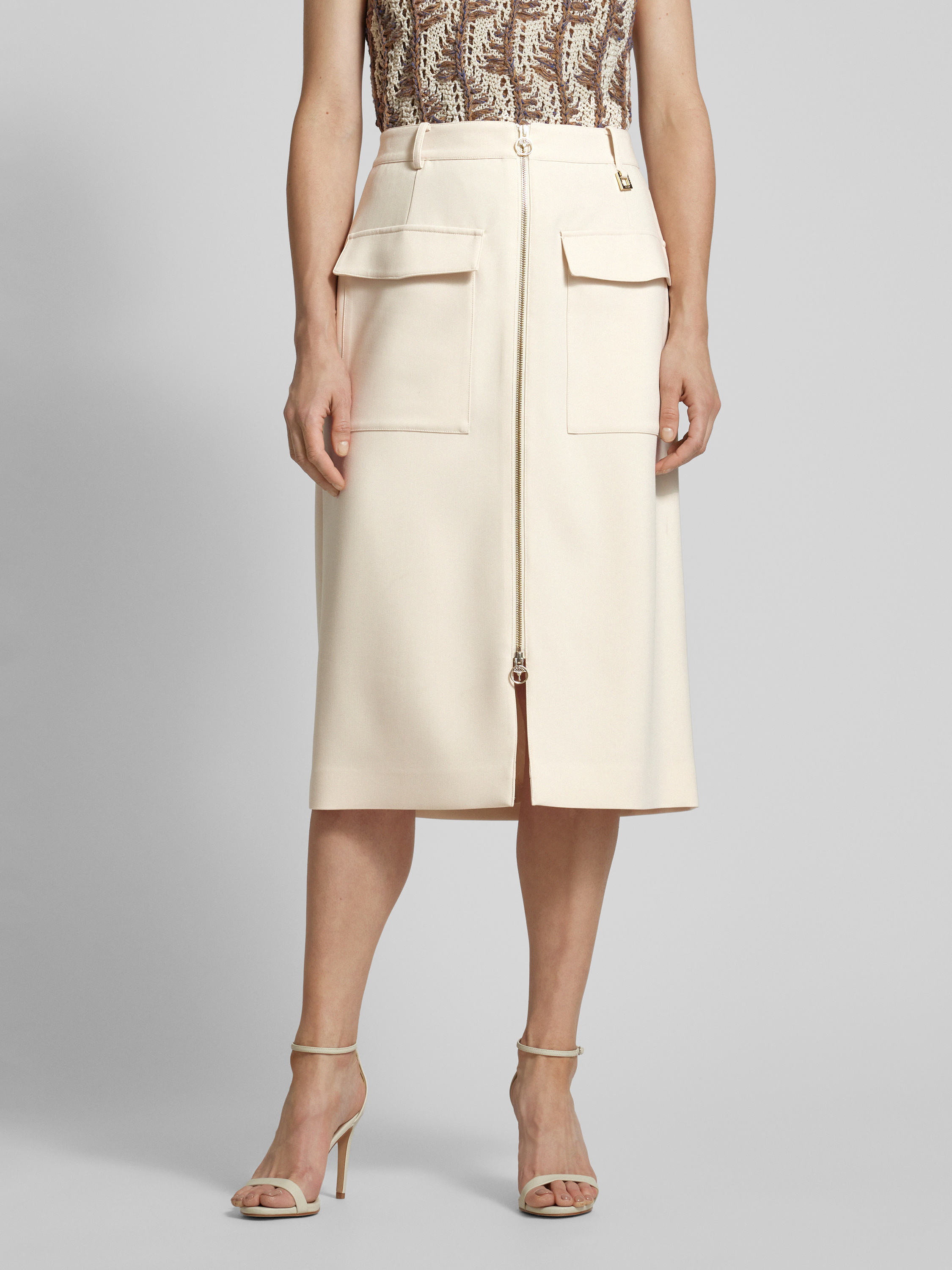 Der Midirock von JOOP! zeichnet sich durch seinen geraden Schnitt und den elastischen Material-Mix mit Viskose-Anteil aus, wodurch er sich angenehm an die Silhouette anschmiegt. Die praktischen Pattentaschen und Gürtelschlaufen ermöglichen vielseitige Kombinationsmöglichkeiten für einen stilvollen Auftritt im Alltag.