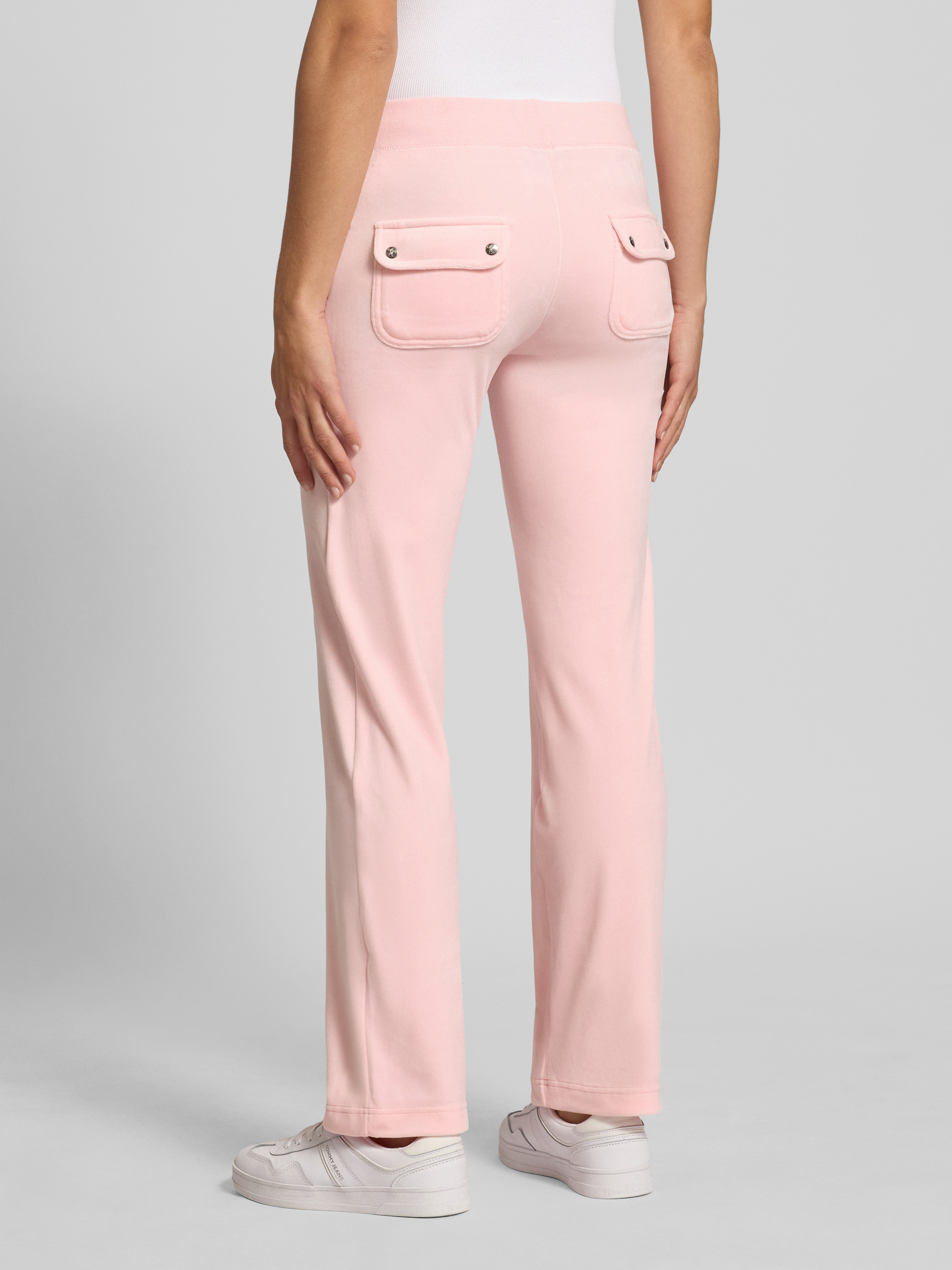 Die Damen Sweatpants von Juicy Couture überzeugt durch ihren lockeren Schnitt, der für angenehme Bewegungsfreiheit sorgt. Dank des Material-Mix mit Stretch-Anteil passt sich die Hose flexibel an, während ein elastischer Bund und praktische Taschen den Alltag unkompliziert gestalten. Dezentes Label-Stitching rundet das Design ab.