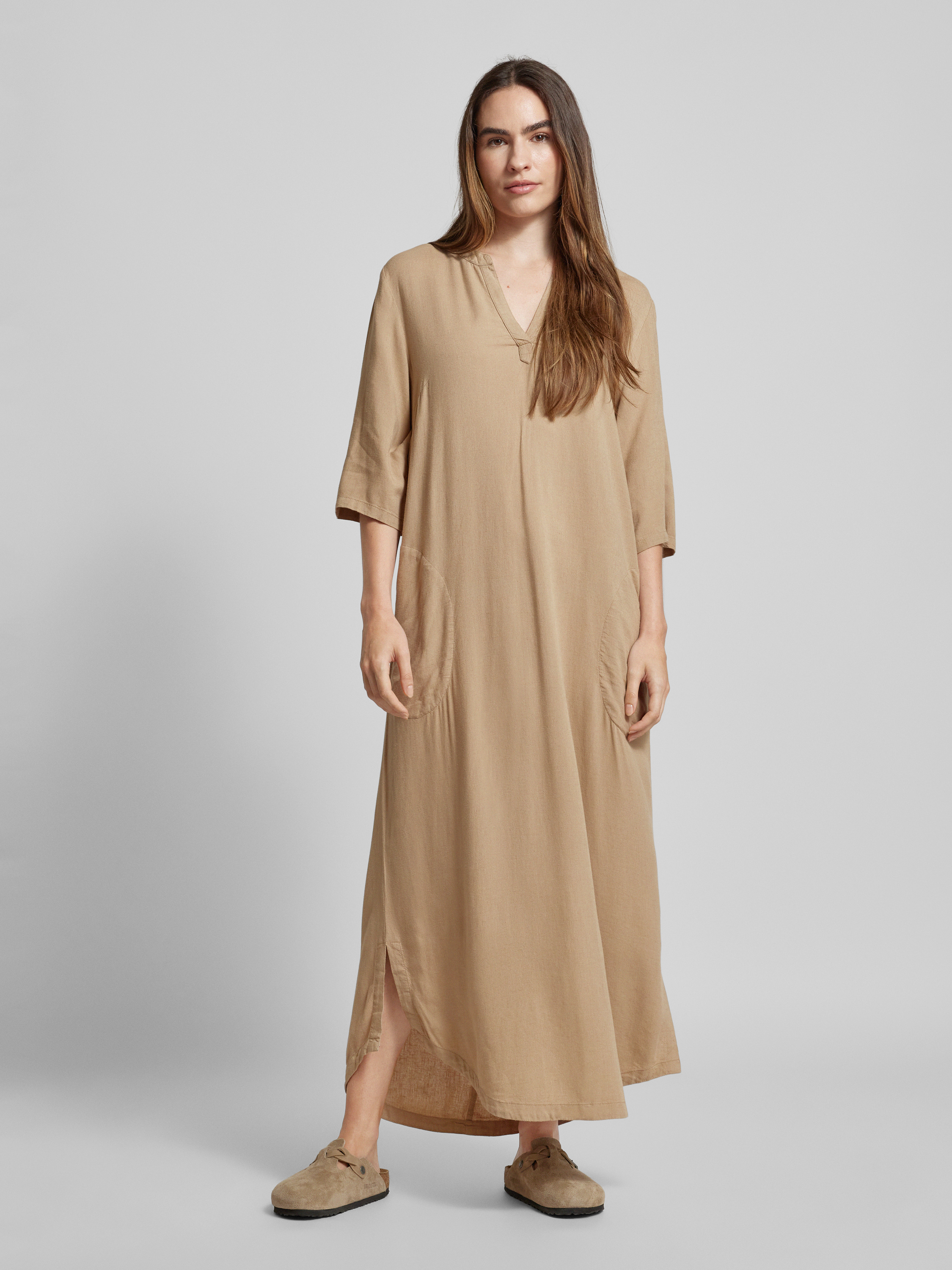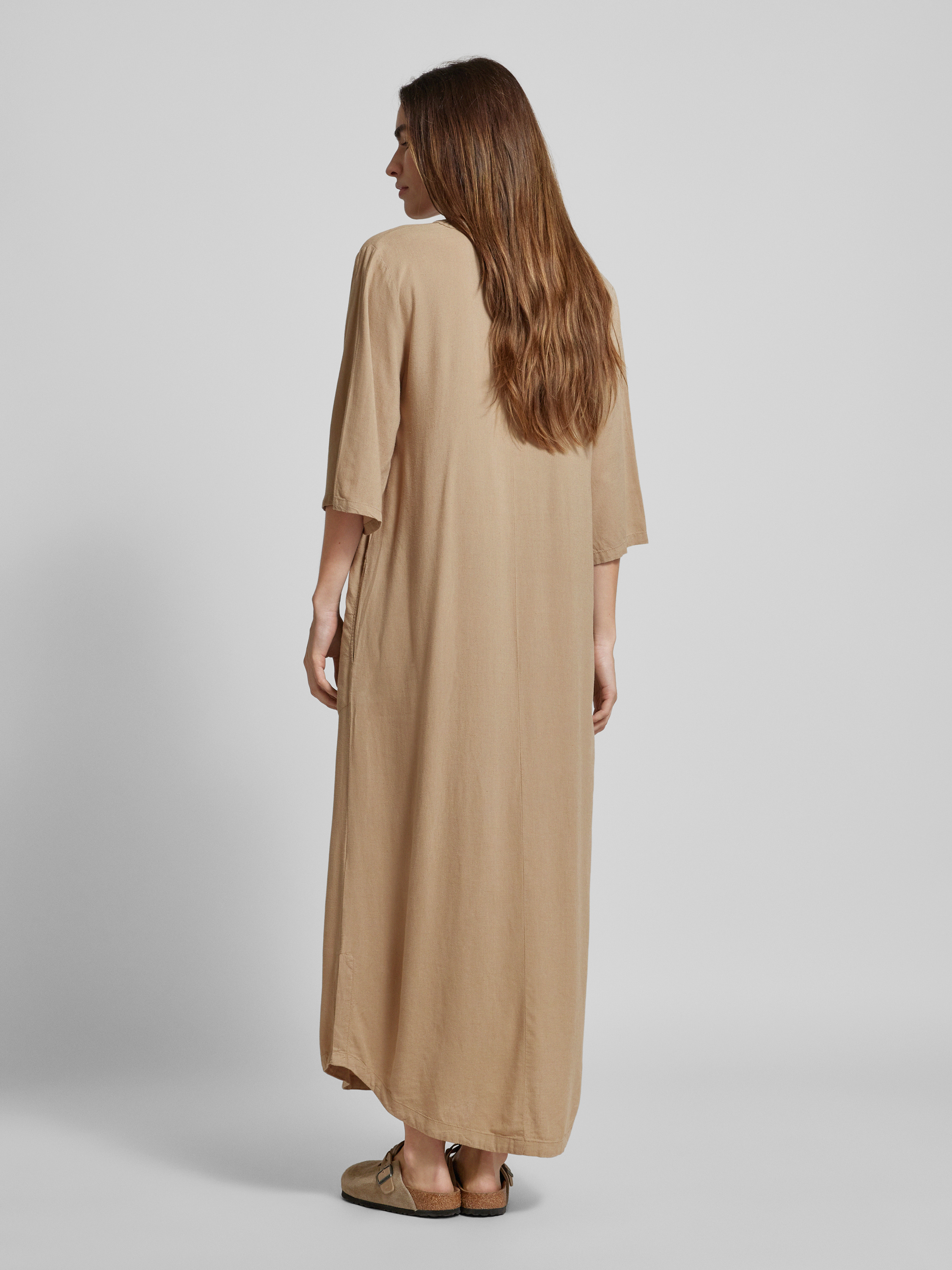 KaffeMidikleid aus Viskose-Leinen-Mix Modell 'milia' in taupe