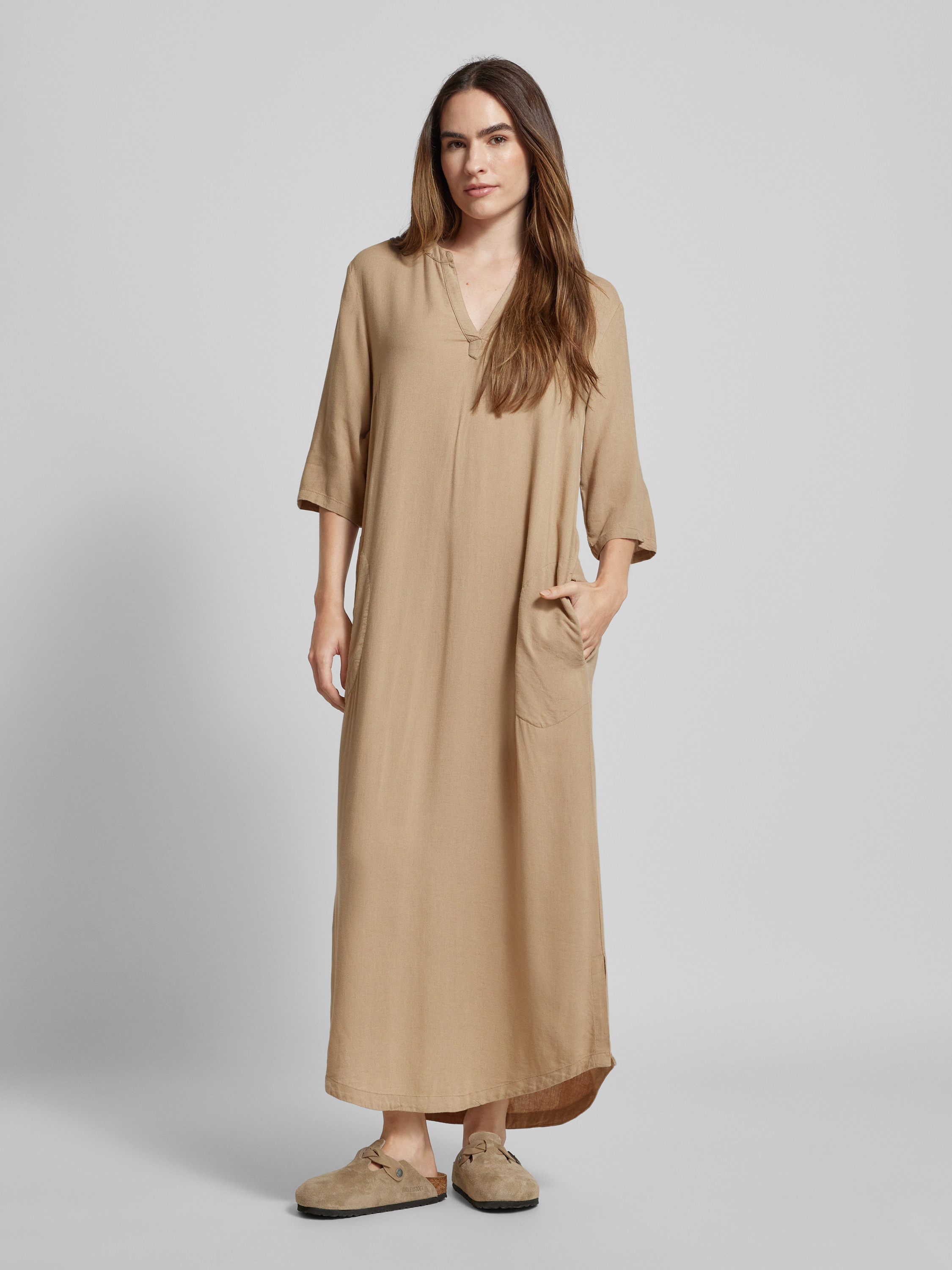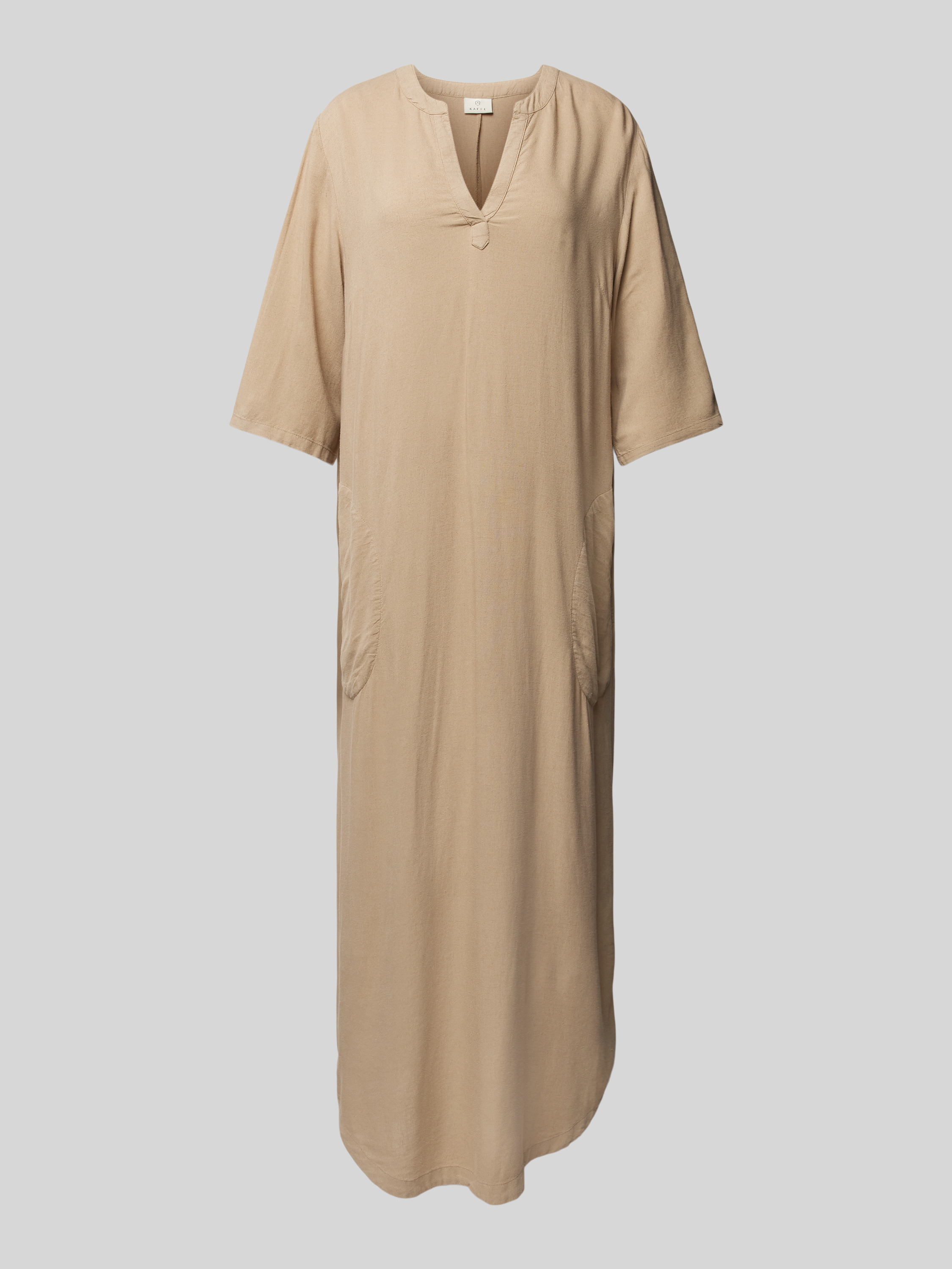 Das Midikleid 'milia' von Kaffe kombiniert einen Viskose-Leinen-Mix mit einem geraden Schnitt, der für angenehmen Tragekomfort sorgt. Der V-Ausschnitt verleiht ihm eine luftige Eleganz, während seitliche Eingrifftaschen praktische Funktionalität bieten. Ideal für entspannte Sommertage geeignet.