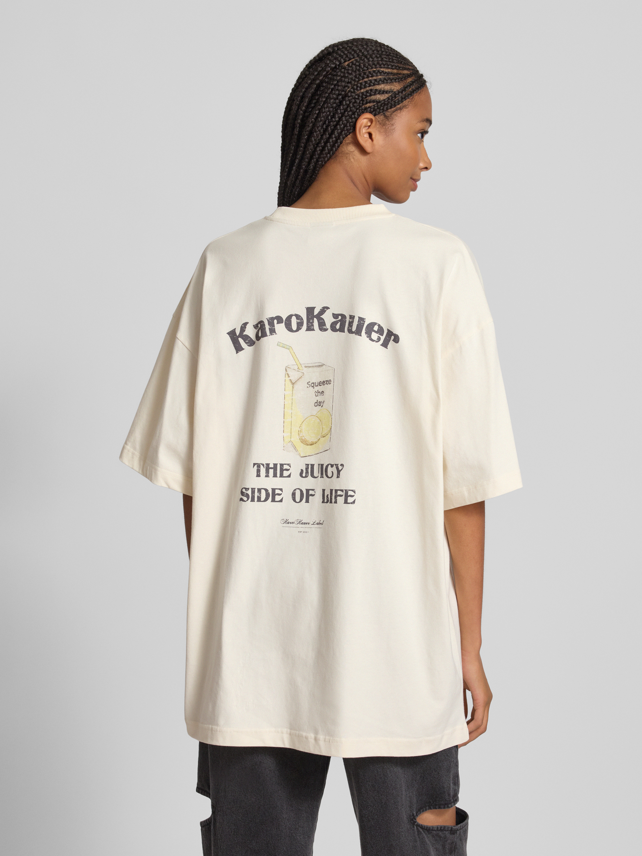 Karo KauerOversized T-Shirt mit Label-Print in offwhite