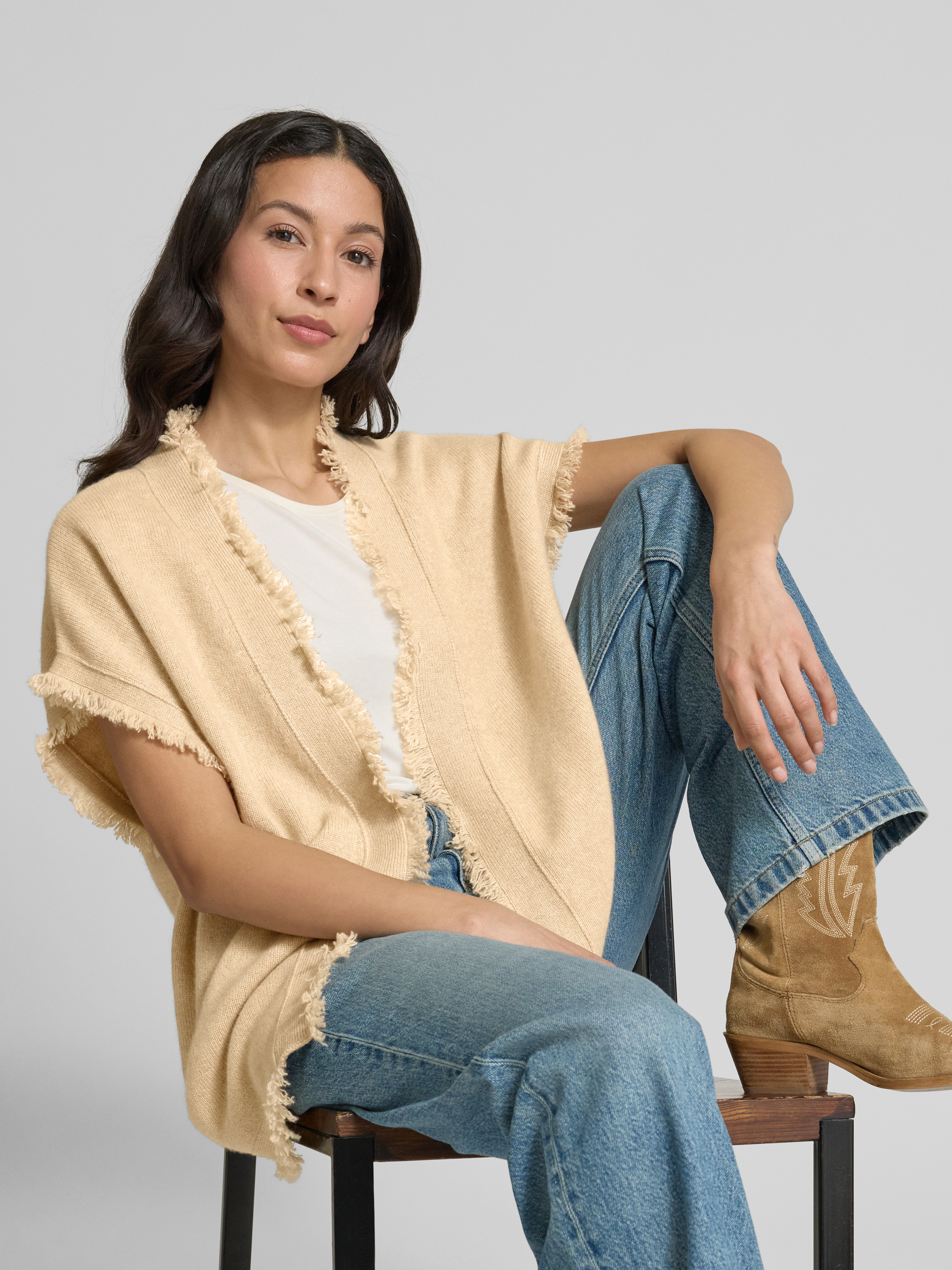 KujtenCardigan mit Ausfransugen Modell 'NESSA' in beige