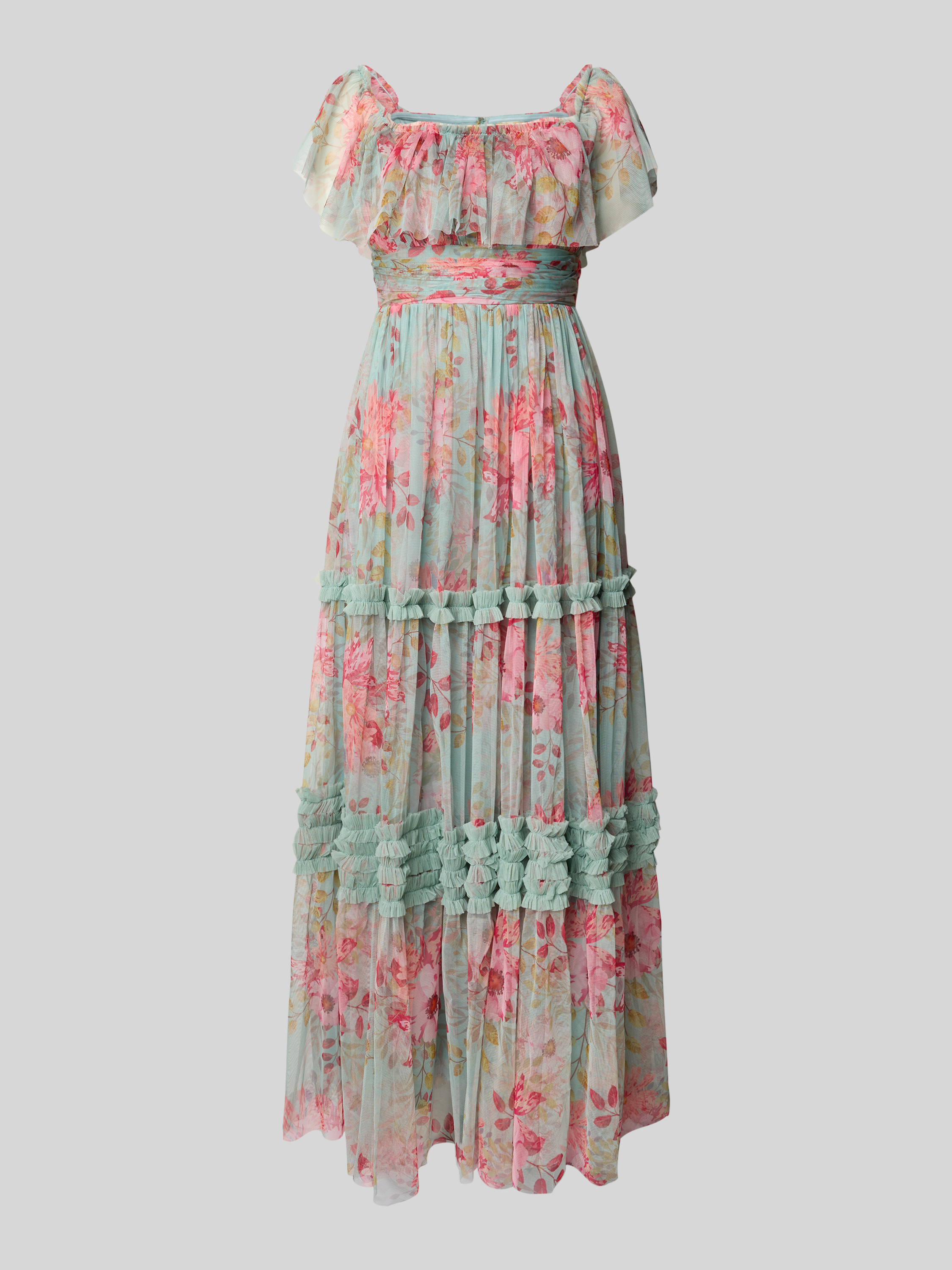 Das elegante Abendkleid von LACE & BEADS vereint Tüll und einen taillierten Schnitt zu einem harmonischen Maxikleid. Der raffinierte Stufen-Look ergänzt den charmanten Karree-Ausschnitt, der subtil die feminine Silhouette betont und sich ideal für festliche Anlässe eignet.