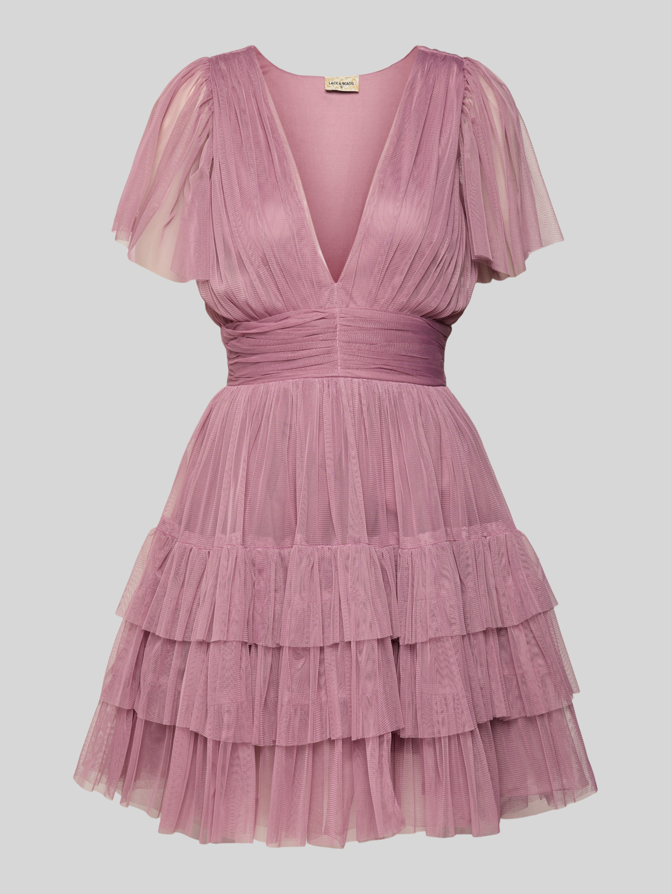 LACE & BEADSCocktailkleid im Stufen-Look mit V-Ausschnitt in rose