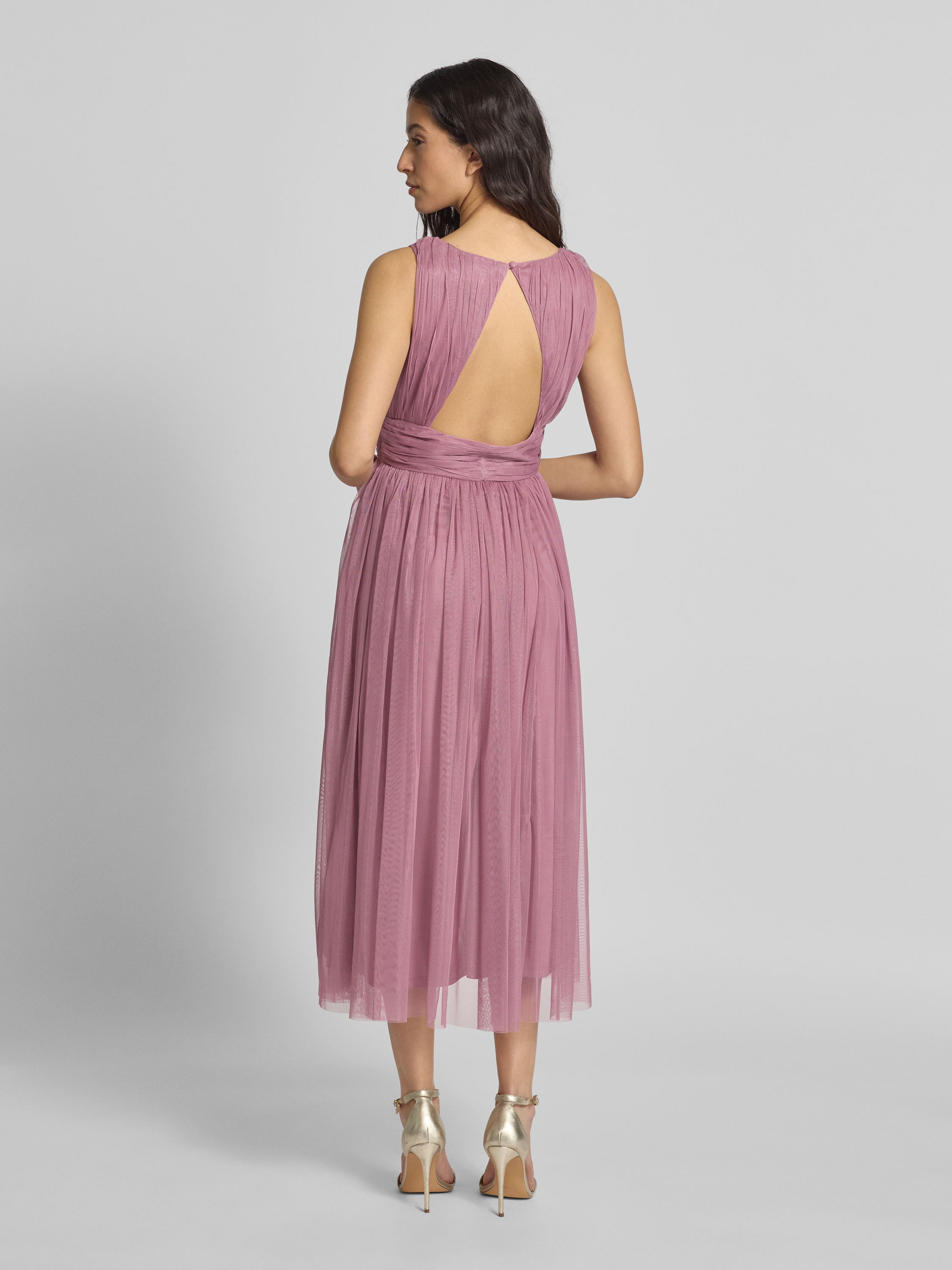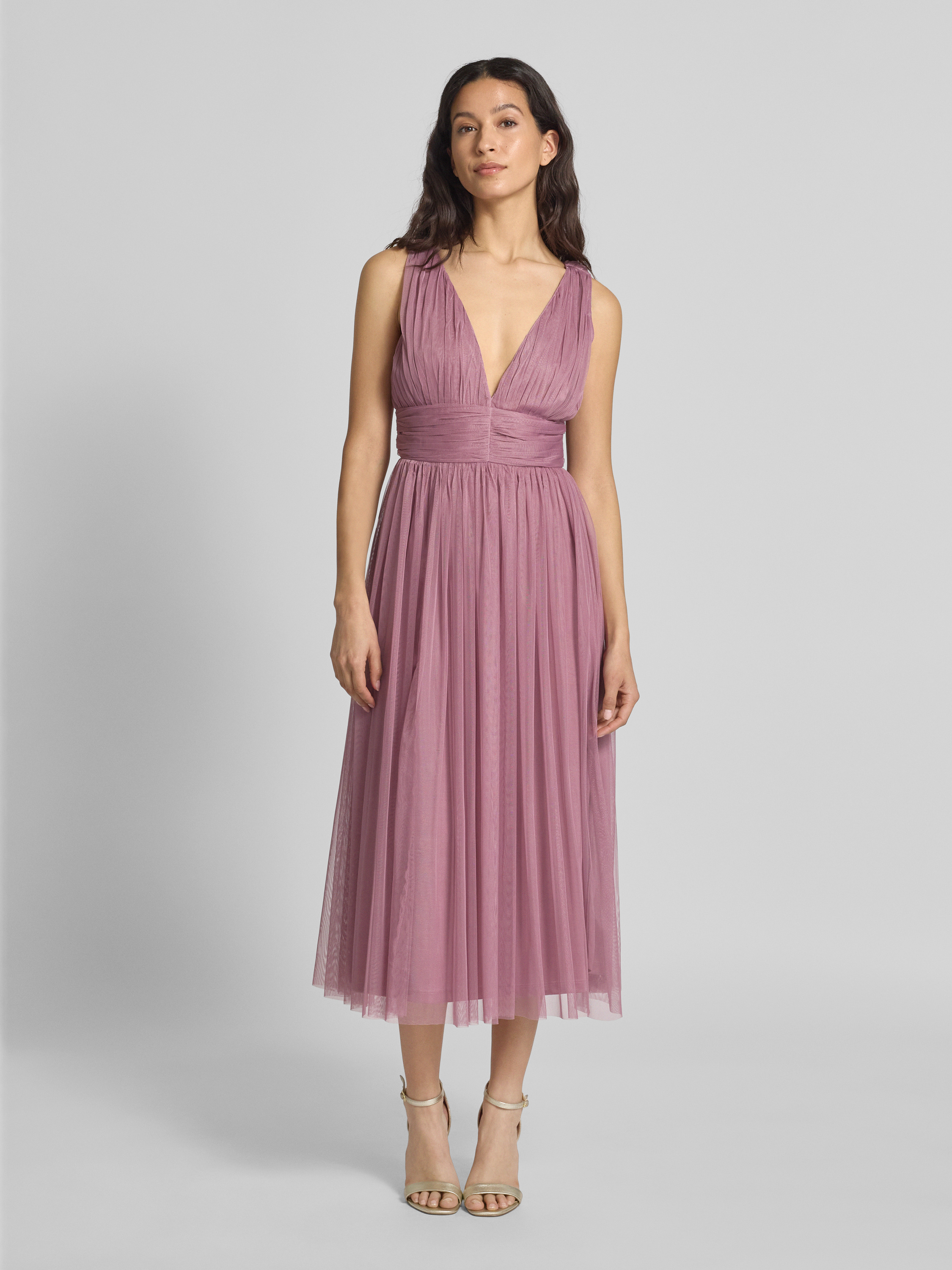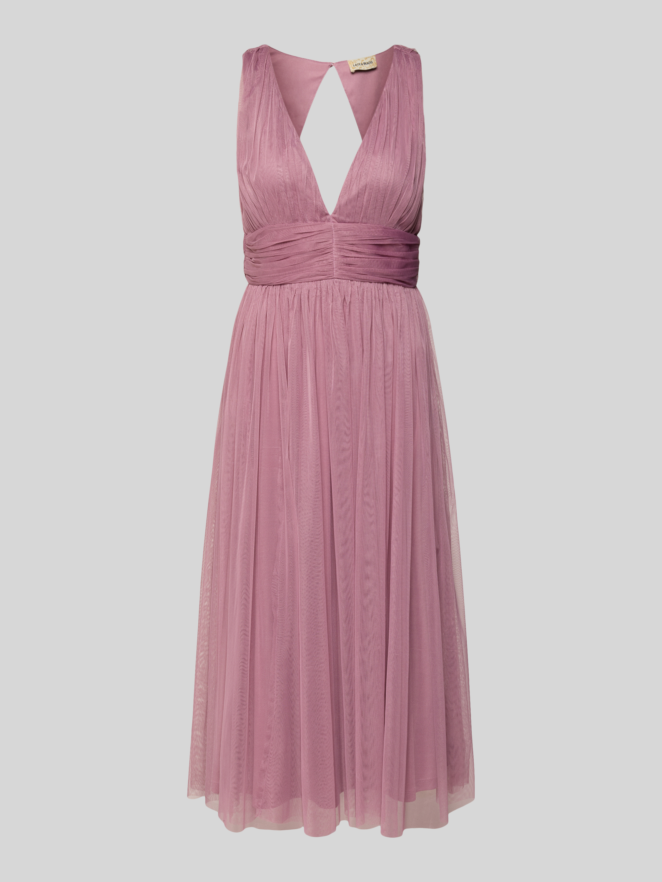 Das Cocktailkleid von Lace & Beads verleiht durch den taillierten Schnitt und das zarte Taillenband eine feminine Silhouette. Der fließende Tüll und der elegante V-Ausschnitt sorgen für einen stilvollen Auftritt. Das Midikleid eignet sich ideal für festliche Anlässe.