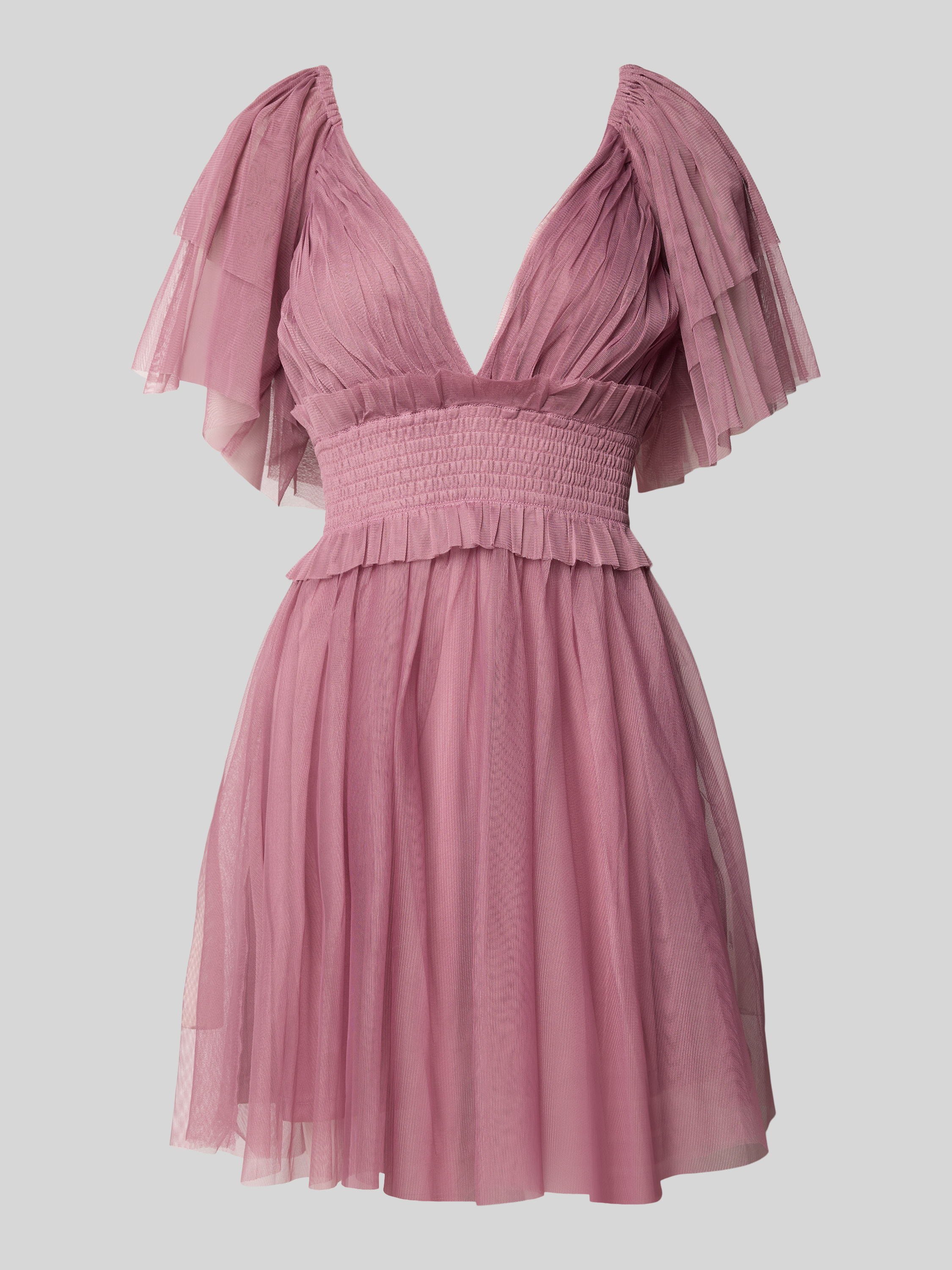 Das elegante Cocktailkleid von Lace & Beads, gefertigt aus zartem Tüll, eignet sich ideal für besondere Anlässe. Der V-Ausschnitt und das Taillenband betonen die Silhouette, während der taillierte Schnitt für eine schmeichelhafte Passform sorgt. Als Minikleid strahlt es moderne Leichtigkeit aus.