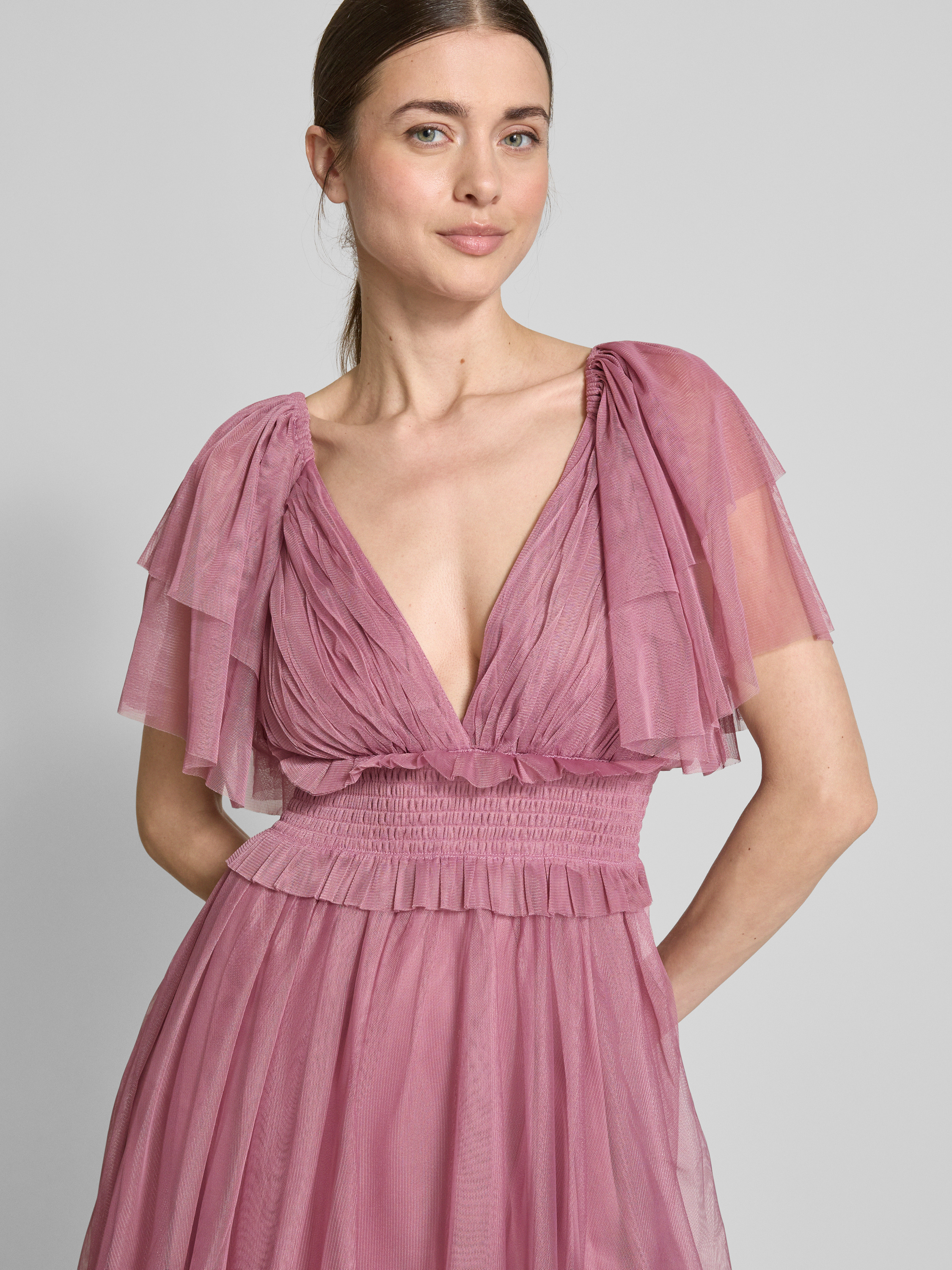 LACE & BEADSCocktailkleid mit V-Ausschnitt und Taillenband in rose