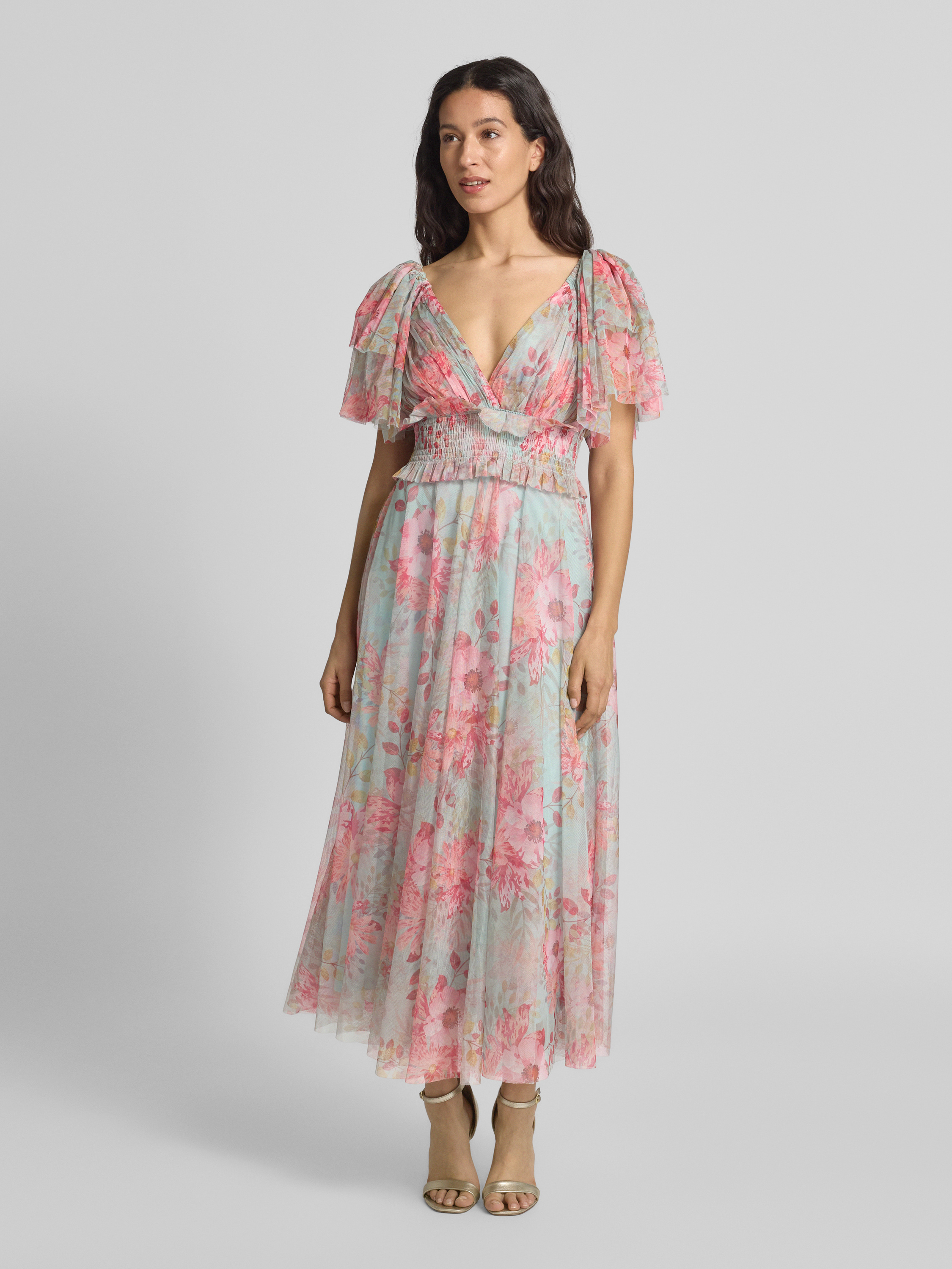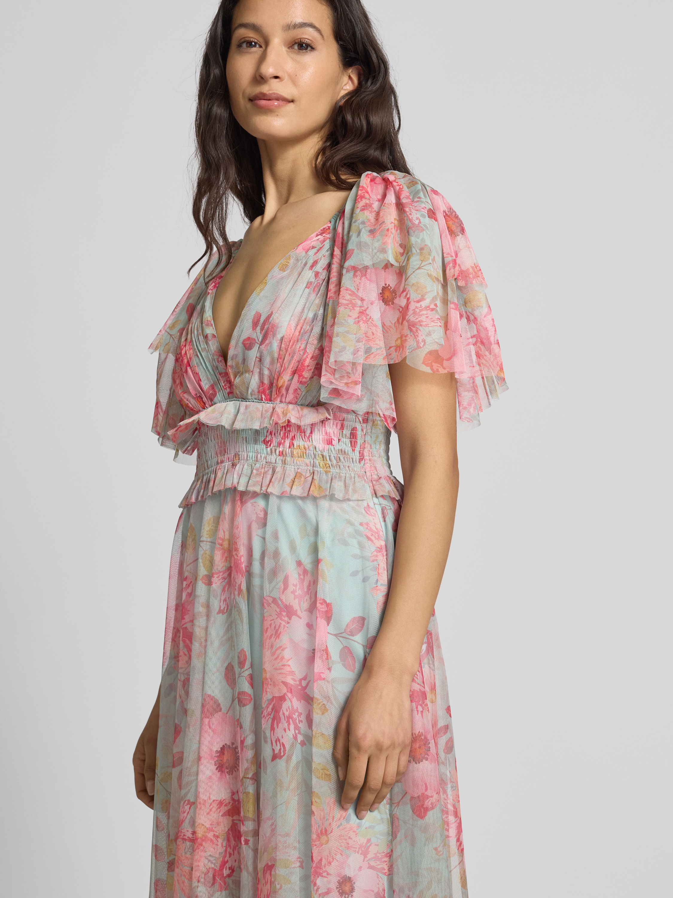 Das knielange Cocktailkleid von Lace & Beads kombiniert Tüll mit einem taillierten Schnitt, der eine schmeichelhafte Silhouette schafft. Der V-Ausschnitt und das elastische Taillenband verleihen dem Kleid eine elegante Note, während die knielange Passform vielseitig für verschiedene Anlässe geeignet ist.