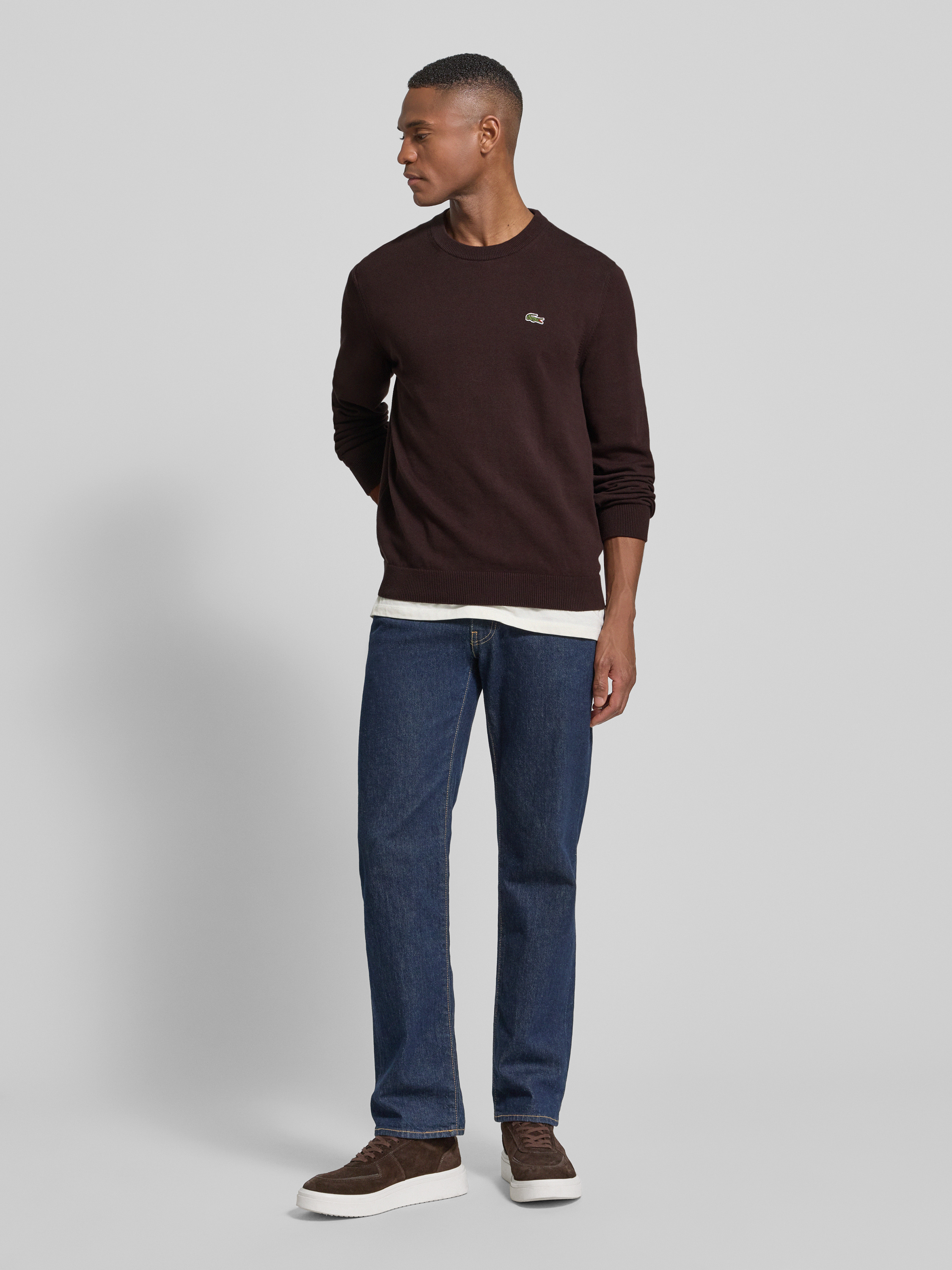LacosteRegular Fit Strickpullover aus Baumwoll-Mix in dunkelbraun