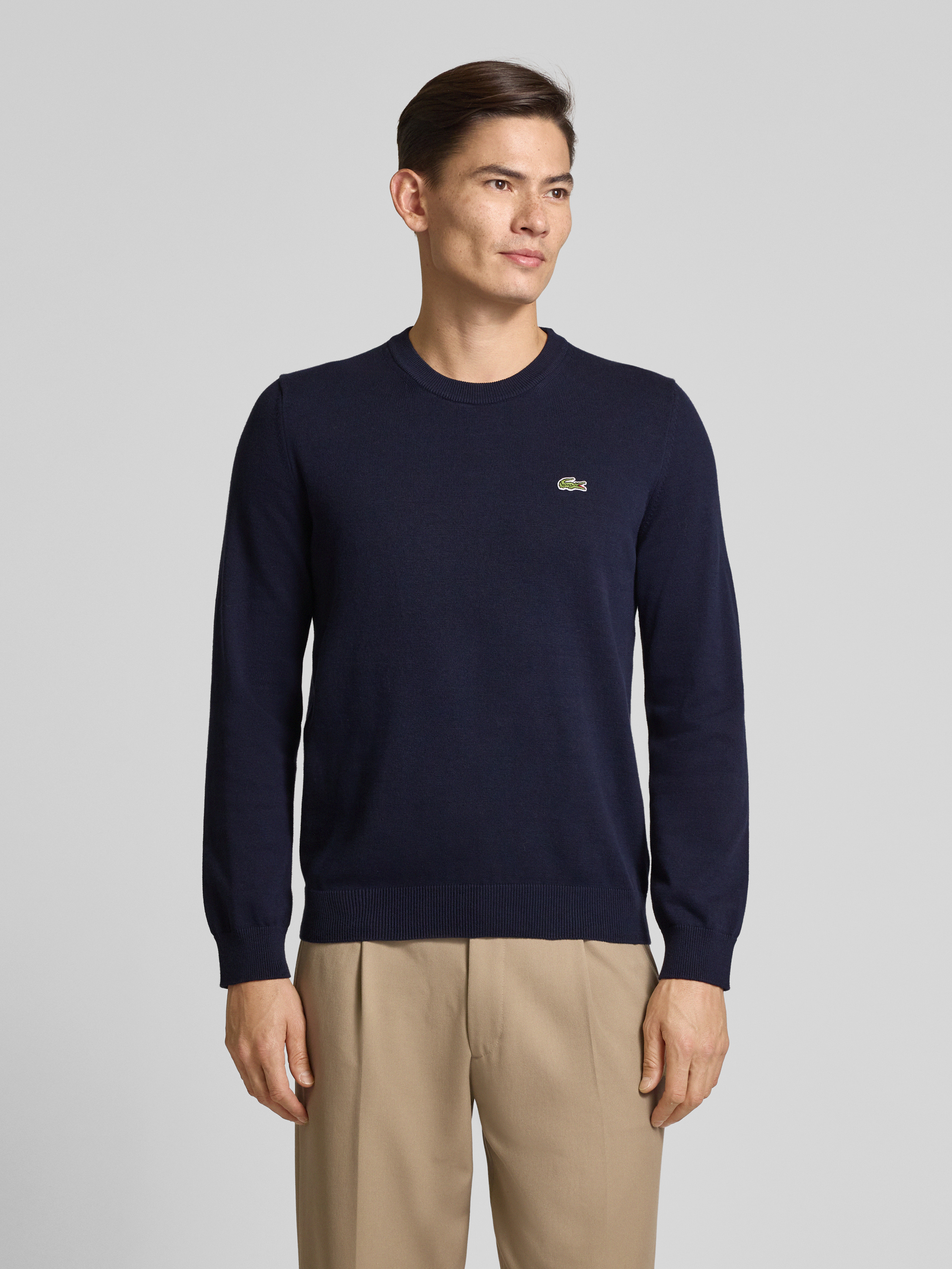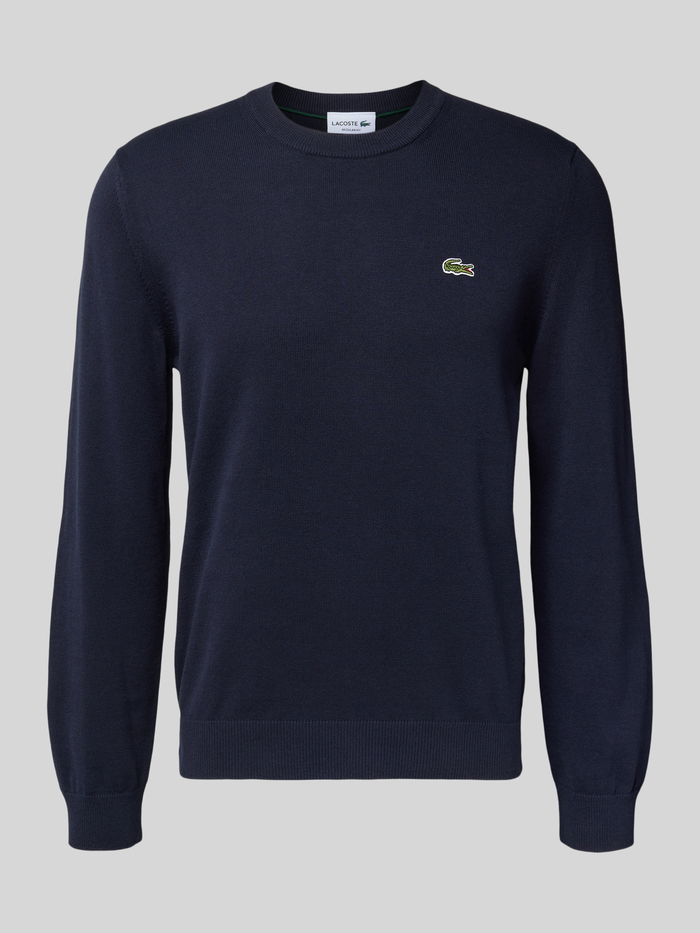 Der Herren Strickpullover von Lacoste zeigt sich in klassischer Regular-Fit Passform und sorgt durch den Baumwoll-Mix für ein angenehmes Tragegefühl. Unifarben gehalten und mit Label-Patch am Saum, lässt sich das Modell vielseitig kombinieren. Durch den Rundhals und langen Ärmel eignet sich der Strickpullover für zahlreiche Gelegenheiten.