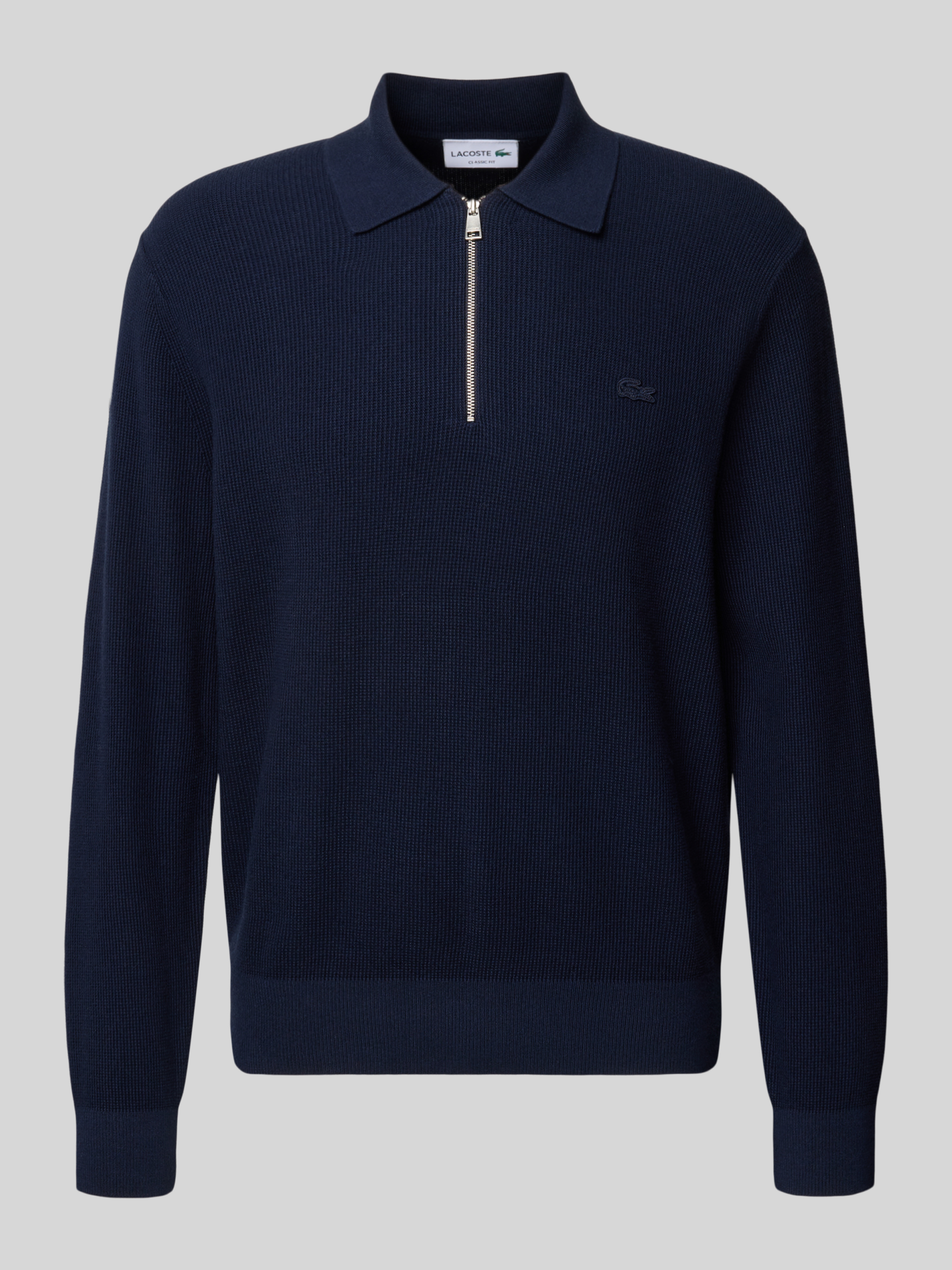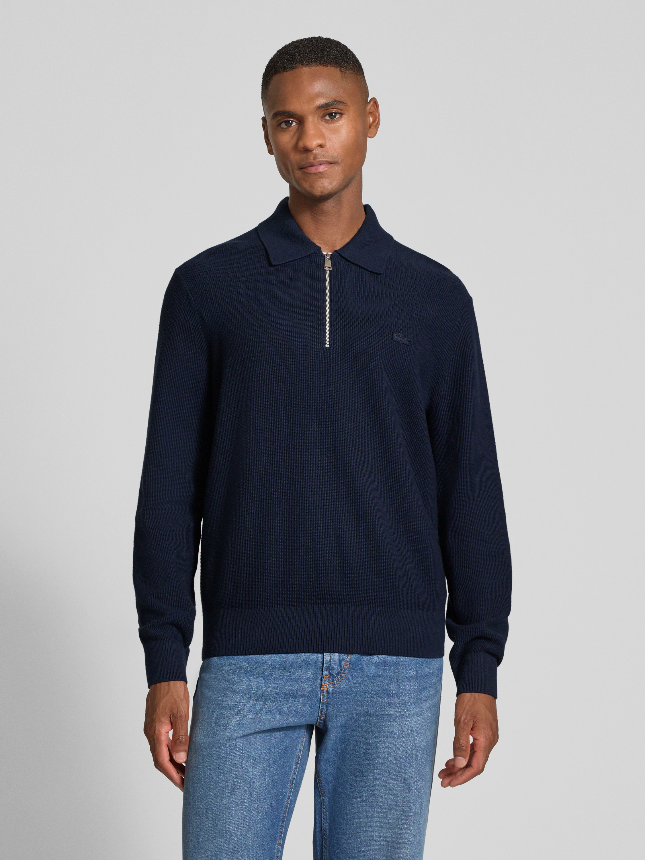 Der Herrenpullover von Lacoste zeigt sich im Regular Fit und sorgt durch die Waffelstruktur für einen dezenten Akzent im Alltag. Dank des Baumwoll-Woll-Mix fühlt sich das Material angenehm auf der Haut an. Der klassische Polokragen verleiht dem Look eine sportliche Note.