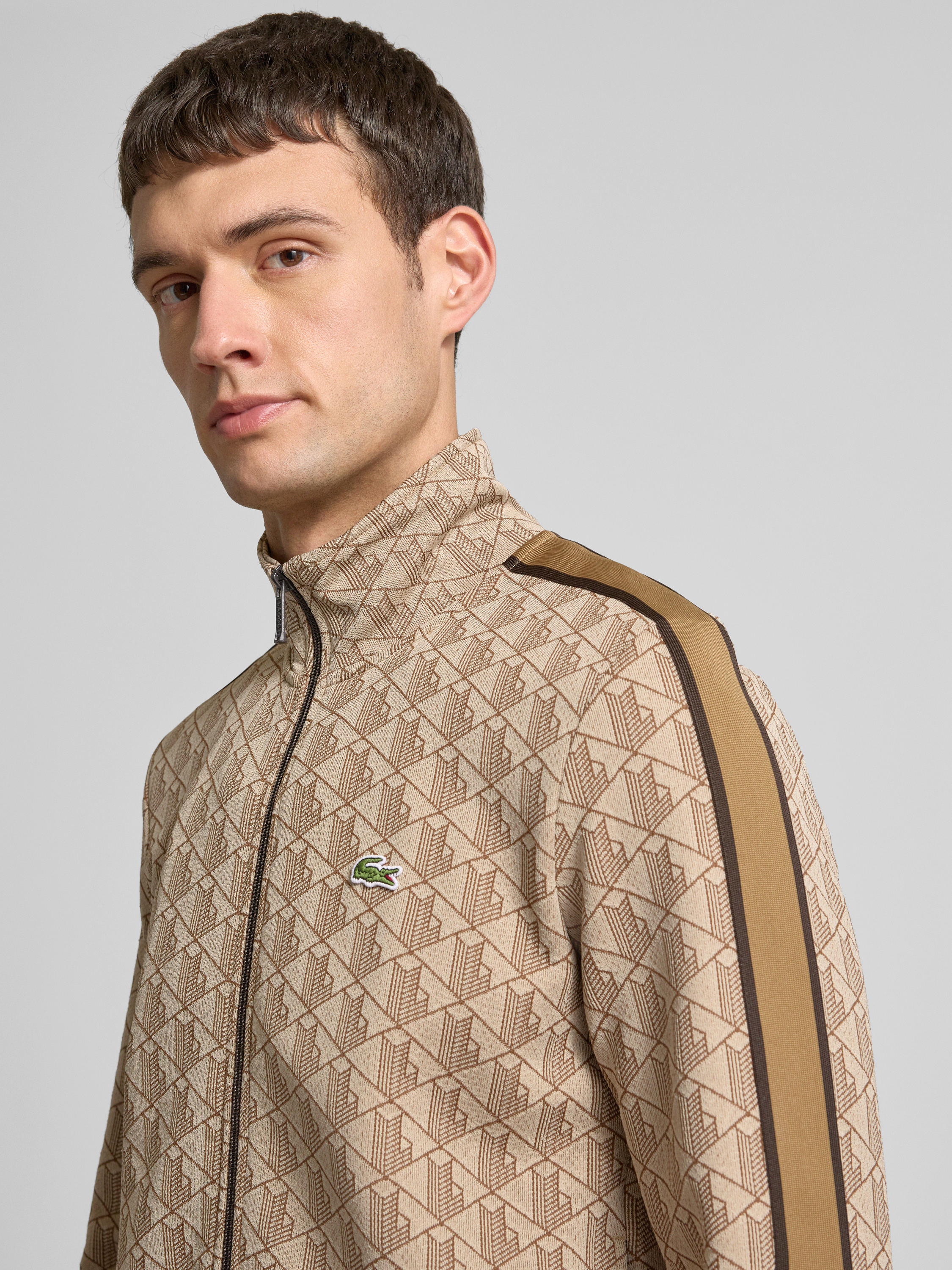 Die Herren Sweatjacke von Lacoste zeigt durch das Logo-Muster und die Kontraststreifen eine moderne Optik, die Abwechslung in den Alltag bringt. Dank des Regular Fit fällt die Jacke angenehm bequem und eignet sich für unterschiedliche Aktivitäten. Der Baumwoll-Anteil sorgt für ein weiches Tragegefühl.