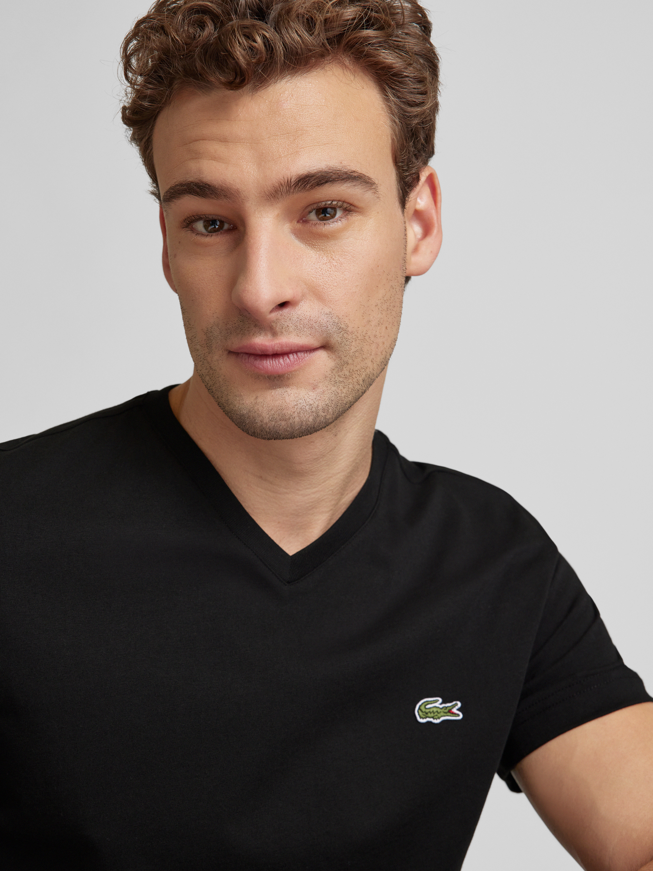 Das T-Shirt von Lacoste, Modell 'Basic', vereint schlichte Eleganz mit hochwertiger Verarbeitung. Gefertigt aus reiner Baumwolle, bietet es ein angenehmes Tragegefühl und eine körpernahe Passform. Der dezente V-Ausschnitt und das Label-Stitching verleihen dem Kleidungsstück eine subtile Raffinesse.