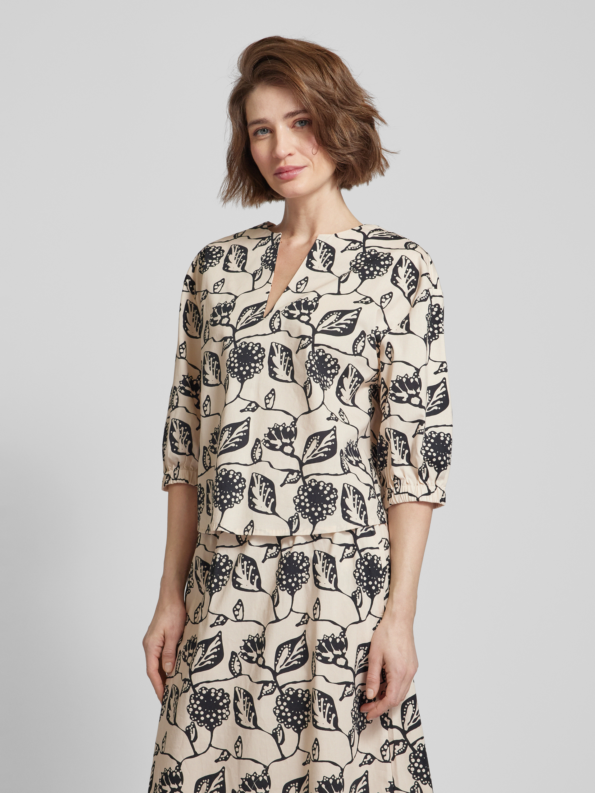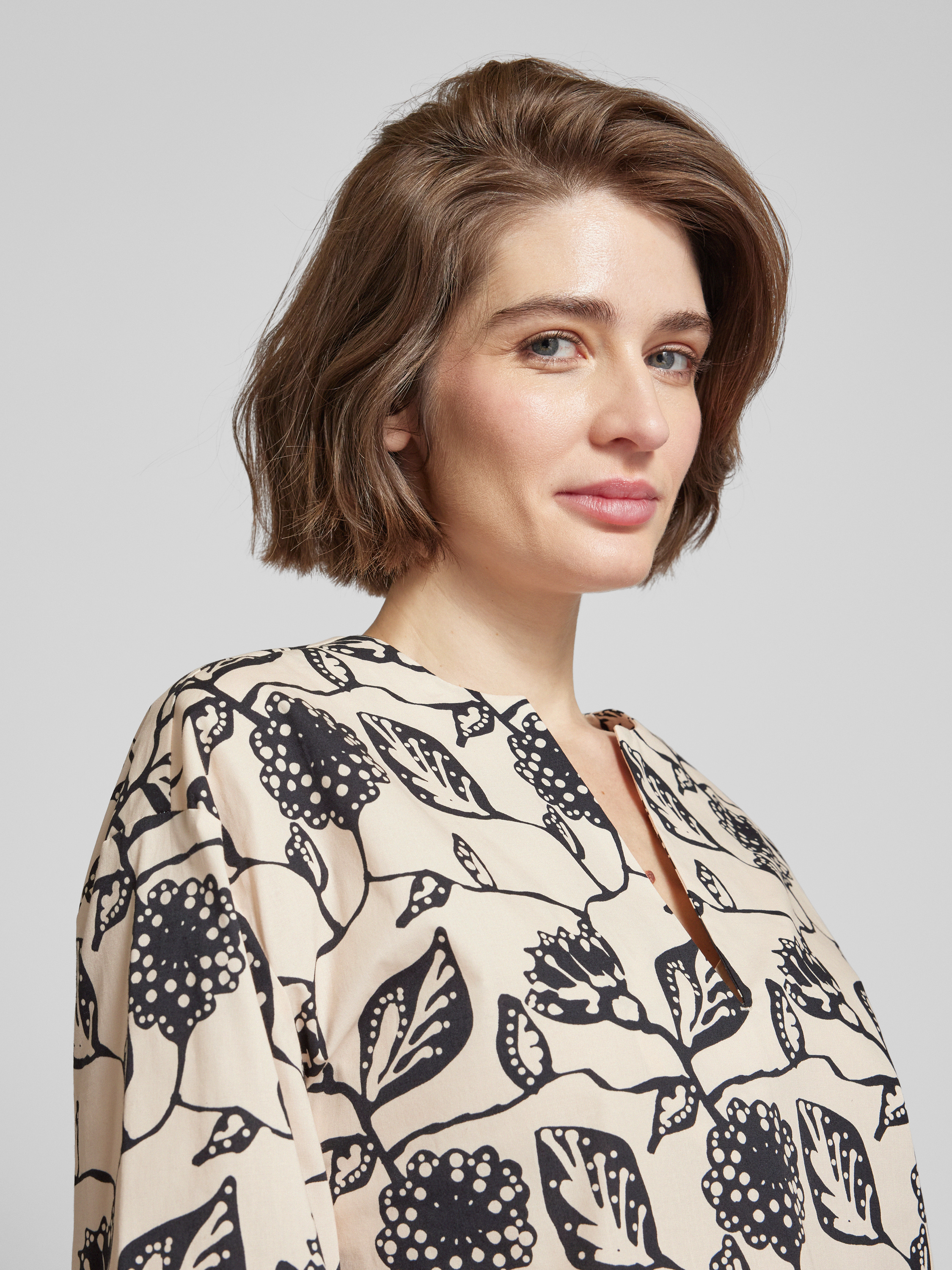 Die Damen Bluse von Lanius, gefertigt aus einem Baumwoll-Elasthan-Mix, zeichnet sich durch ihren lockeren Schnitt und einen dezenten V-Ausschnitt aus. Der florale Print verleiht ihr eine frische Note, während die 3/4-Ärmel mit elastischen Abschlüssen für zusätzlichen Komfort sorgen. Dieses Kleidungsstück eignet sich ideal für legere Anlässe.