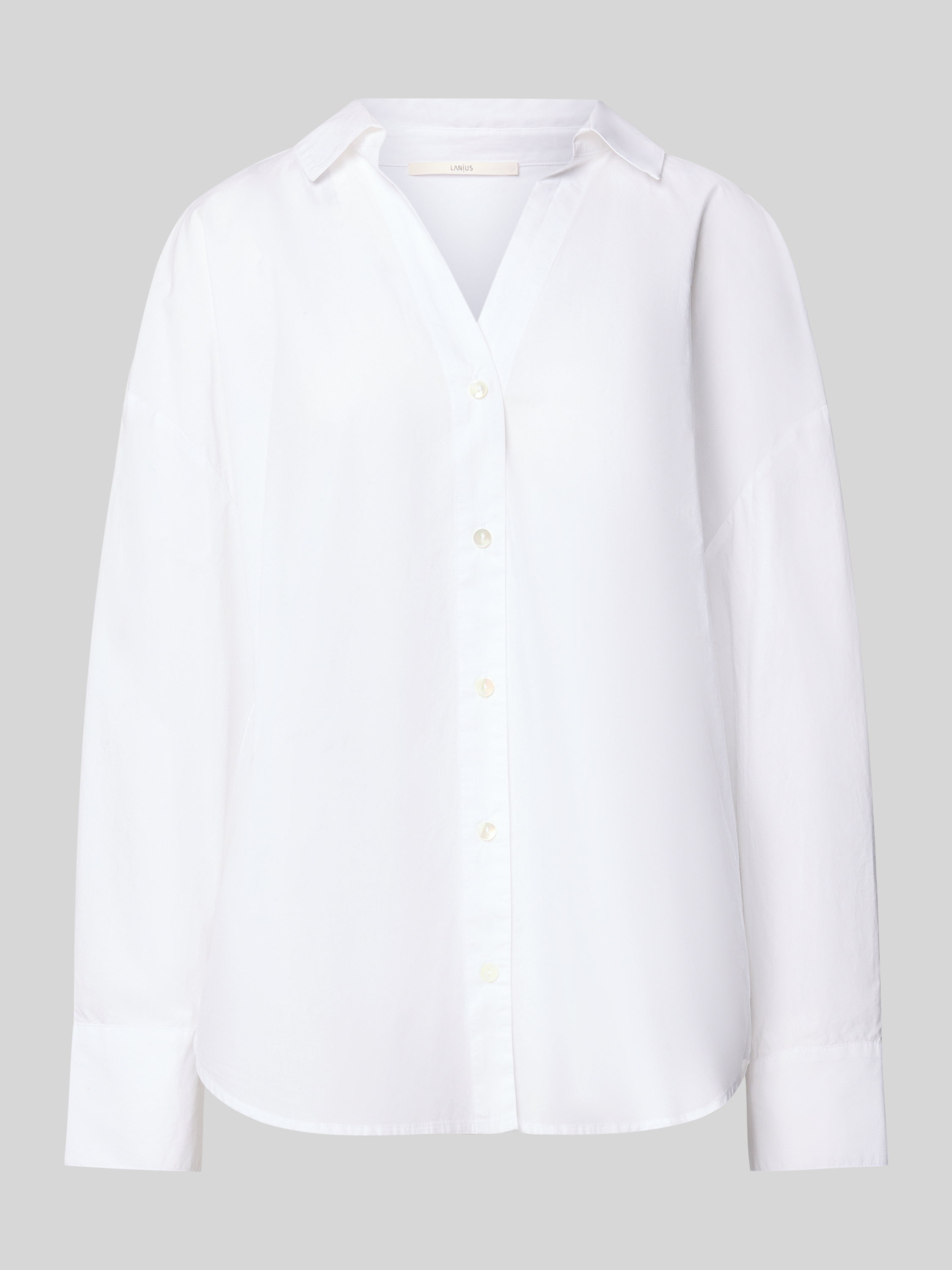 Die Oversized Hemdbluse mit Sportmanschetten von Lanius aus reiner Baumwolle fällt locker und lässt Bewegungsfreiheit zu. Durch den klassischen Hemdblusenkragen und die überschnittenen Schultern entsteht eine entspannte Silhouette, die vielseitig kombinierbar bleibt. Sportmanschetten und abgerundeter Saum runden das Gesamtbild funktional ab.