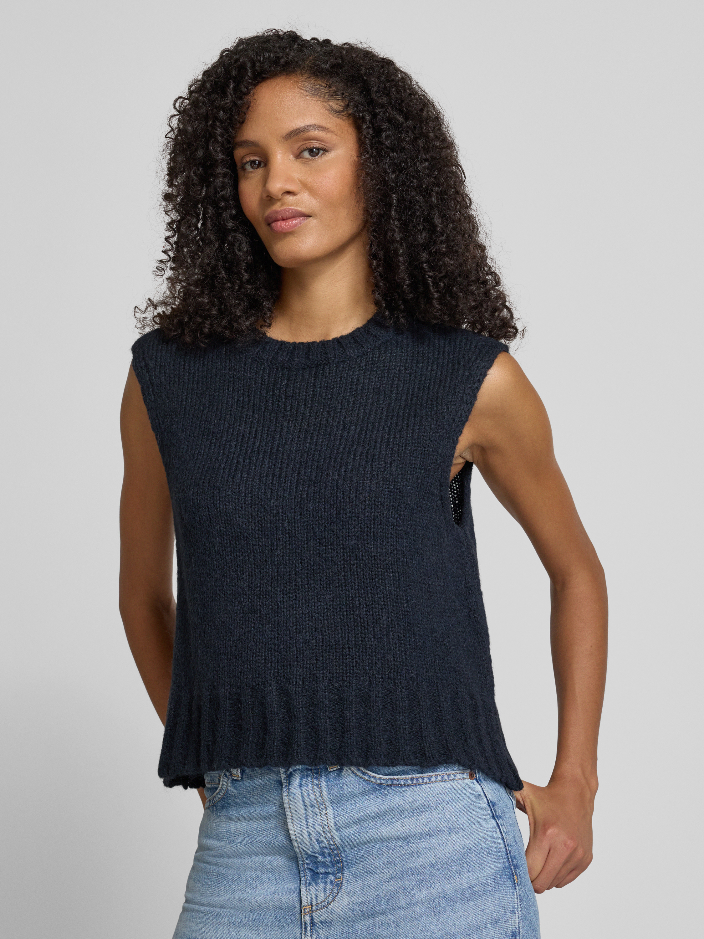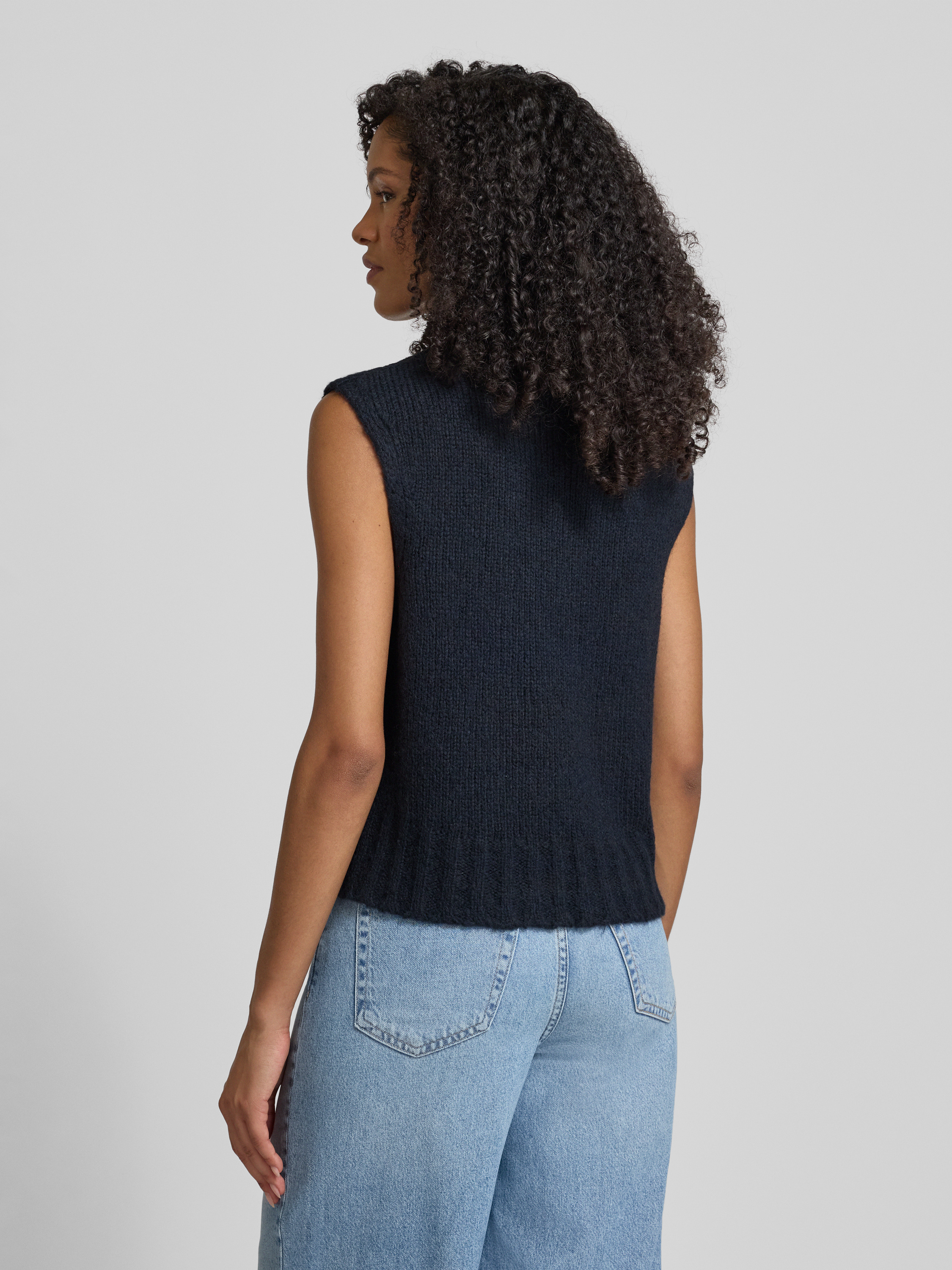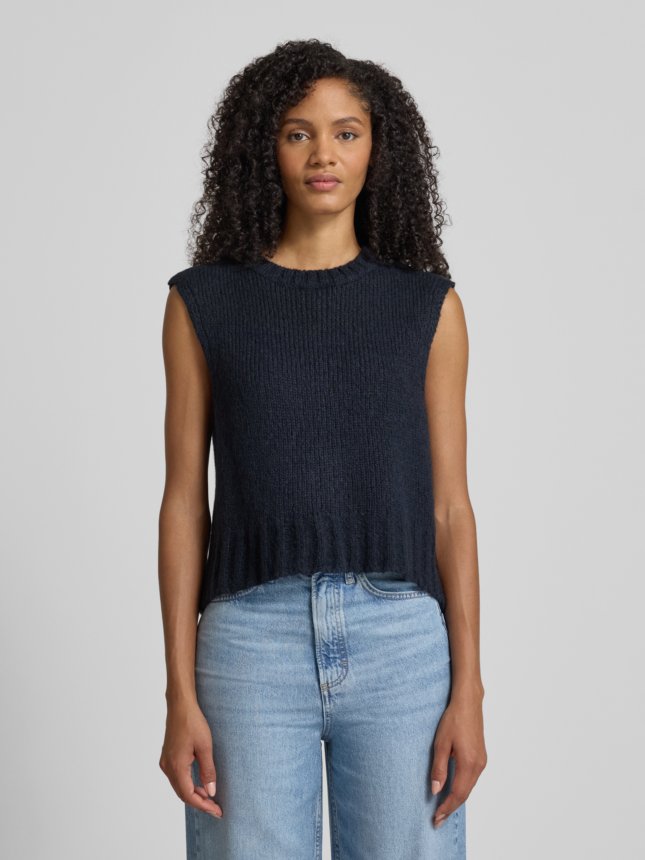 Der Damen Pullunder von Lanius kombiniert einen angenehm leichten Alpaka-Mix mit einem Anteil an Schurwolle, wodurch ein weiches Tragegefühl entsteht. Durch den geraden Schnitt liegt er locker an und passt sich vielseitigen Outfits an. Ein klassischer Rundhalsausschnitt rundet das Design ab.