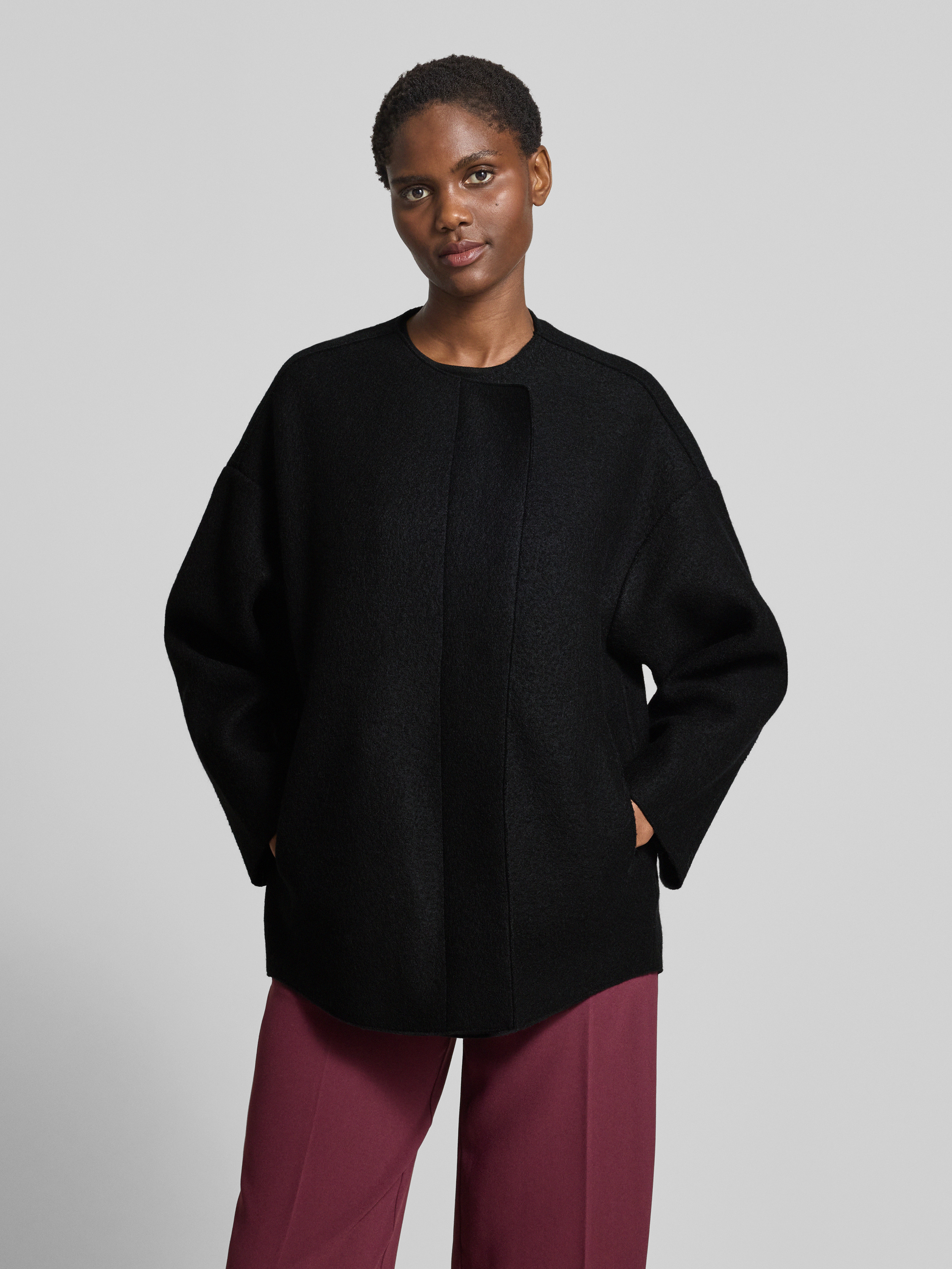 Die Damen Wolljacke von Lanius aus reiner Schurwolle fällt durch ihren lockeren Schnitt und die weiten Ärmel angenehm auf. Dank des klassischen Rundhalsausschnitts lässt sie sich vielseitig kombinieren. So entsteht ein komfortables Tragegefühl, das den Alltag entspannt begleitet.