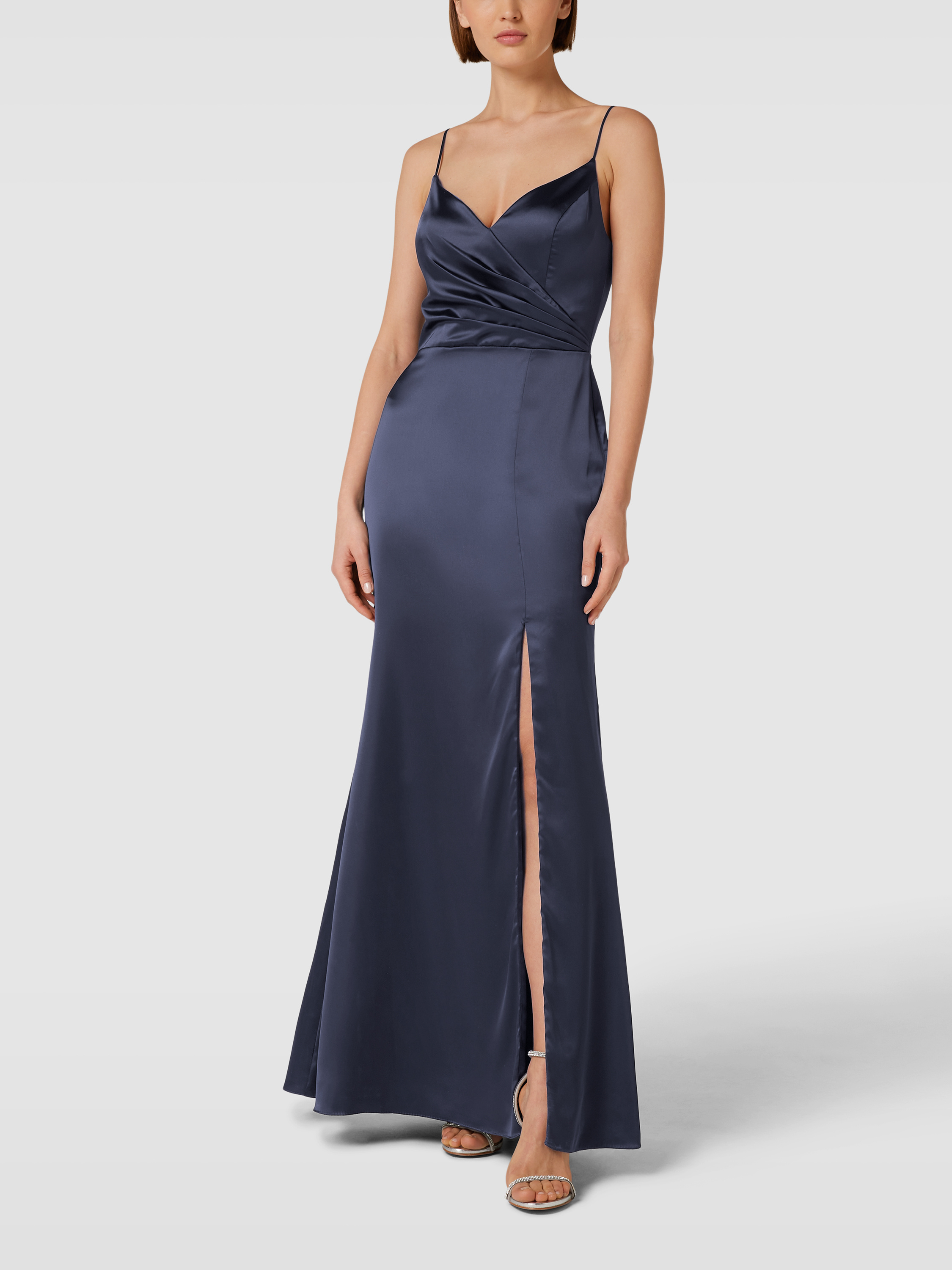 Das Abendkleid von LAONA vereint Eleganz mit einem Hauch von Raffinesse. Der herzförmige Ausschnitt und die Spaghettiträger betonen geschickt die Silhouette, während das Satinmaterial für einen fließenden Fall sorgt. Ein hoher Seitenschlitz verleiht dem Kleid Dynamik und Bewegungsfreiheit.