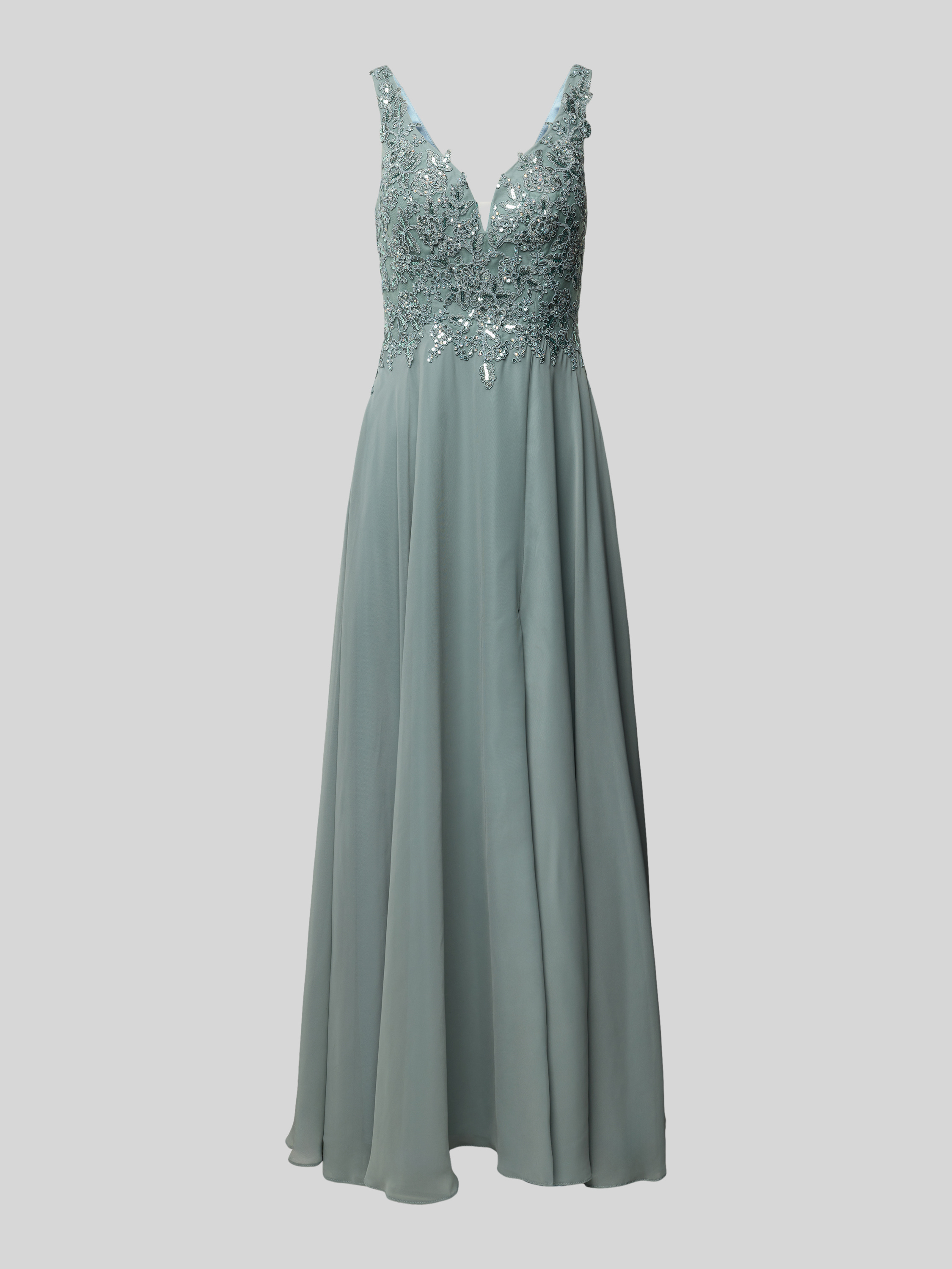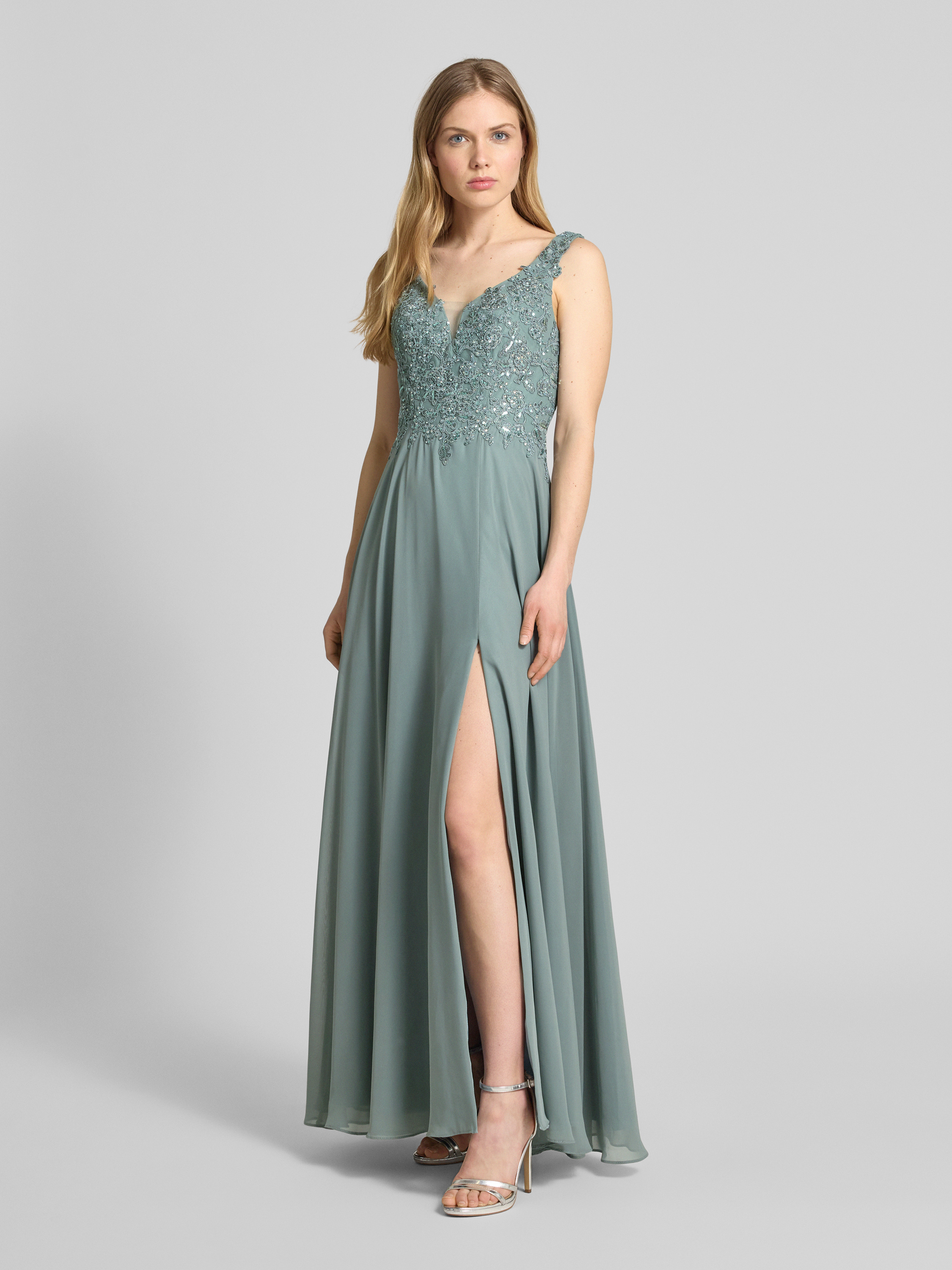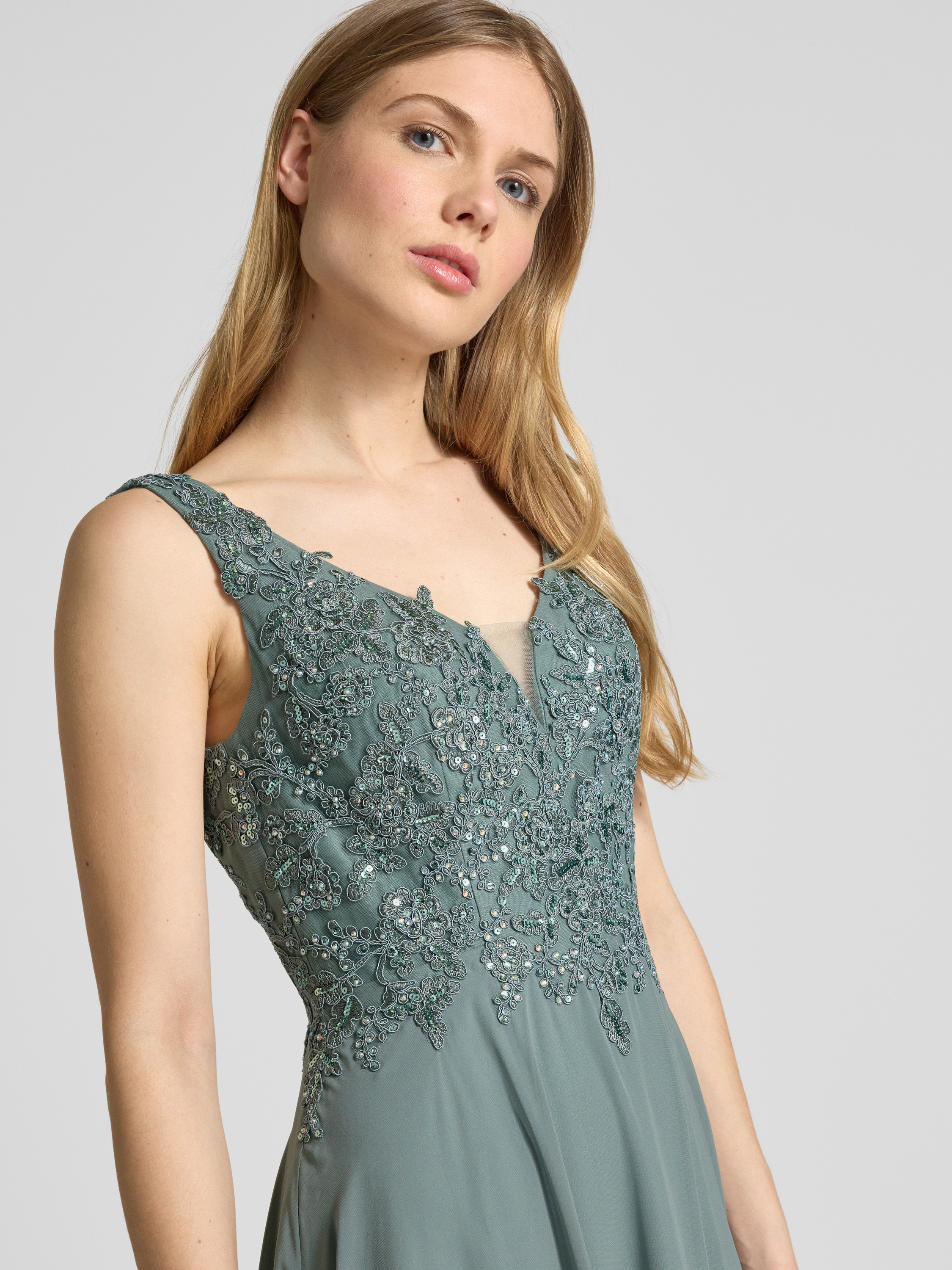 LaonaAbendkleid mit Spitzenbesatz in schilf