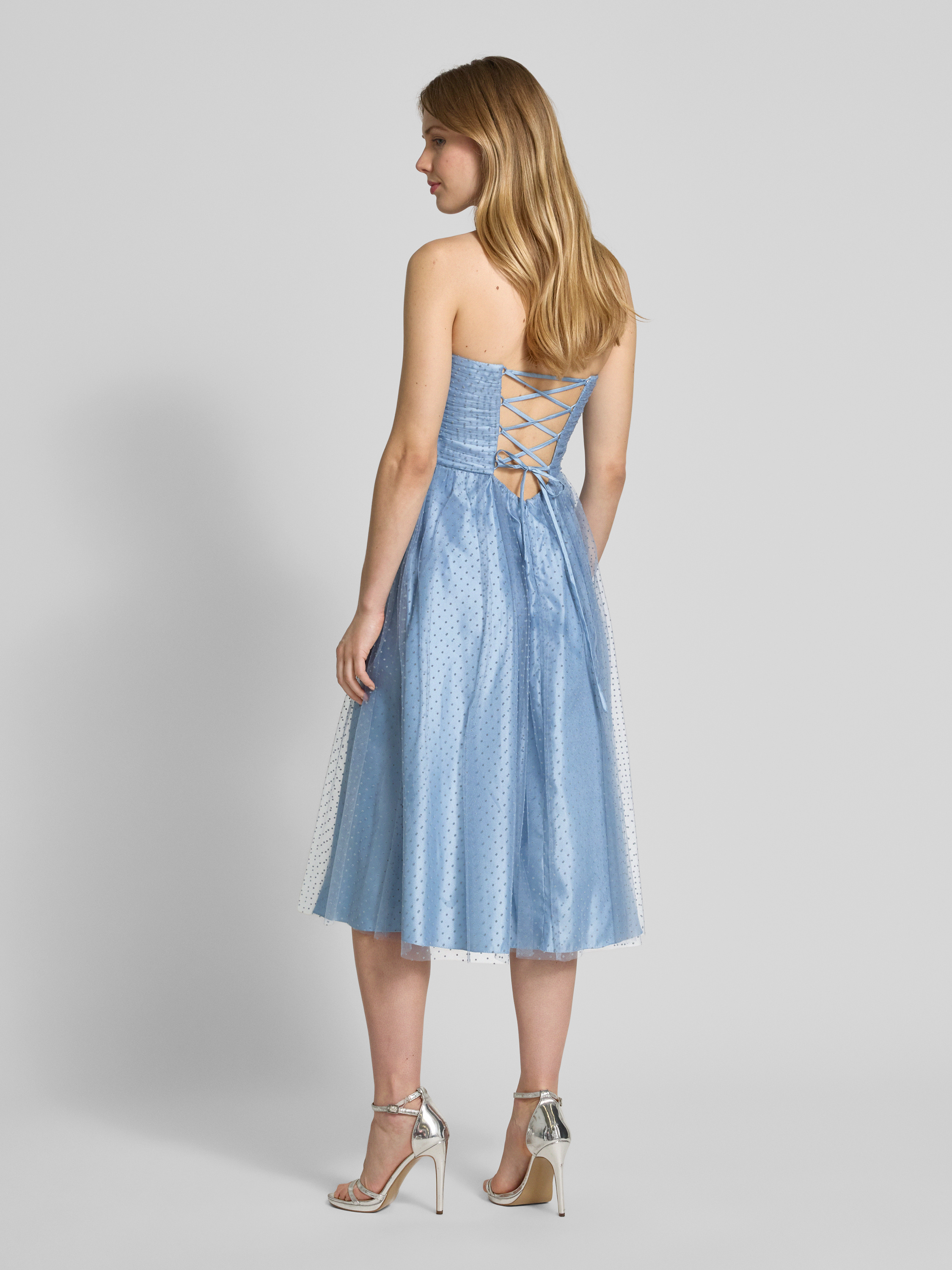 LaonaKnielanges Cocktailkleid mit rückseitigem Schnürverschluss in hellblau