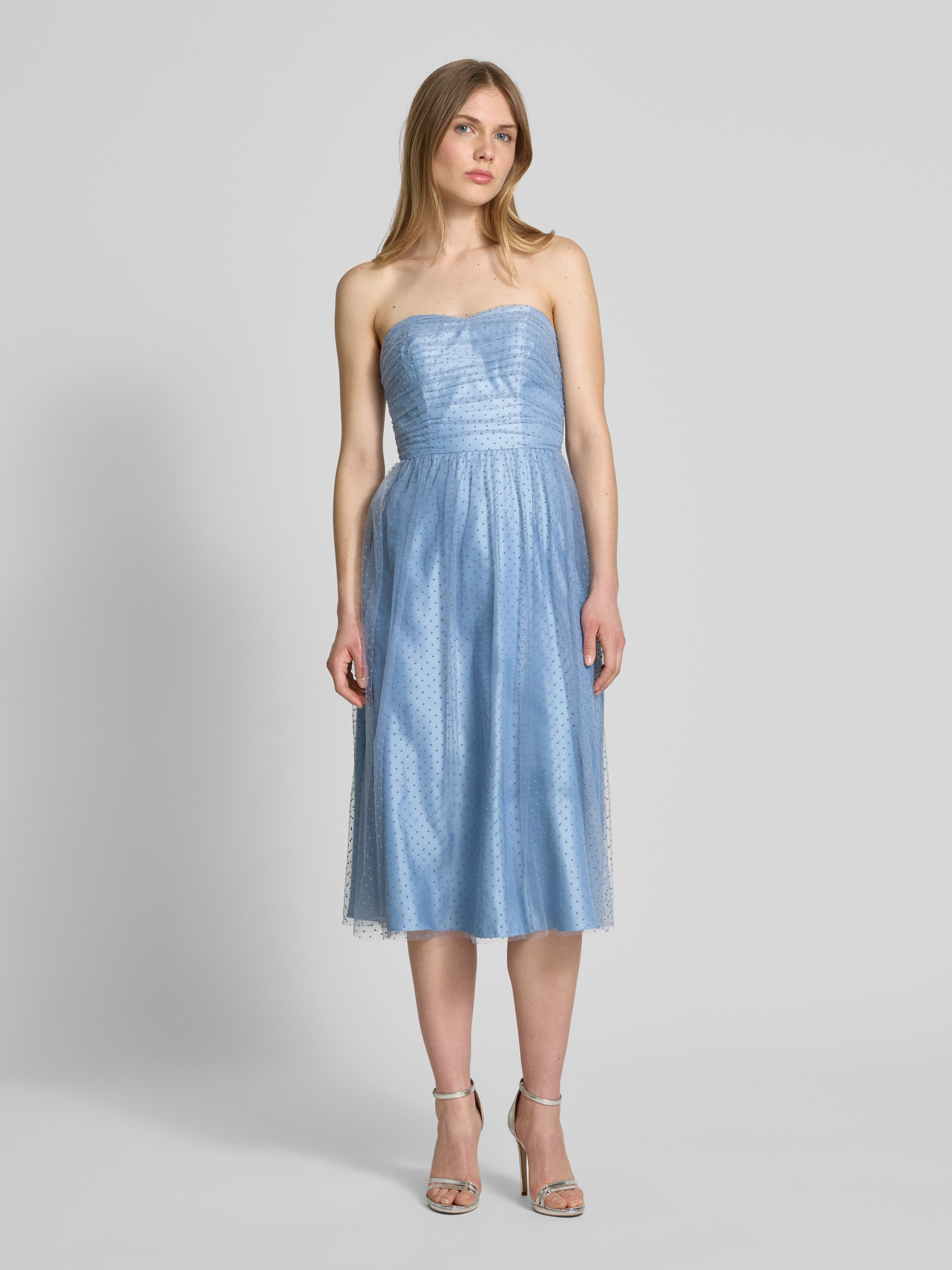 Das knielange Cocktailkleid von LAONA vereint Eleganz und Komfort durch seinen taillierten Schnitt und das fließende Chiffonmaterial. Der Herz-Ausschnitt und die Raffungen setzen stilvolle Akzente. Der rückseitige Schnürverschluss ermöglicht eine individuelle Anpassung und sorgt für eine schmeichelhafte Silhouette.