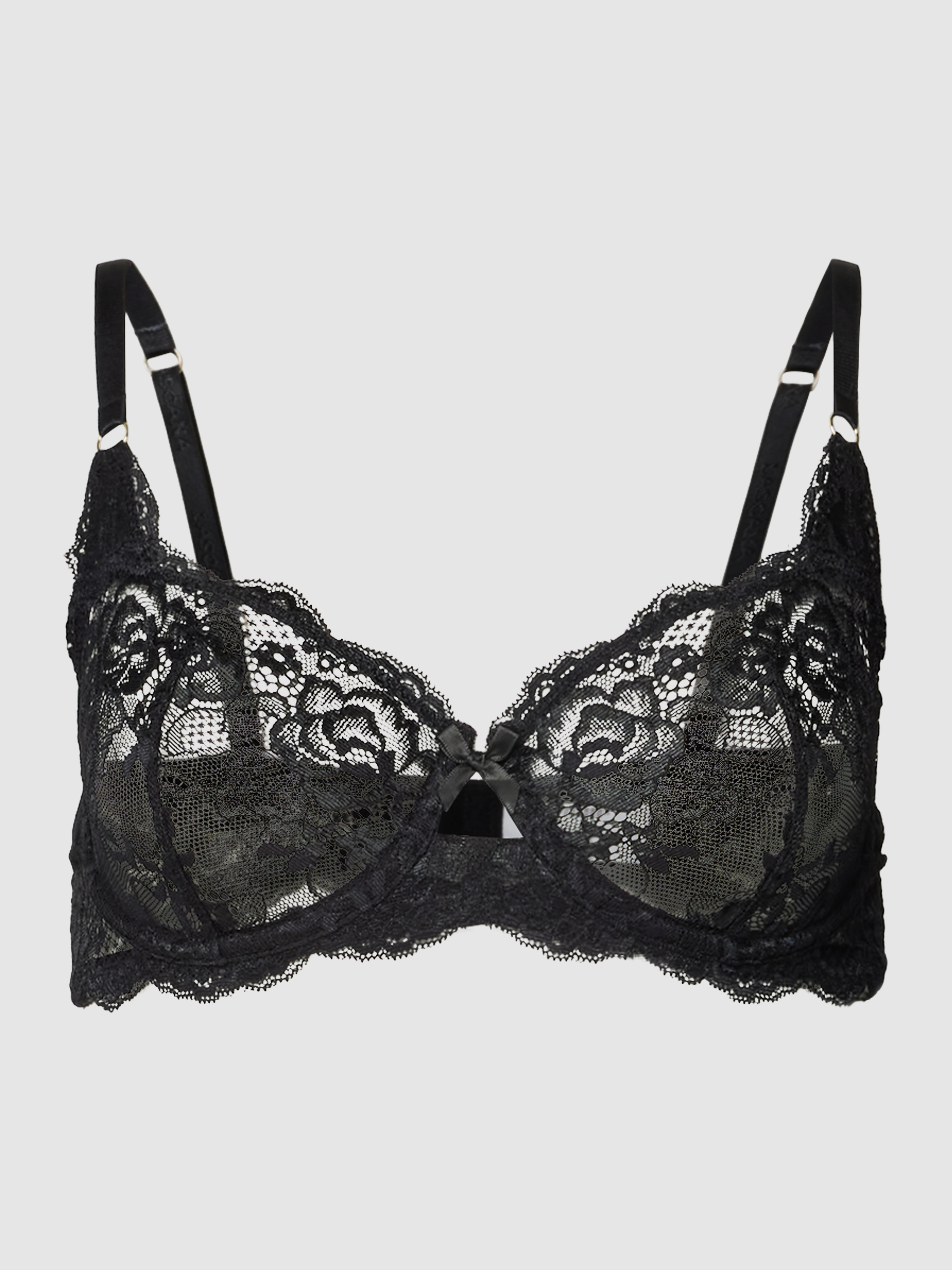 Der Bügel-BH von LASCANA, Modell 'Giulietta', vereint Komfort und Eleganz durch seinen eng anliegenden Schnitt und die zarte Häkelspitze. Der Material-Mix mit Stretch-Anteil sorgt für eine angenehme Passform, während die verstellbaren Träger Flexibilität bieten. Ein hübsches Detail ist die Zierschleife.