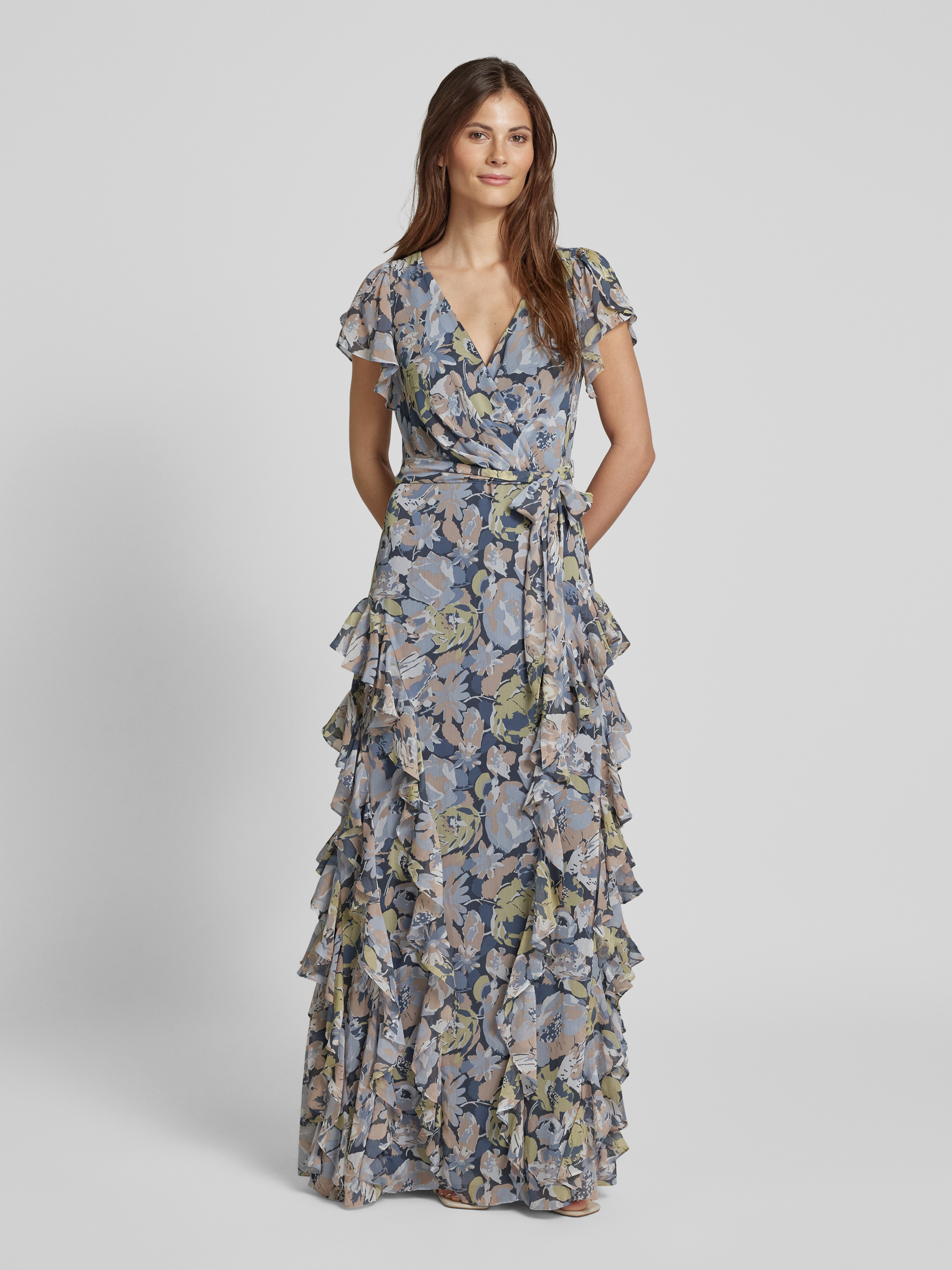 Lauren Ralph LaurenAbendkleid mit Bindegürtel Modell 'KIMBINELL' in bleu