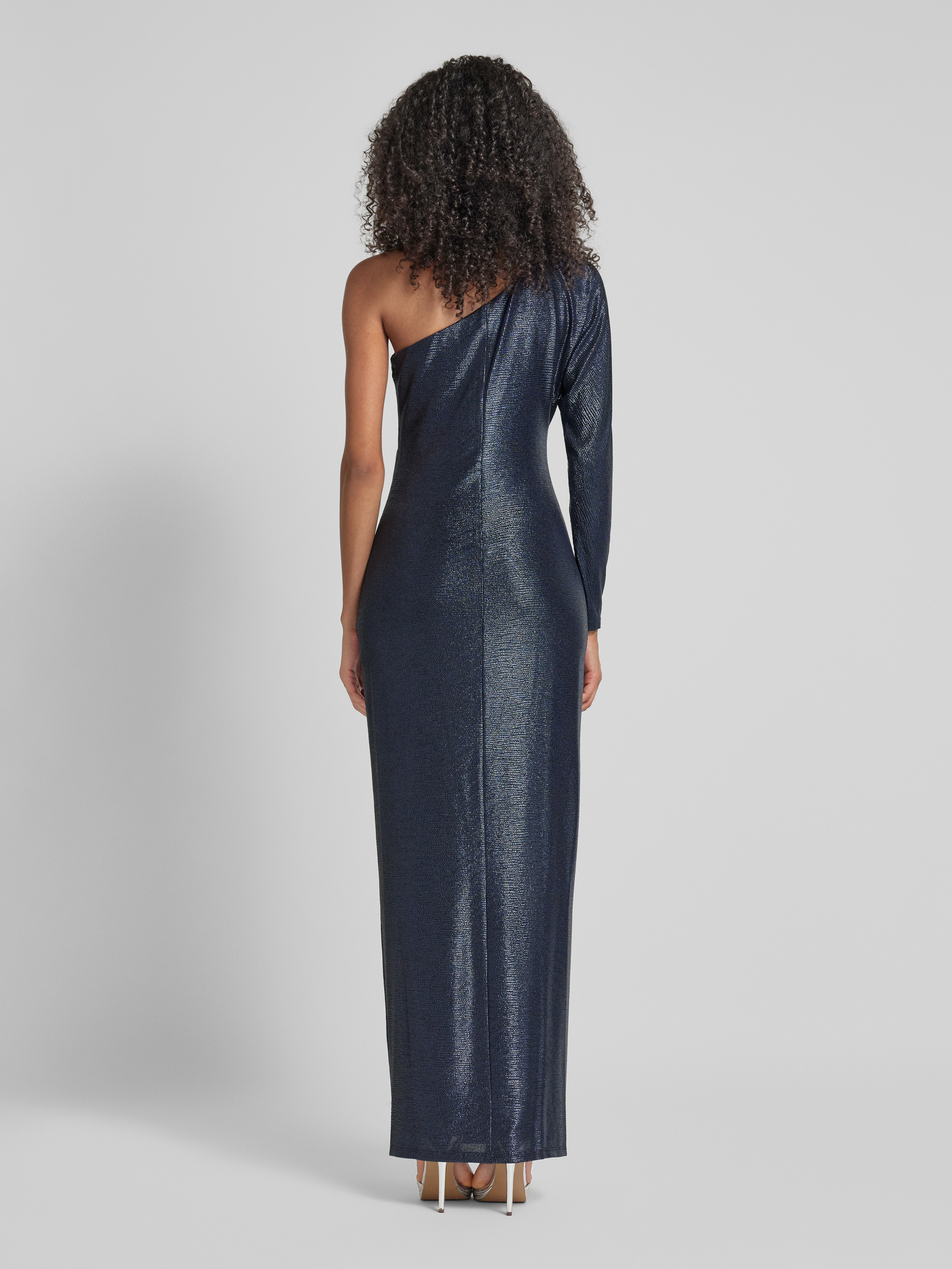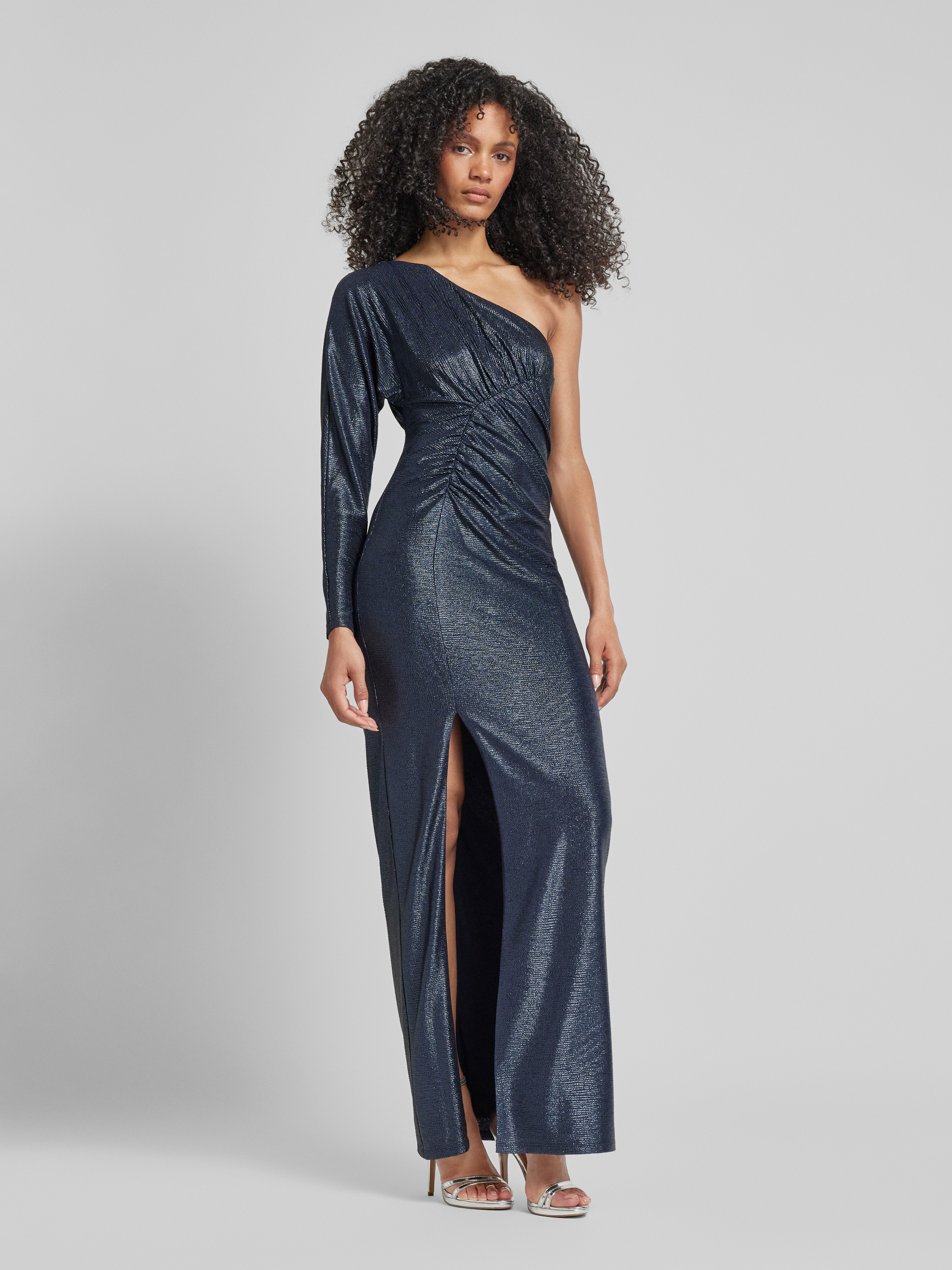 Lauren Ralph LaurenOne-Shoulder-Abendkleid mit Effektgarn Modell 'SAKINA' in dunkelblau