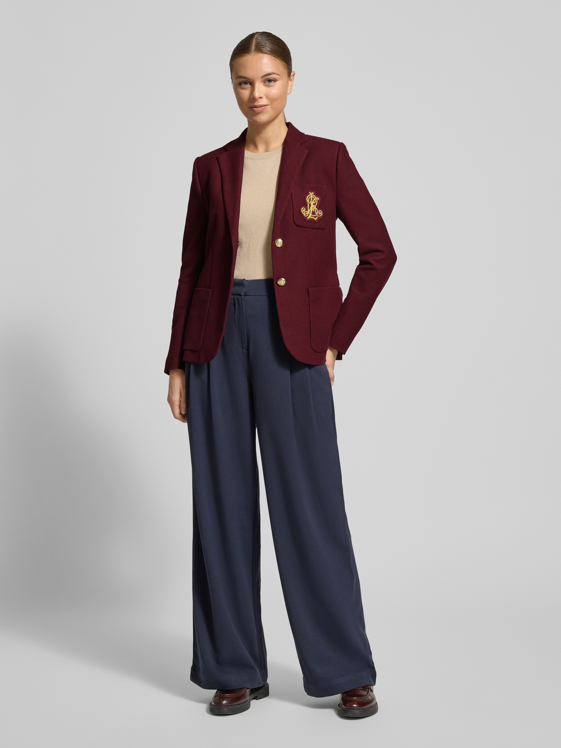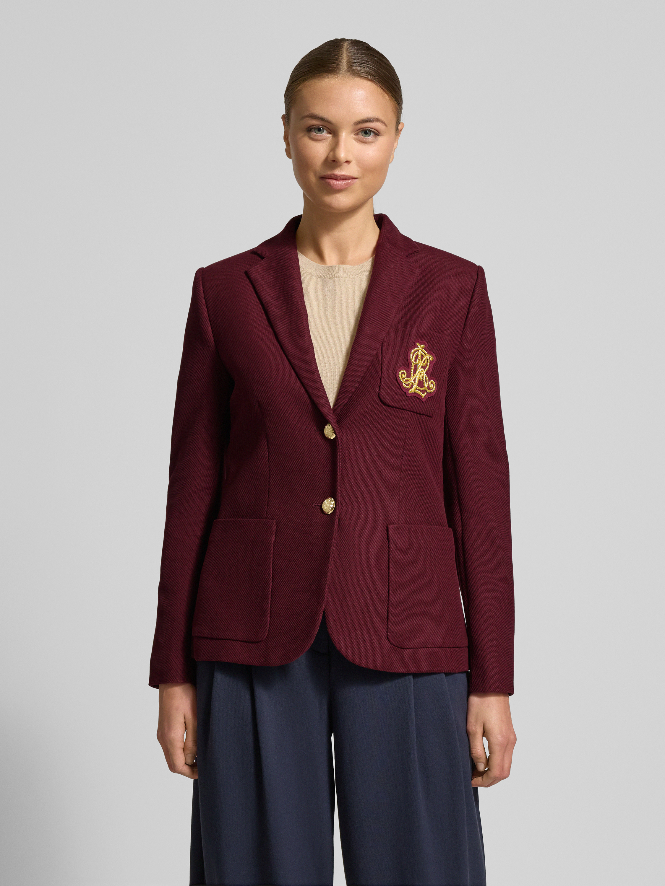 Der Blazer mit Reverskragen von Lauren Ralph Lauren sitzt dank körpernaher Passform angenehm und betont die Silhouette dezent. Durch den leichten Baumwoll-Elasthan-Mix fühlt sich das Material geschmeidig an und sorgt für Bewegungsfreiheit. Dezente Details wie aufgesetzte Taschen ergänzen das klassische Design.
