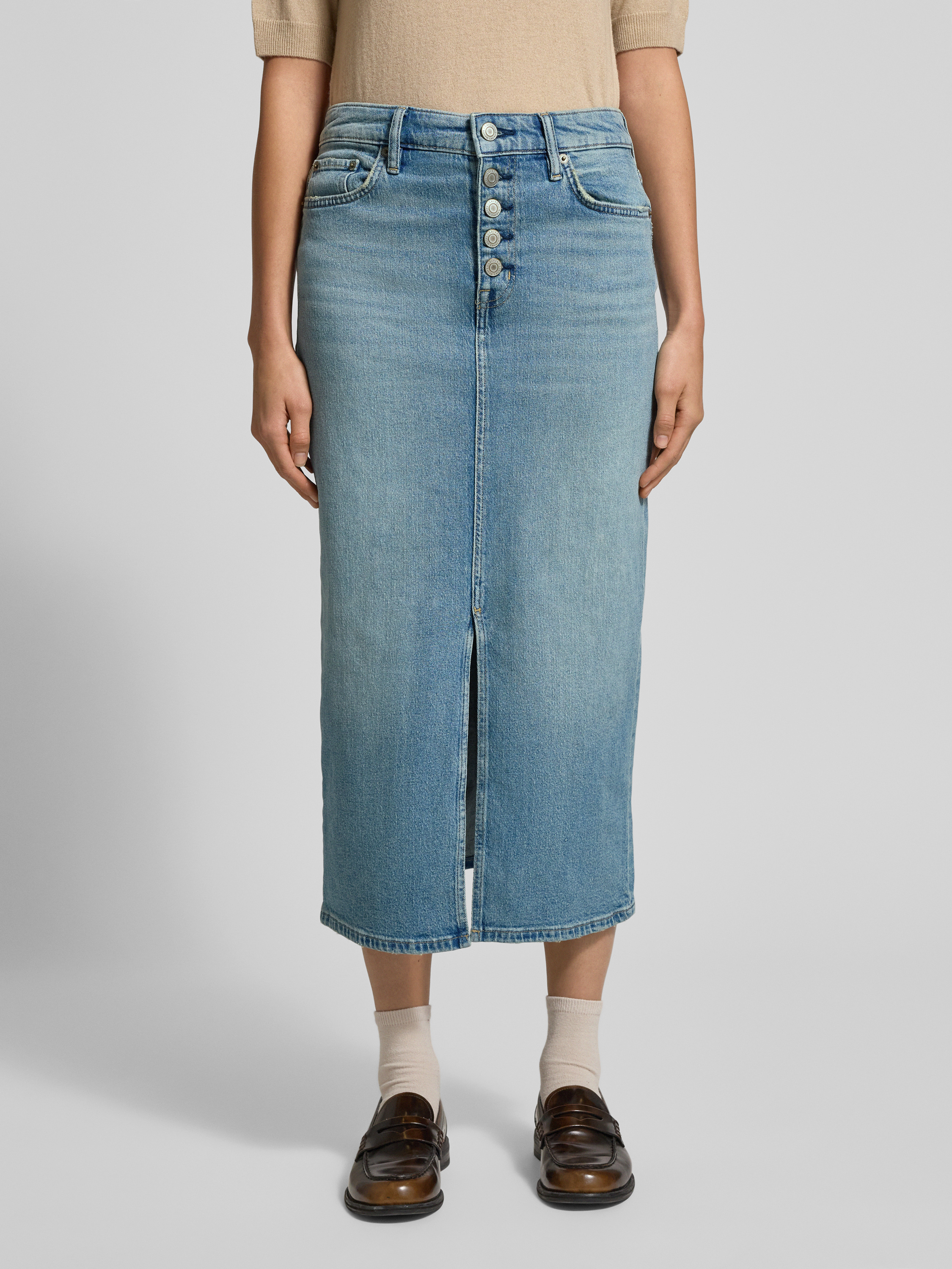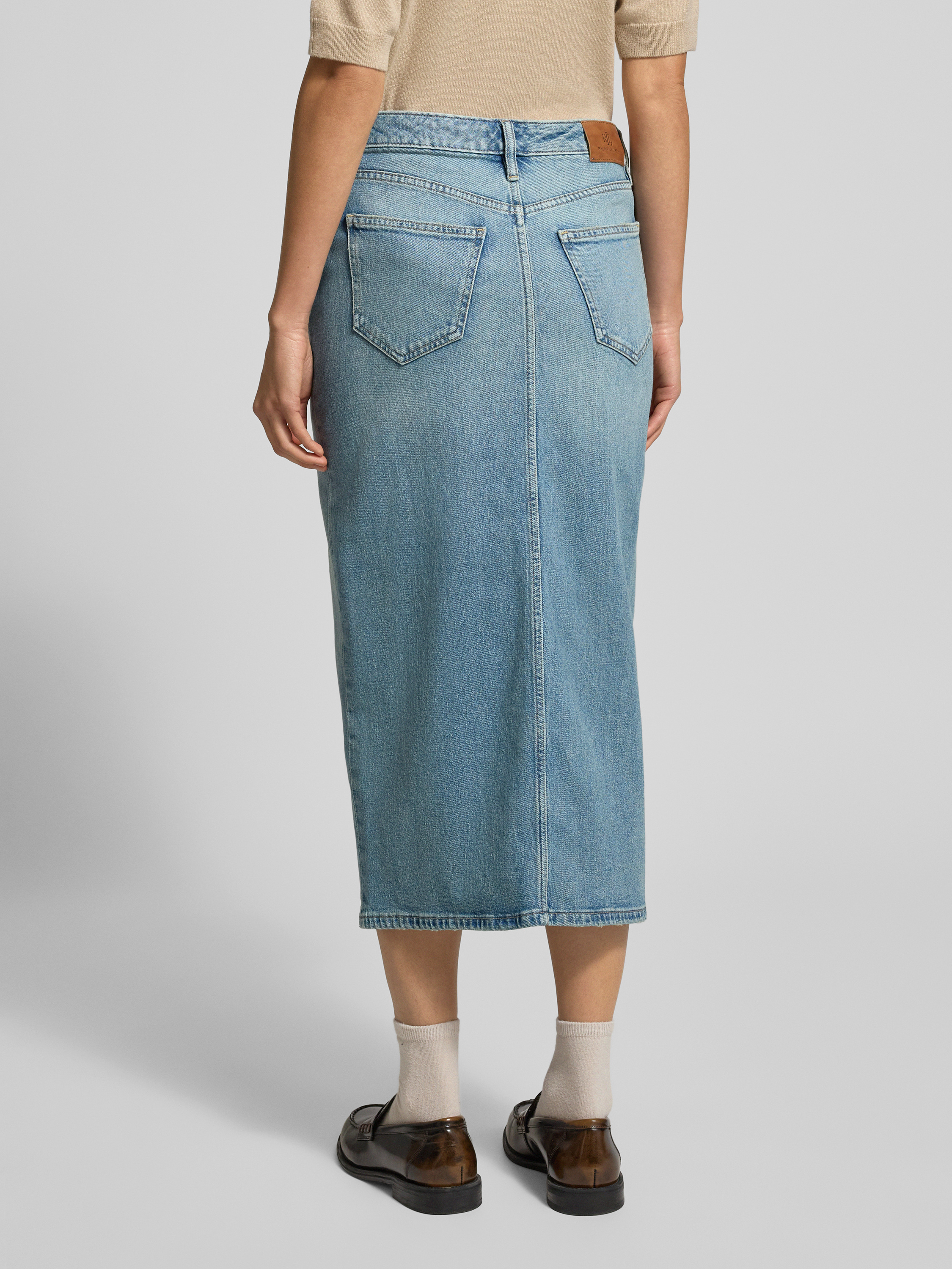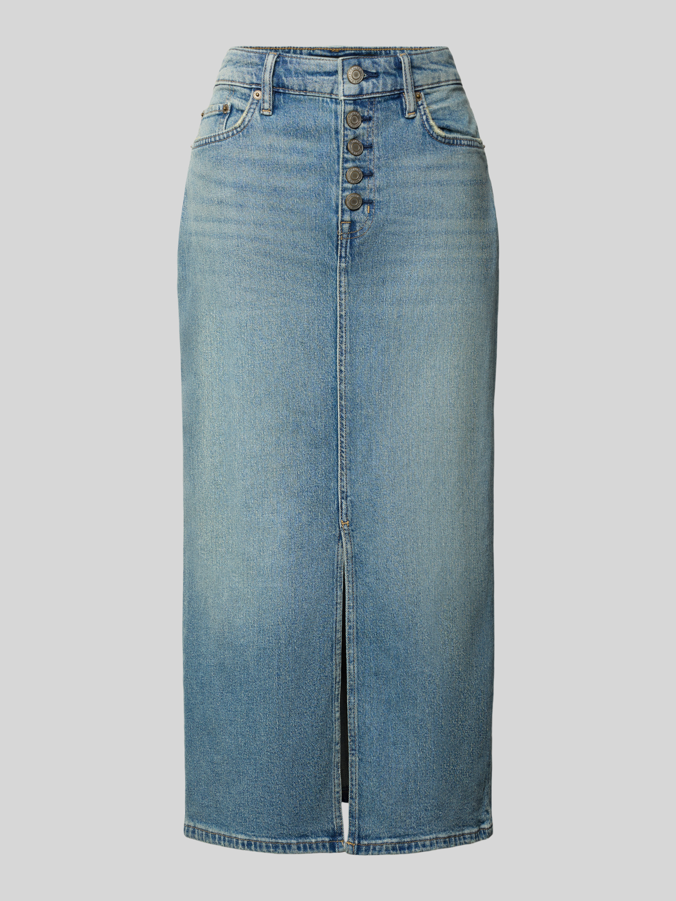 Der Damen Jeansrock von Lauren Ralph Lauren zeigt sich in einer Midilänge und fällt durch seinen klassischen Pencil-Schnitt angenehm figurbetont aus. Dank des Baumwoll-Elasthan-Mix fühlt man sich in der Bewegung flexibel und komfortabel. Das 5-Pocket-Design unterstreicht den zeitlosen Jeans-Look, den man vielseitig kombinieren kann.
